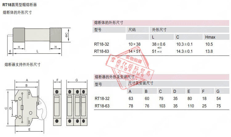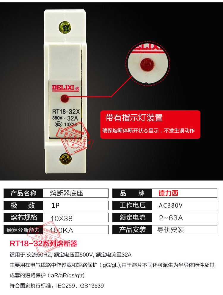 Delixi fuse base fuse holder 1P with light RT18-32X_holder_1 piece_with light without core
