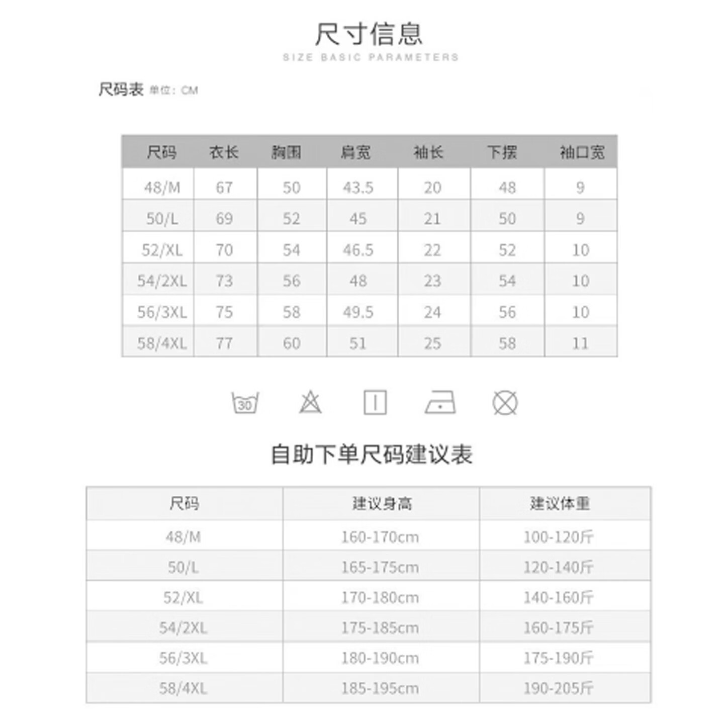 China (cm) 160-165/84-86 165-170 / 88-90 167-172 / 92-96 168-173 / 98-102 170-176 / 106-110