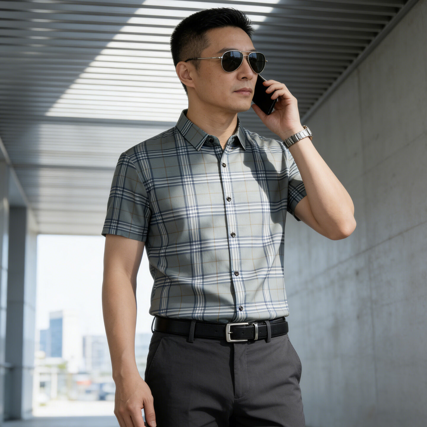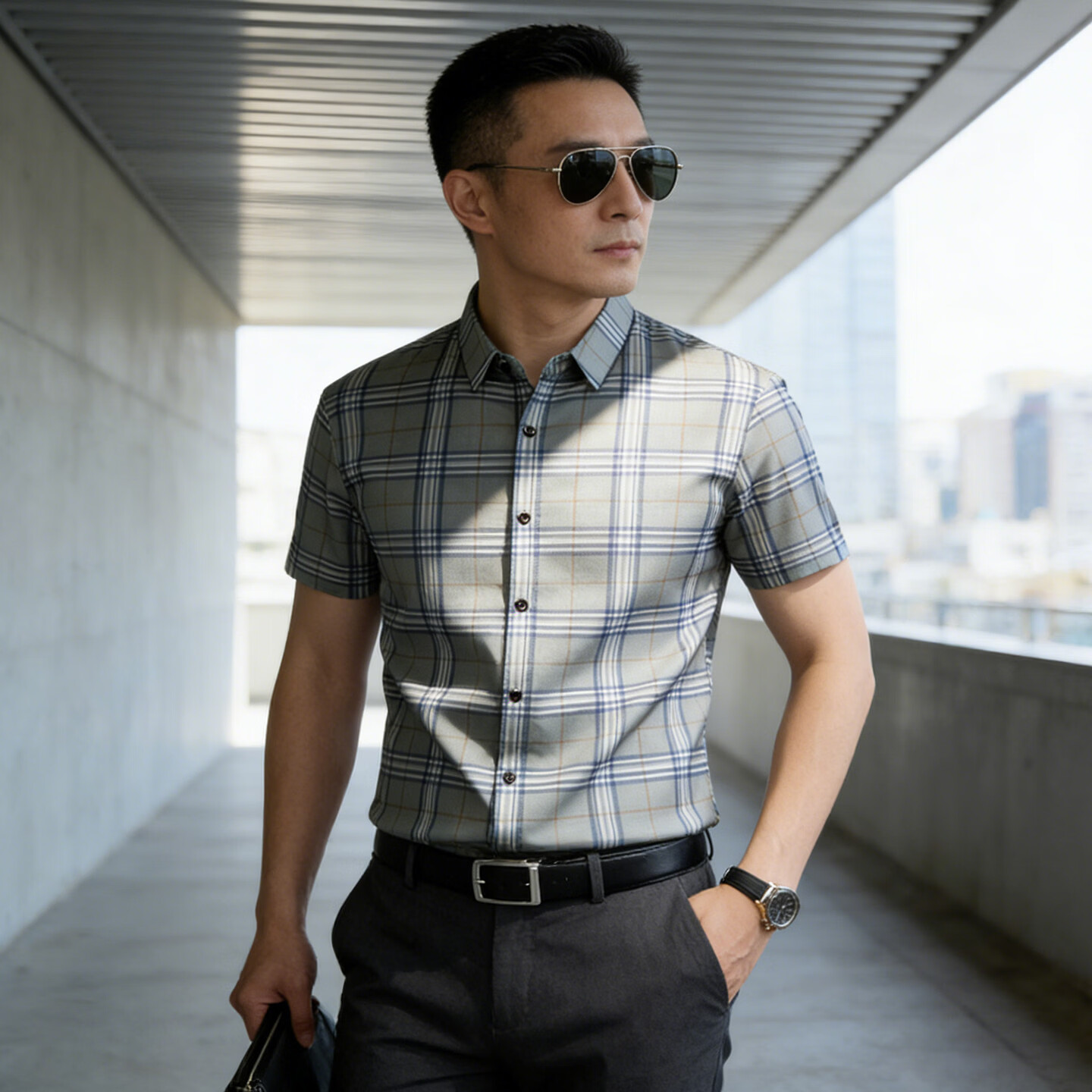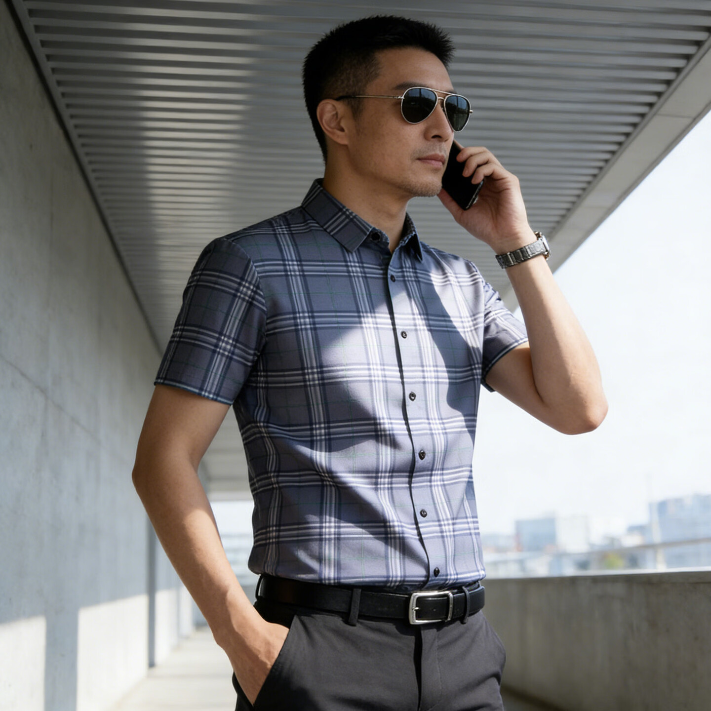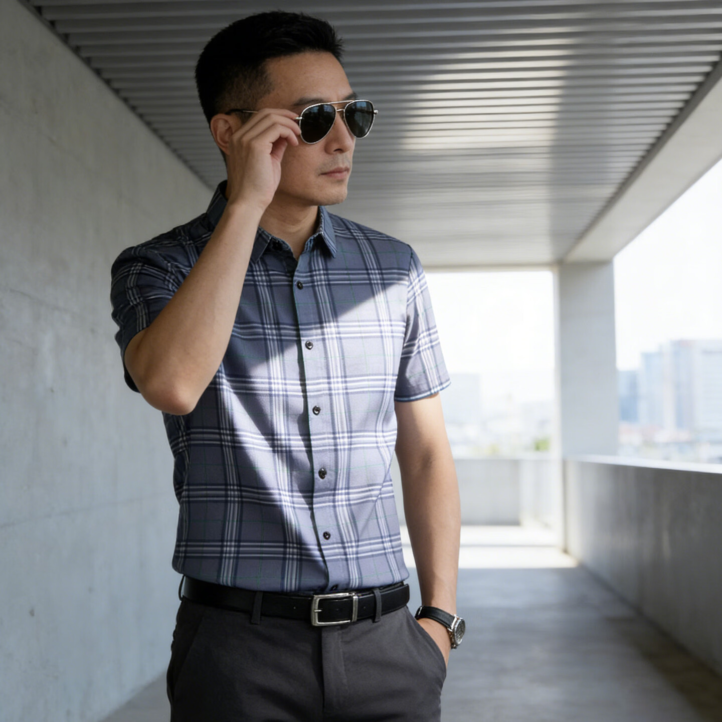 Playboy 2026 Summer Men's Short-Sleeved Shirt Plaid Business Casual Slim-fitting No-Iron Shirt Half-Sleeve Top Blue M 100Jin Jin is equal to 0.5kg -125Jin Jin is equal to 0.5kg