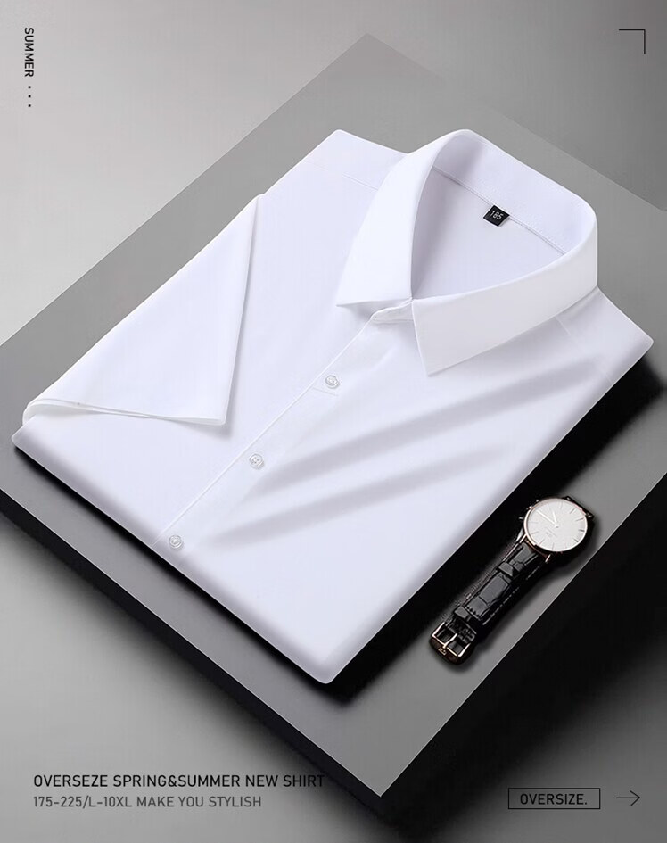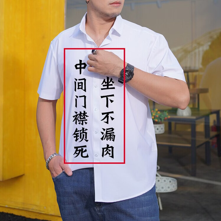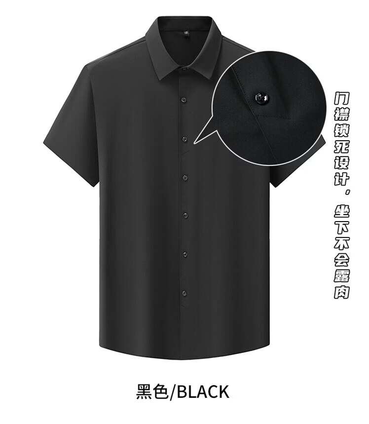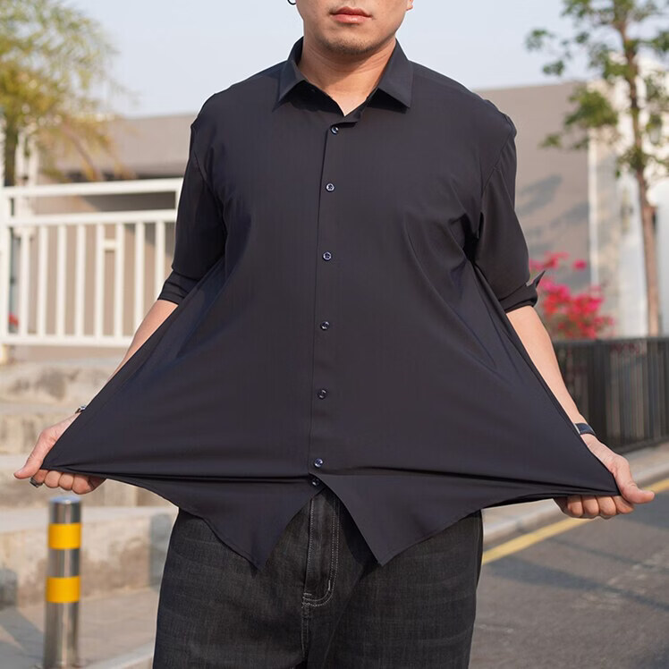 ROMON extra large size ice silk short-sleeved shirt men's summer fat men plus size European version no-iron professional white shirt thin new product black short sleeves regular L