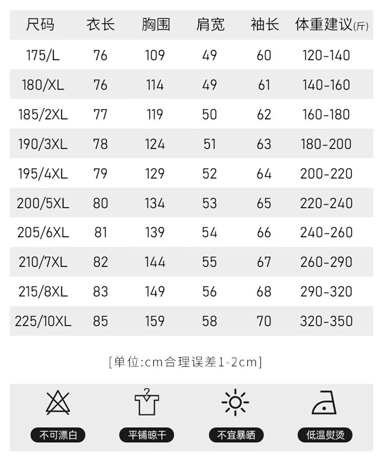 China (cm) 165 / 88-90 170 / 96-98 175 / 108-110 180 / 118-122 185 / 126-130