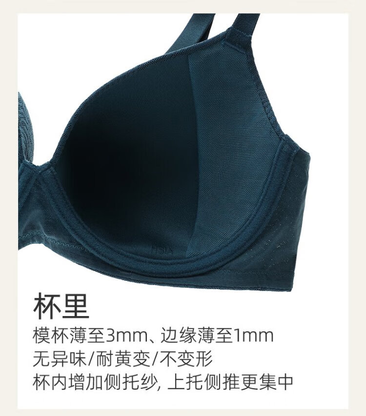 Ya Xiaoqingti logo presbyopia commemorative style round full cup seamless bra big breasts showing small underwear women's thin style clear water green 75B