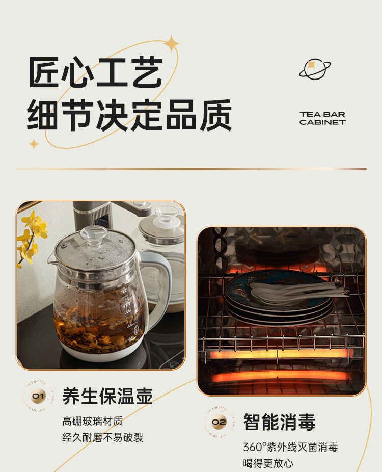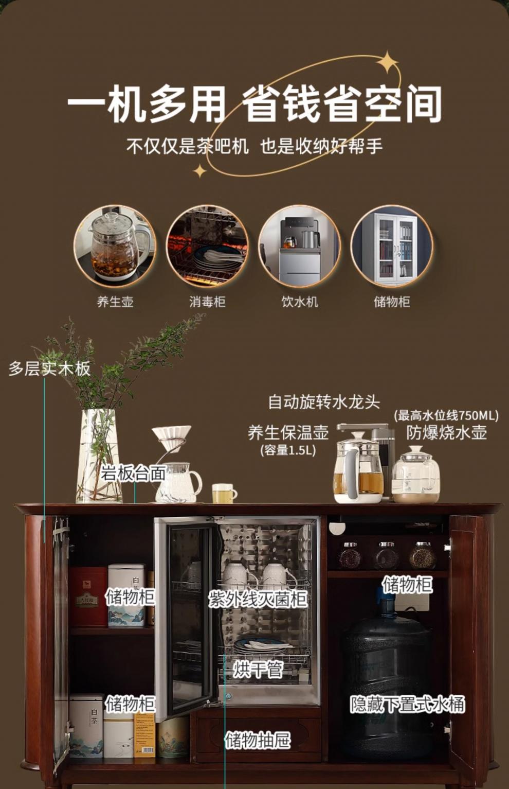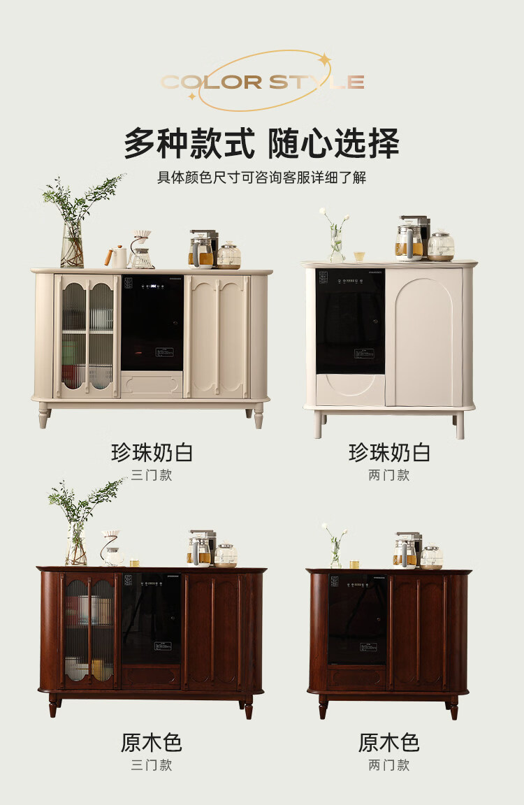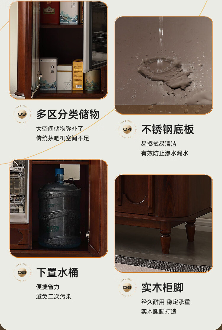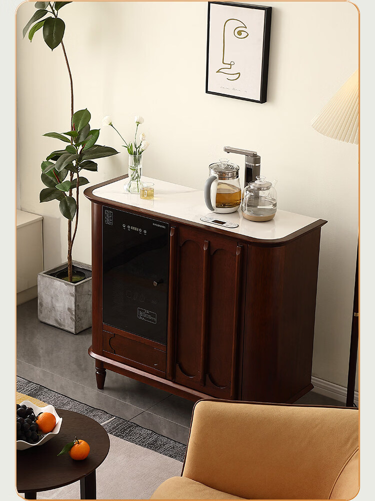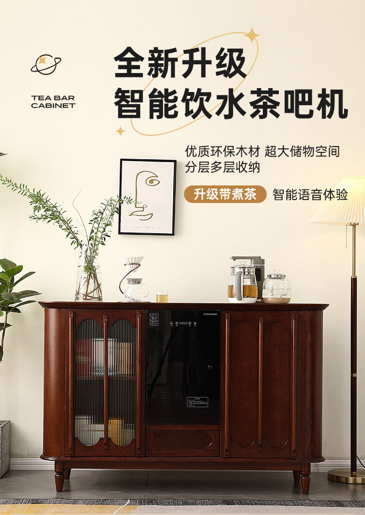 He Jiagong Máquina inteligente de barra de té de madera maciza Gabinete de almacenamiento Aparador integrado Hogar de estilo chino con gabinete de té completamente automático Refrigerador inteligente de tres puertas Máquina de barra de té (blanco leche perla) Tipo de calefacción Hielo caliente