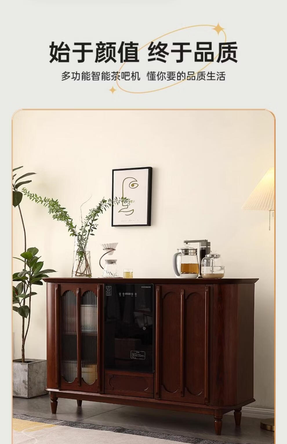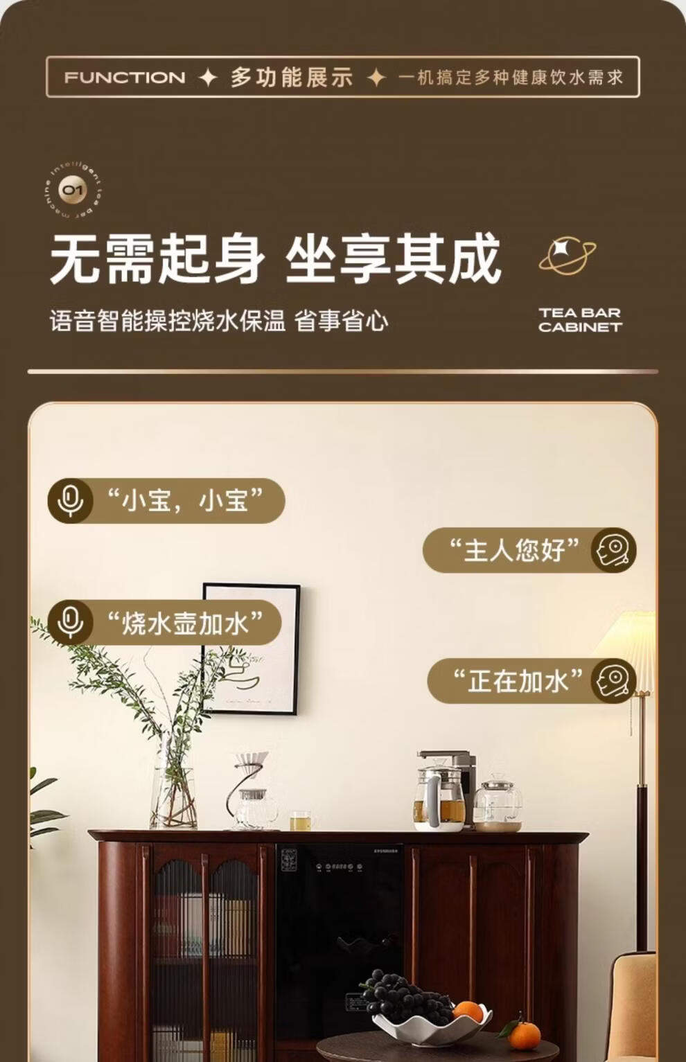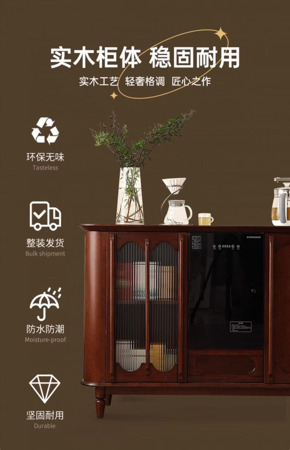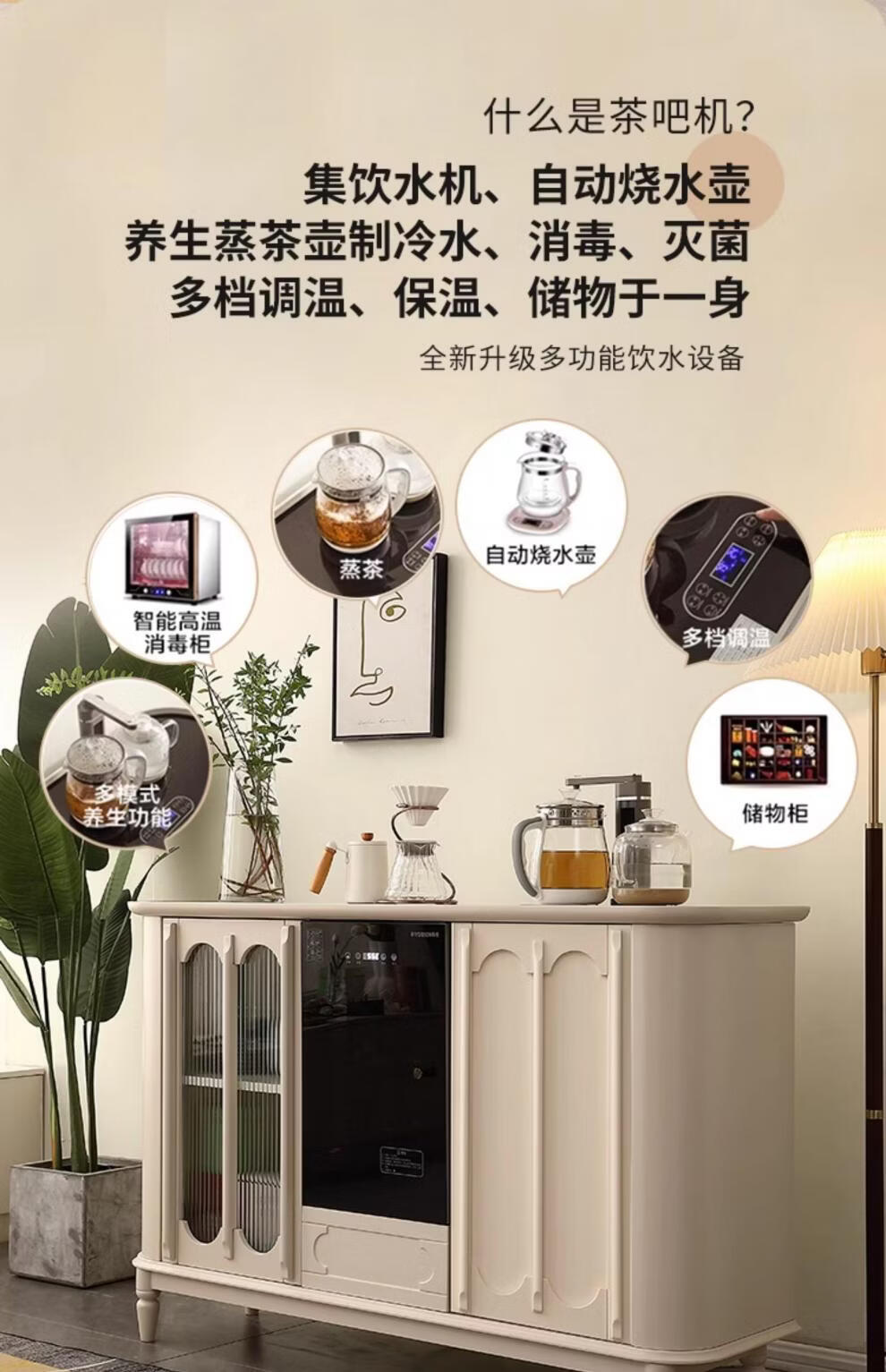 He Jiagong Máquina inteligente de barra de té de madera maciza Gabinete de almacenamiento Aparador integrado Hogar de estilo chino con gabinete de té completamente automático Refrigerador inteligente de tres puertas Máquina de barra de té (blanco leche perla) Tipo de calefacción Hielo caliente