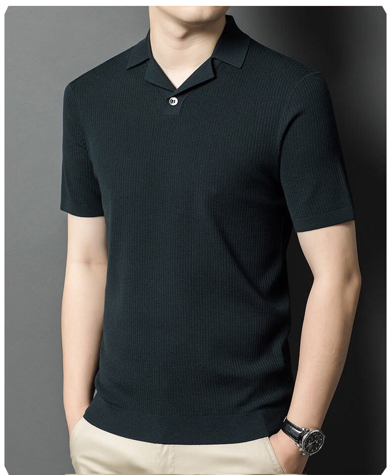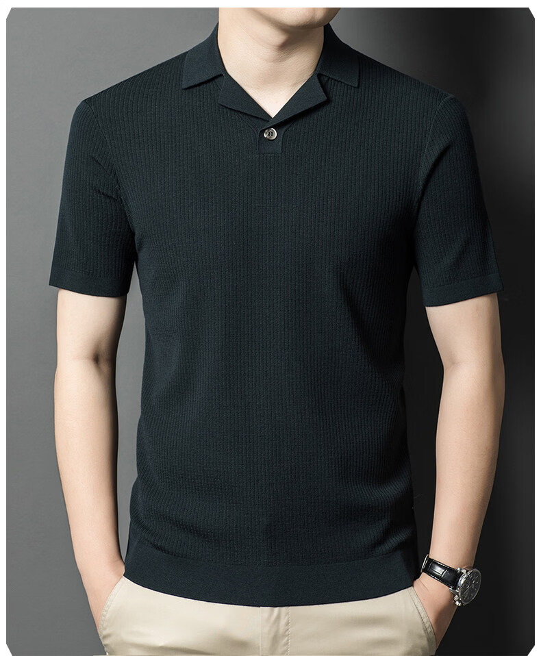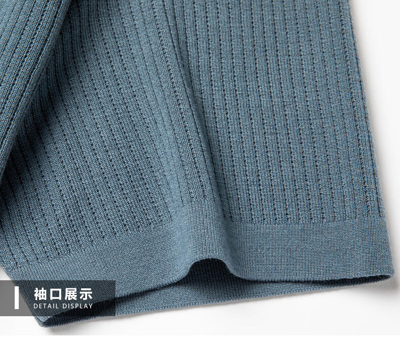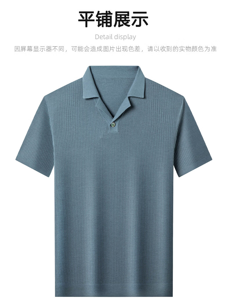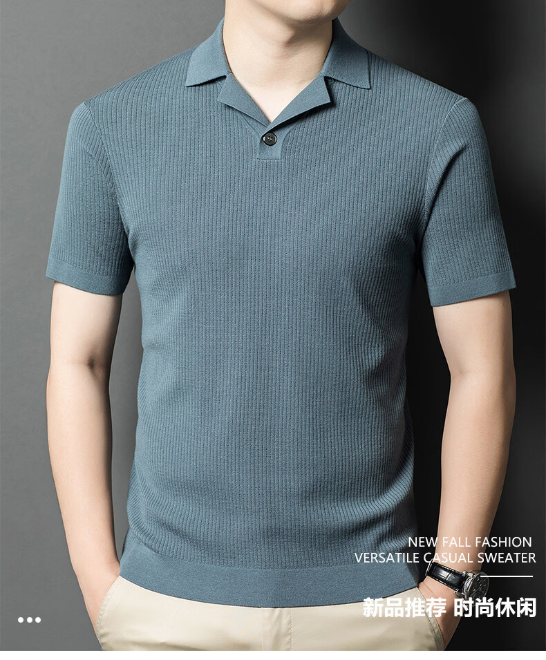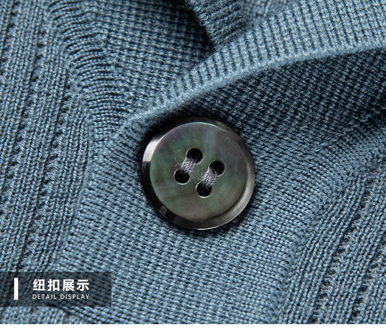 丨Lilang丨 Machine washable 100 count medium thick high density worsted short-sleeved cardigan men's lapel half-sleeved sweater medium gray blue M 165