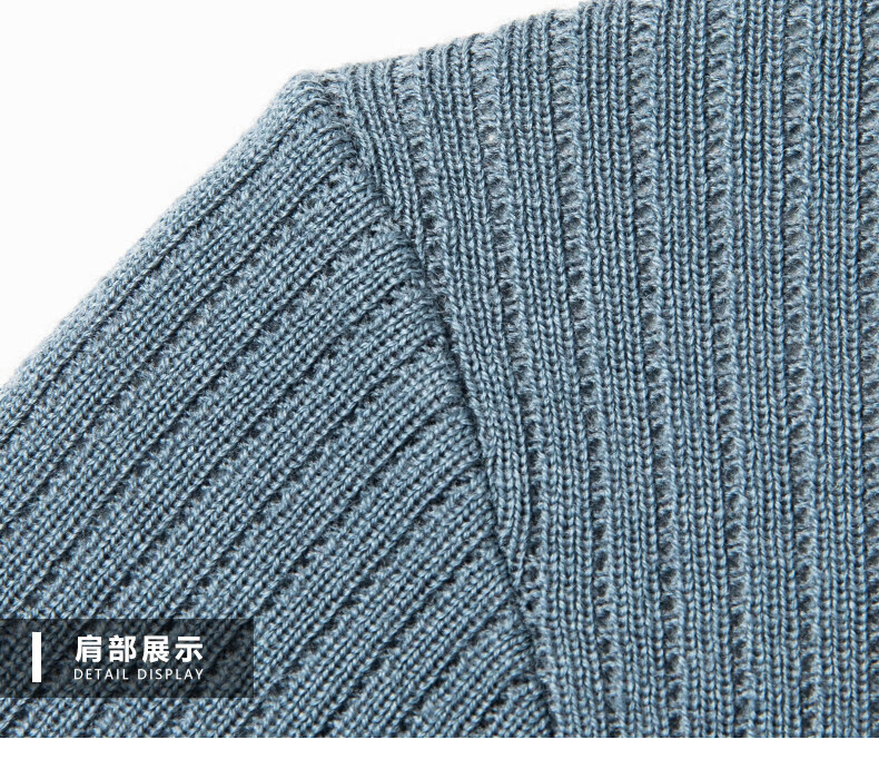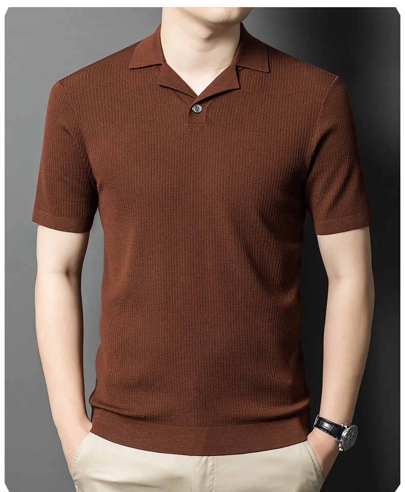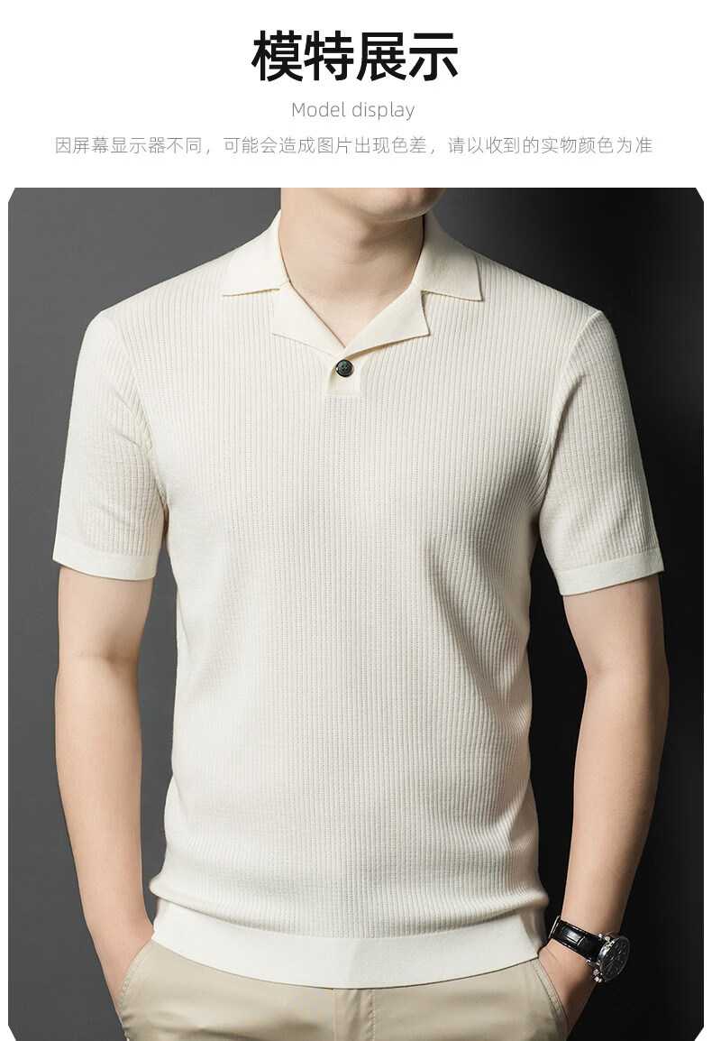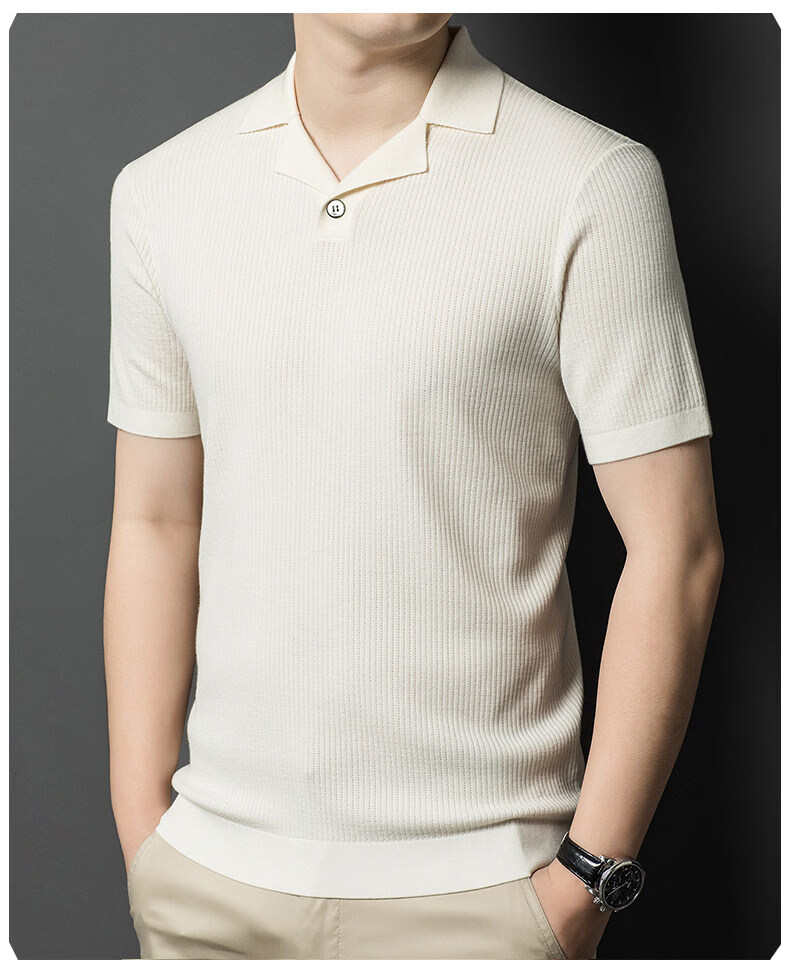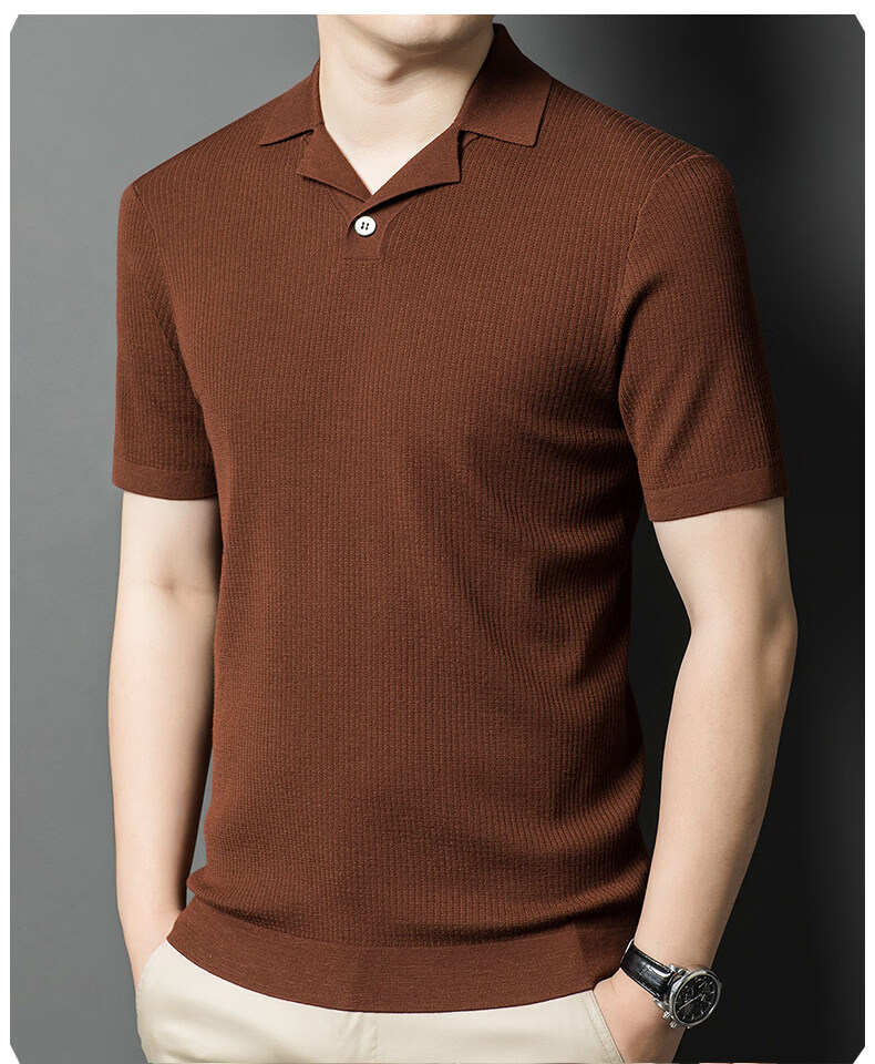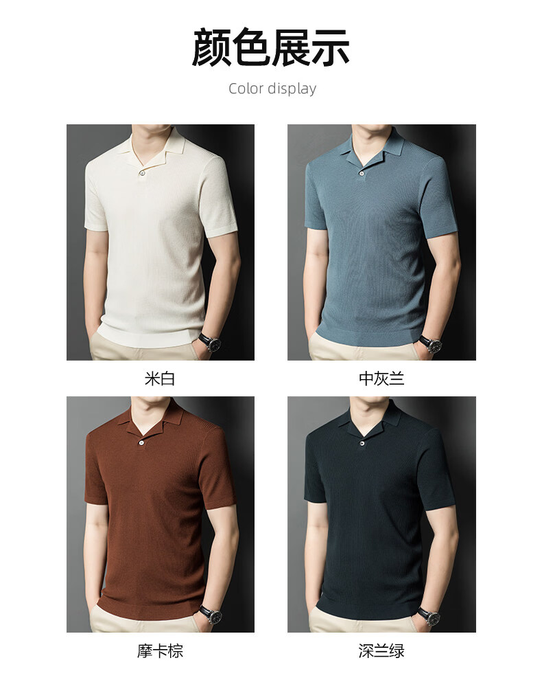 丨Lilang丨 Machine washable 100 count medium thick high density worsted short-sleeved cardigan men's lapel half-sleeved sweater medium gray blue M 165