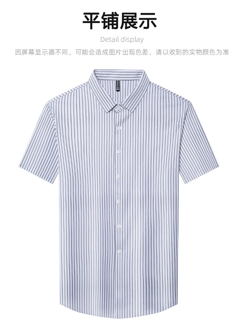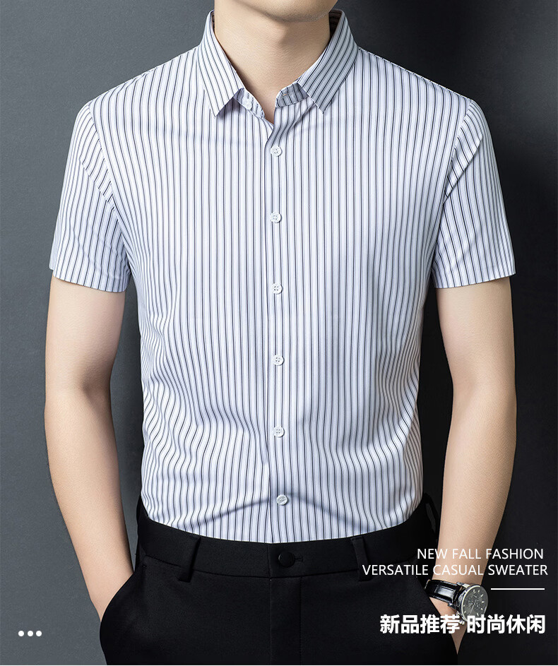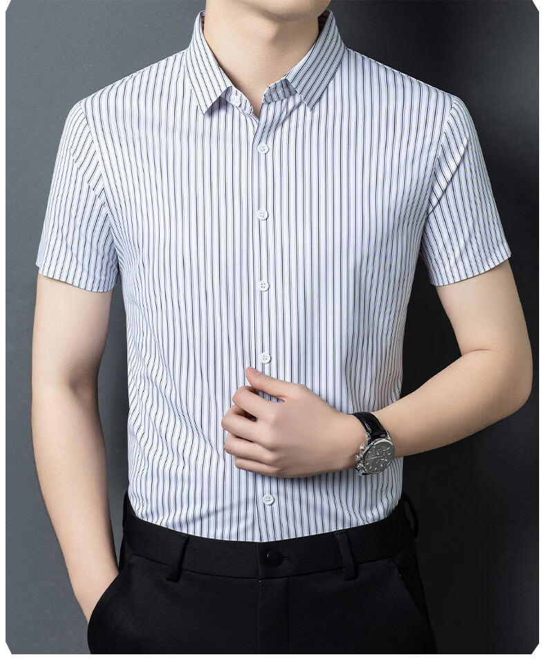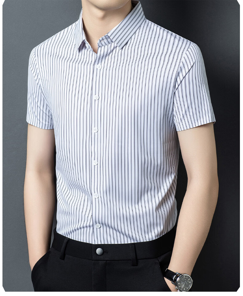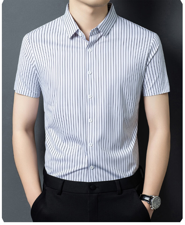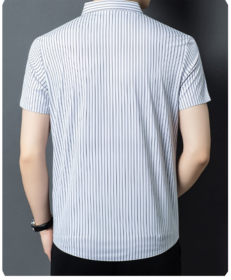 JOEONE 2026 summer new style middle-aged men's short-sleeved shirt casual lapel business fashion striped seamless ice silk shirt white stripe M 48