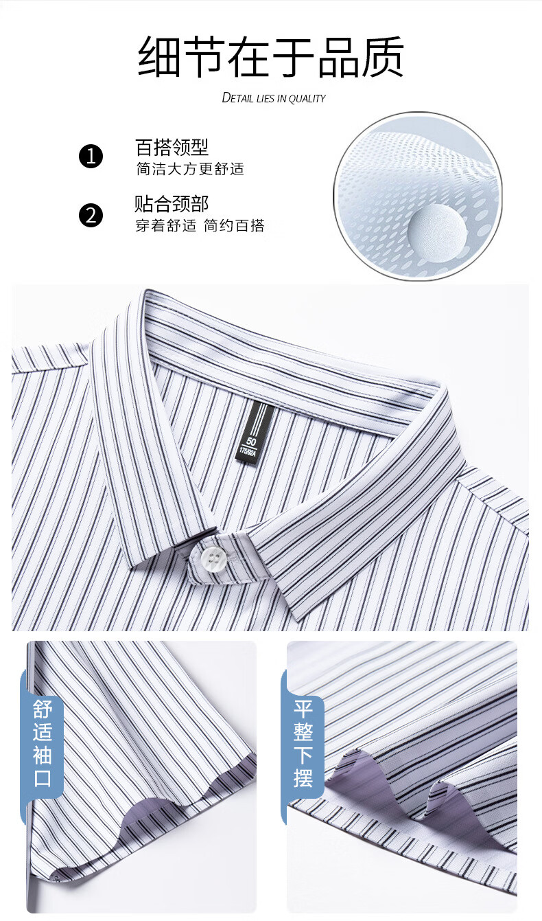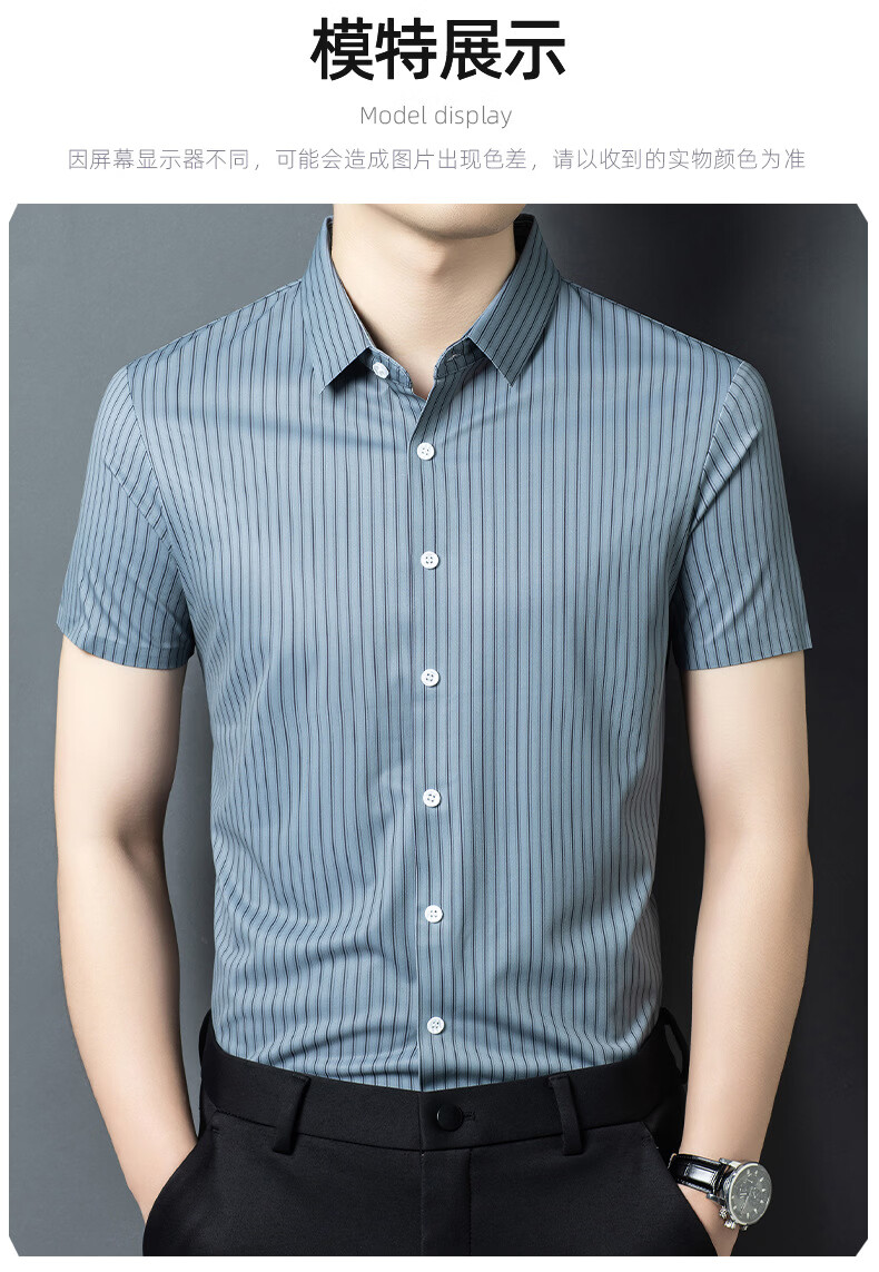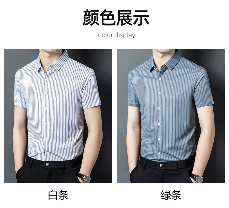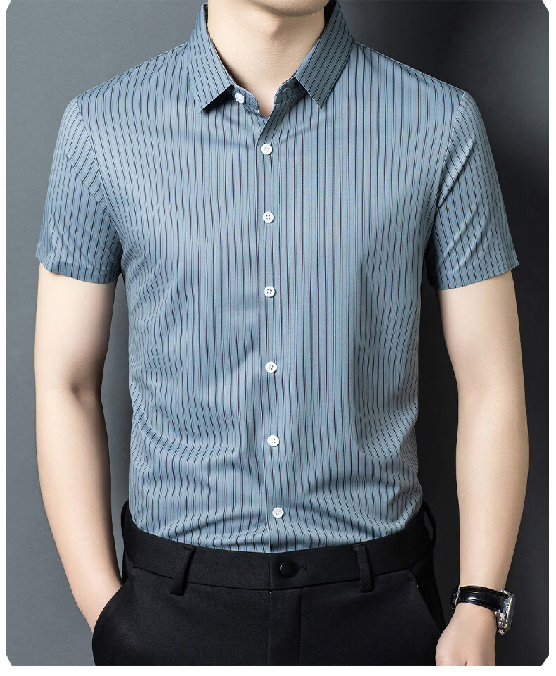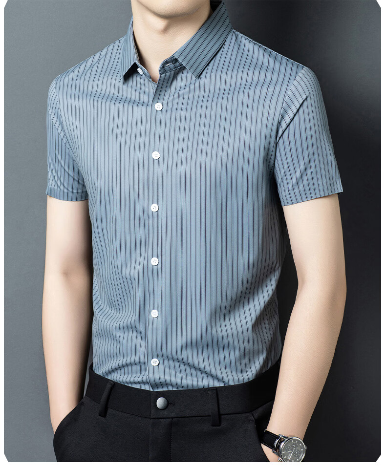 JOEONE 2026 summer new style middle-aged men's short-sleeved shirt casual lapel business fashion striped seamless ice silk shirt white stripe M 48