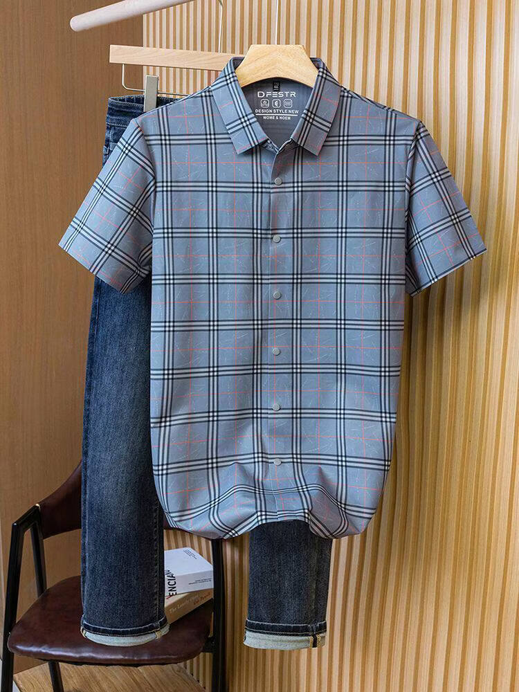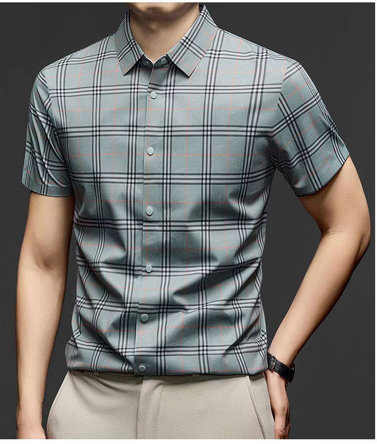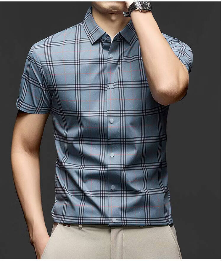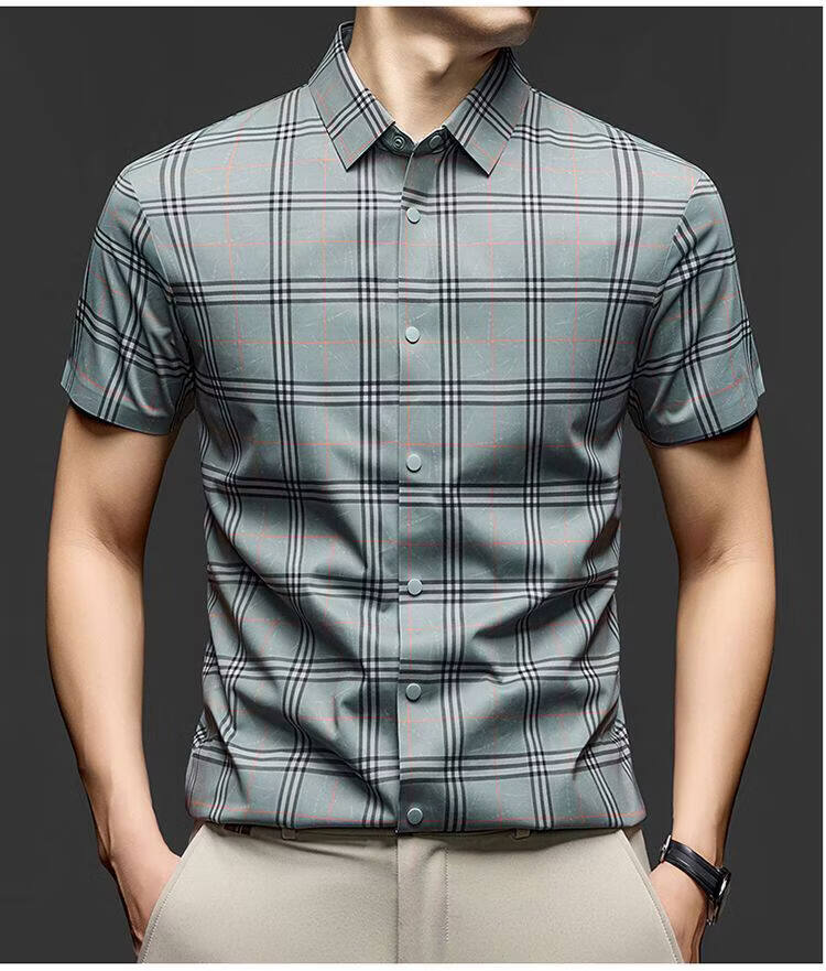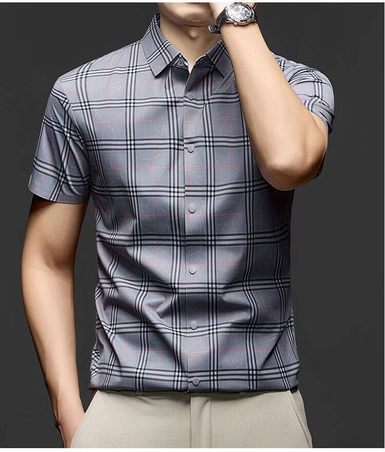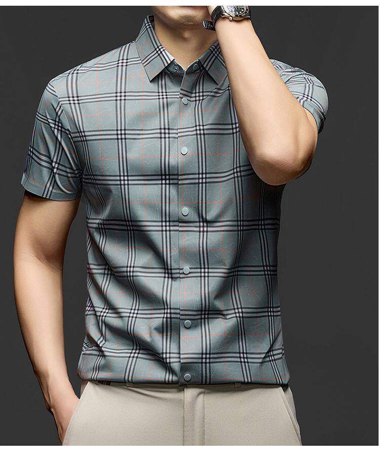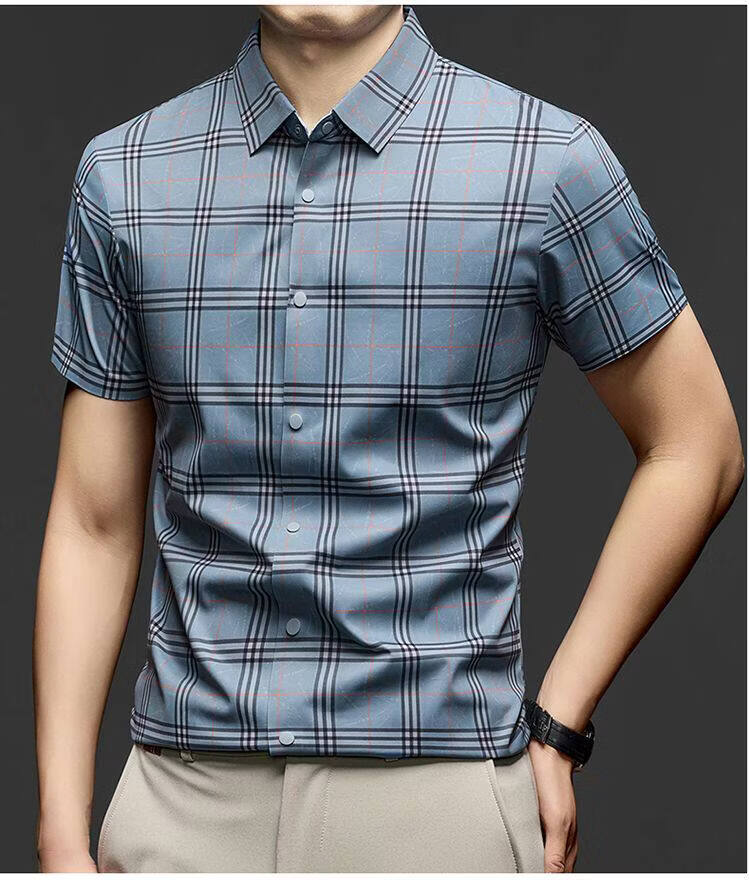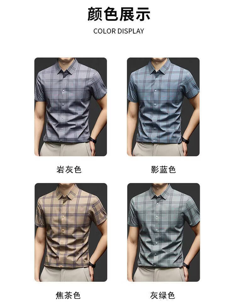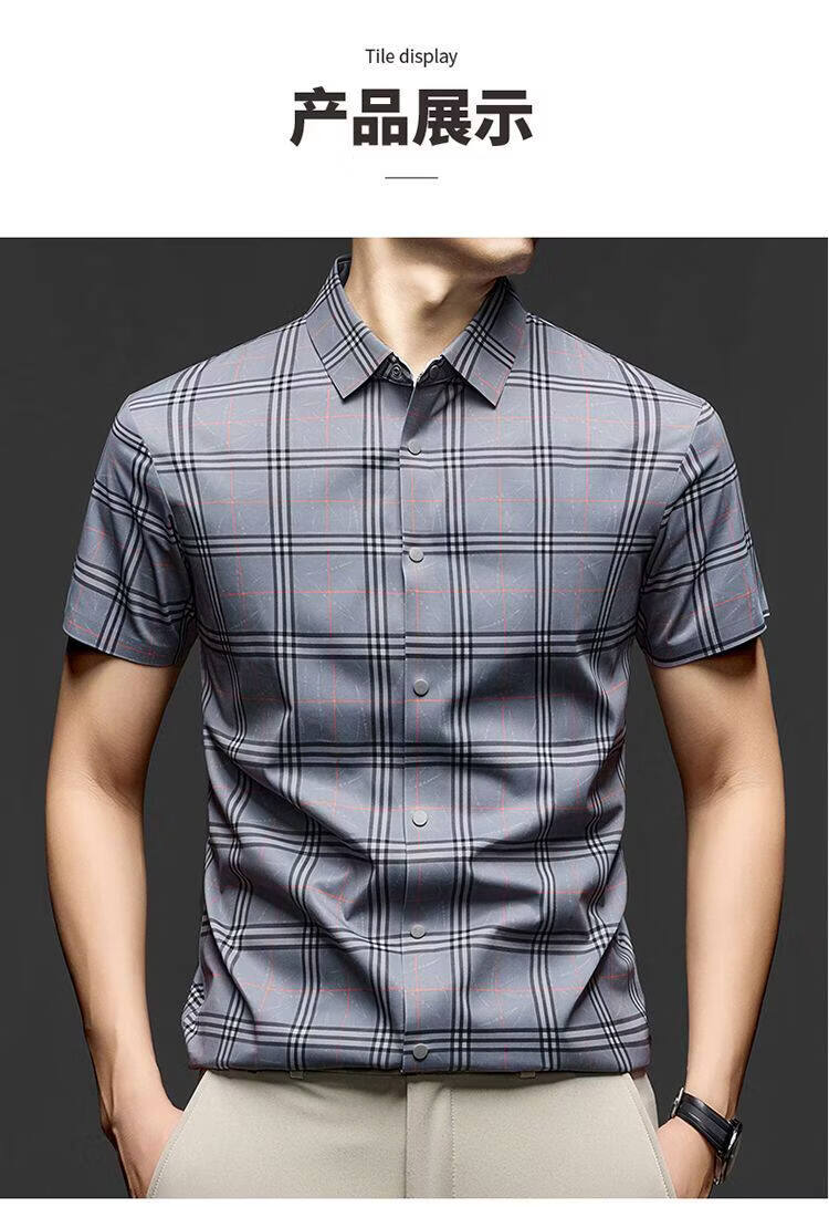 JOEONE business style sub-shirt men's short-sleeved lapel anti-wrinkle no-iron men's shirt slate gray M
