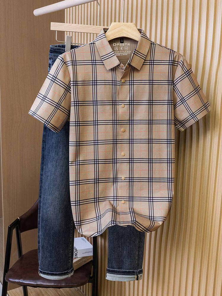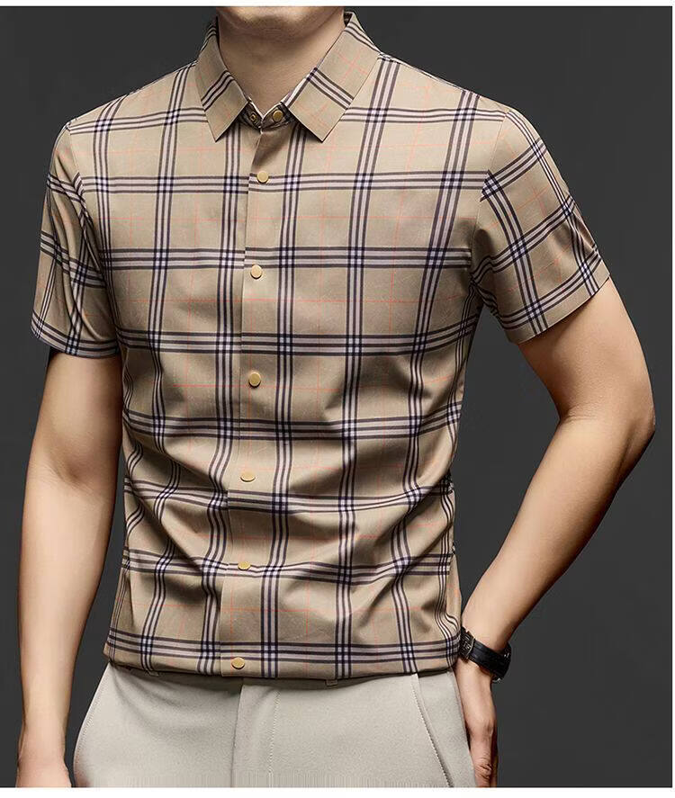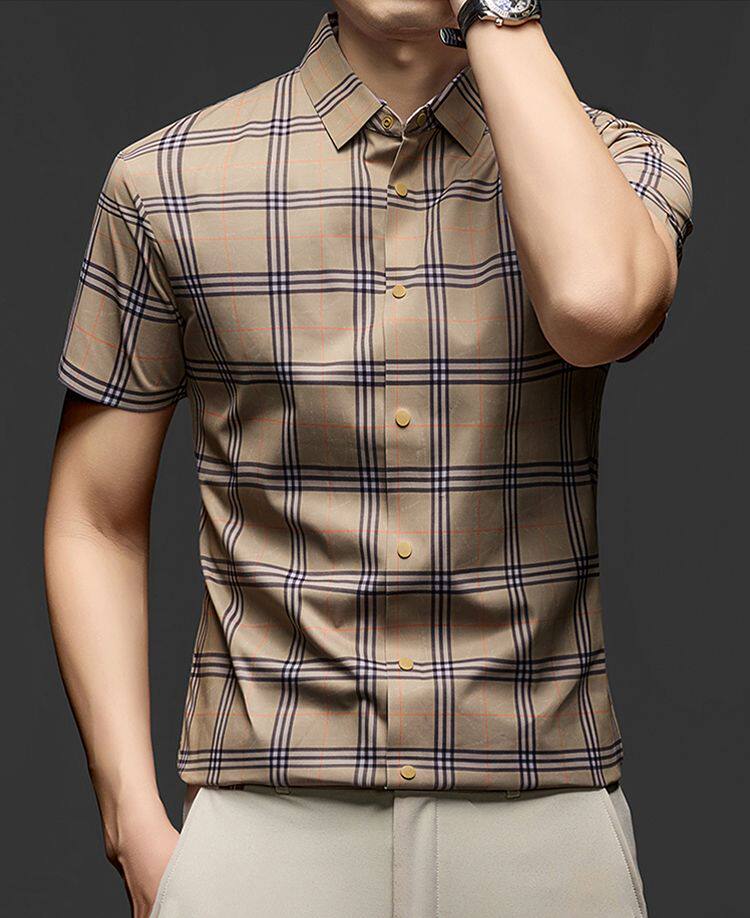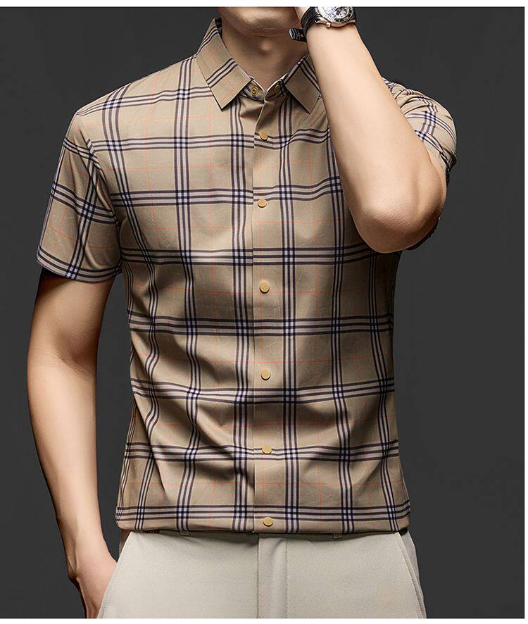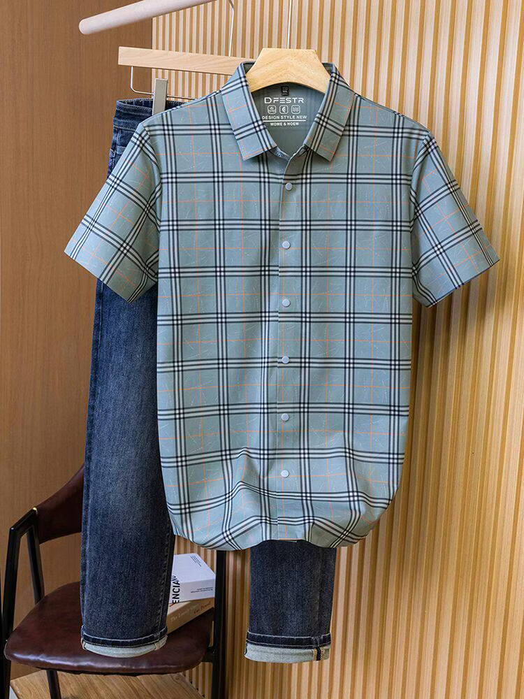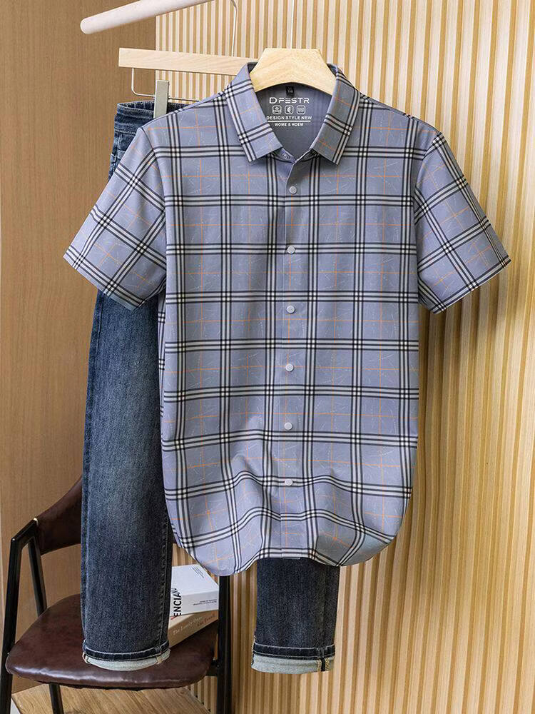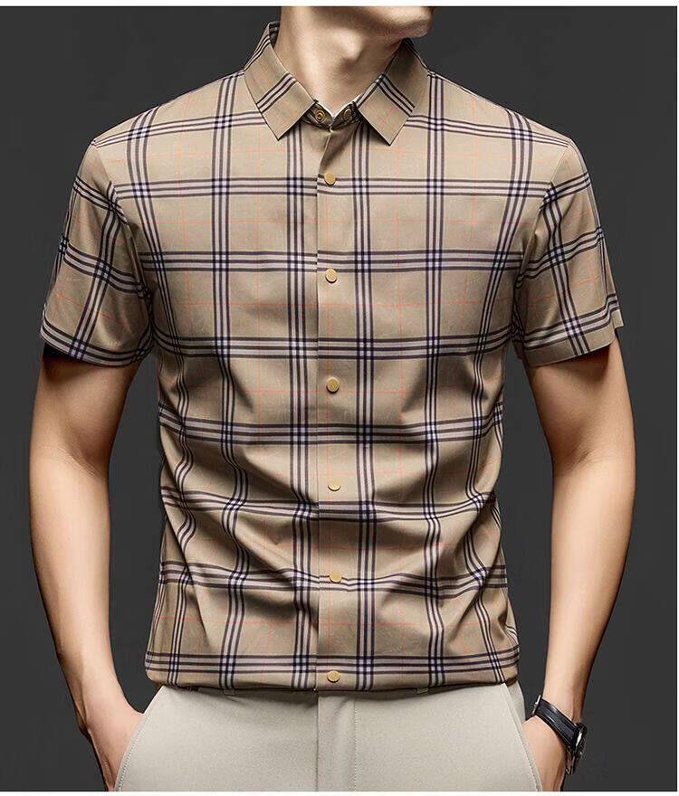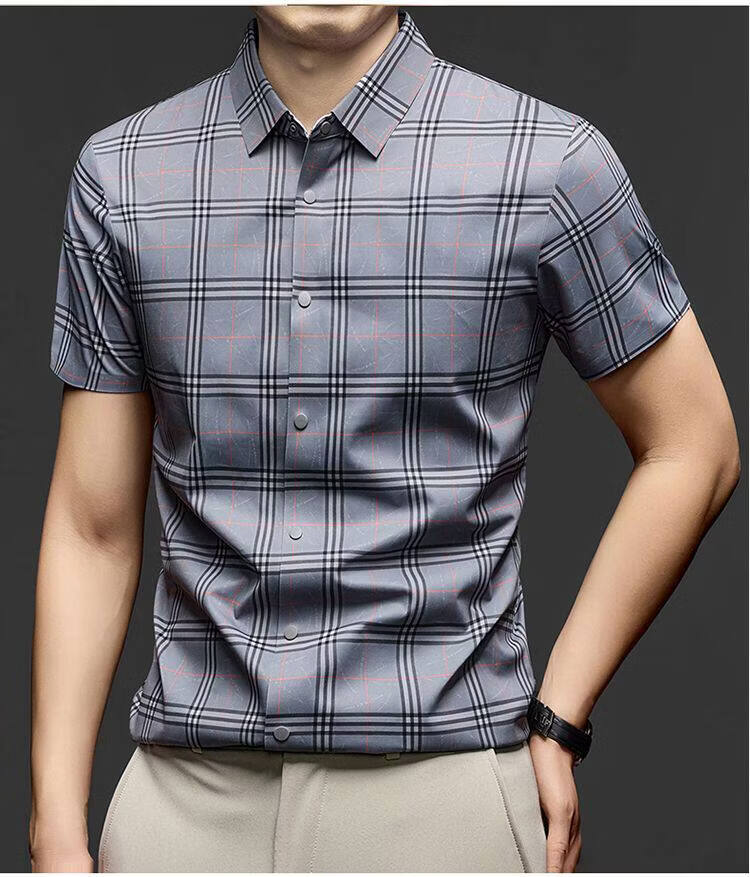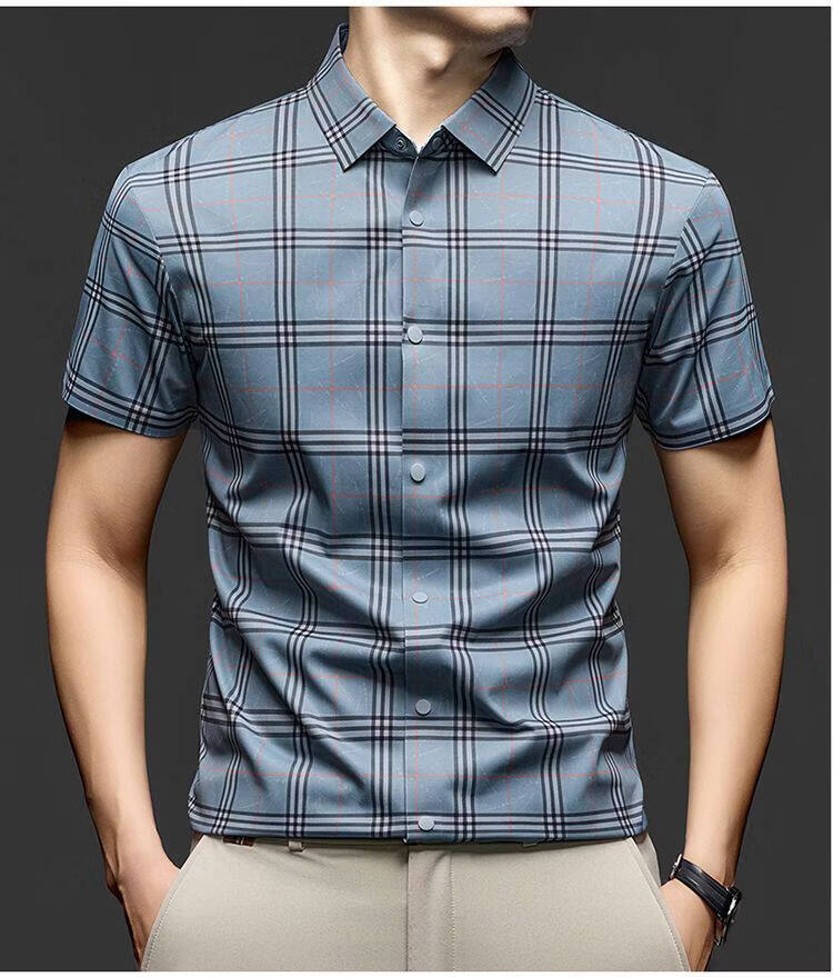 JOEONE business style sub-shirt men's short-sleeved lapel anti-wrinkle no-iron men's shirt slate gray M