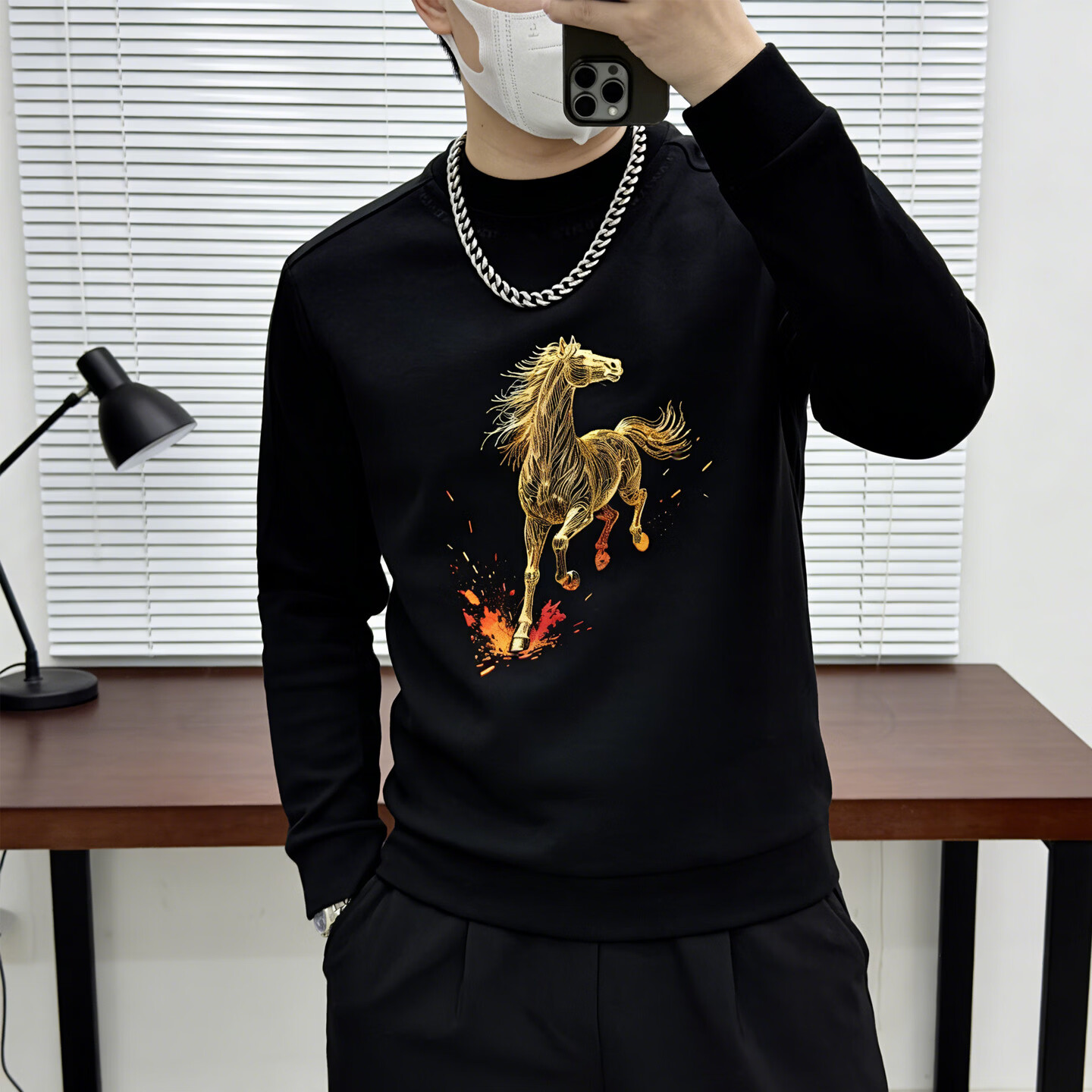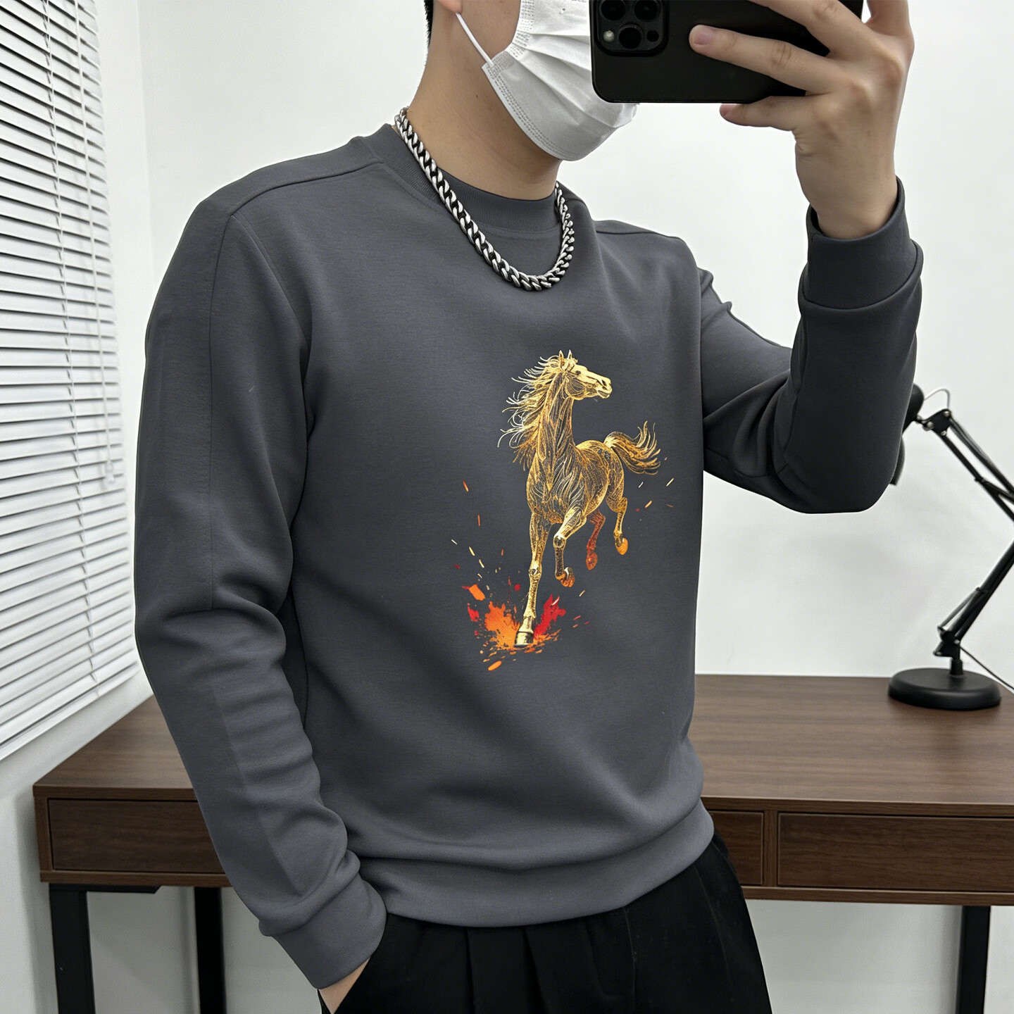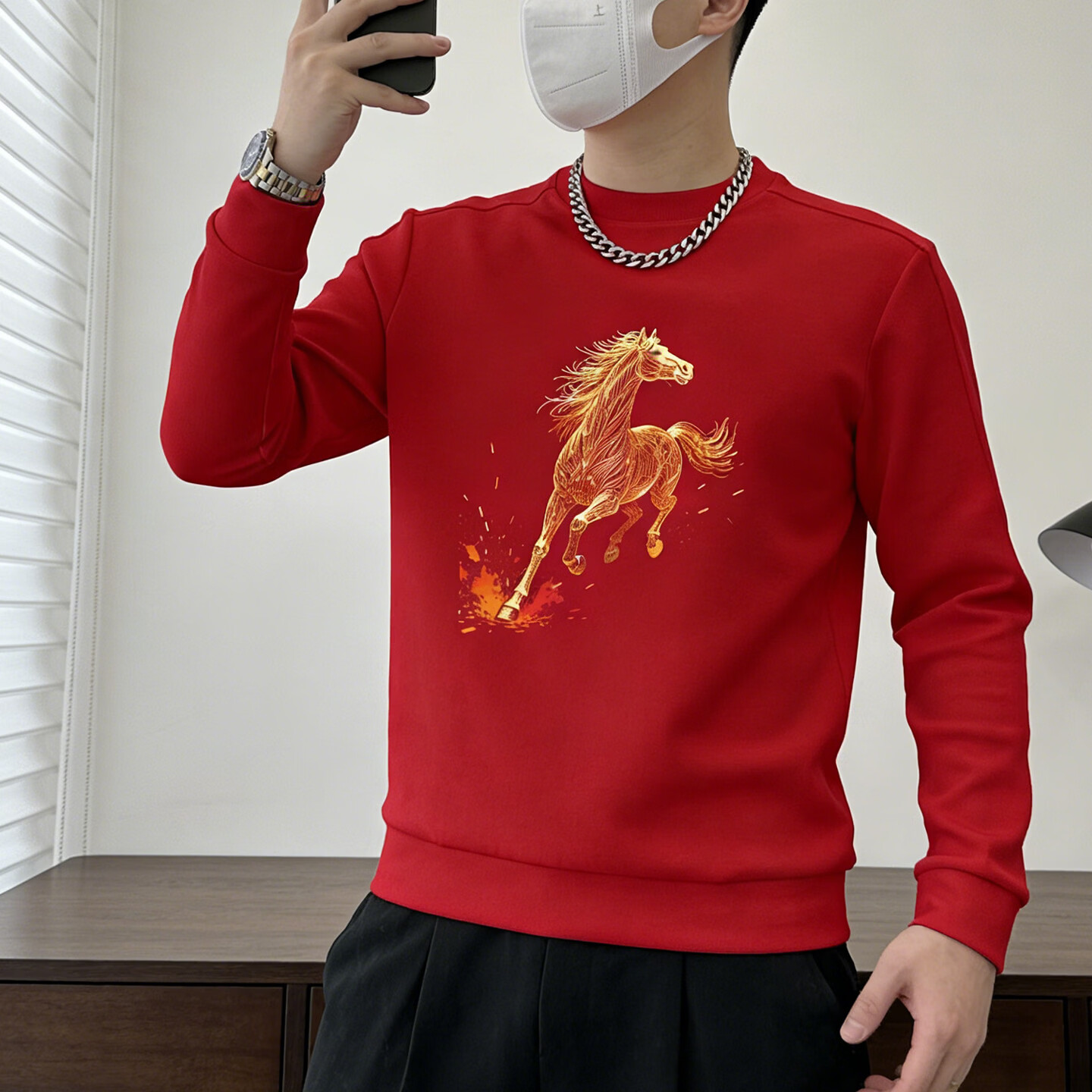 Playboy Chinese style red sweatshirt for men 2026 spring round neck long-sleeved sweatshirt bottoming shirt national trend plus velvet gray M 90-100Jin Jin is equal to 0.5 kg