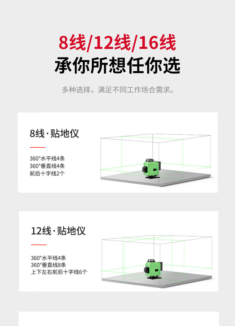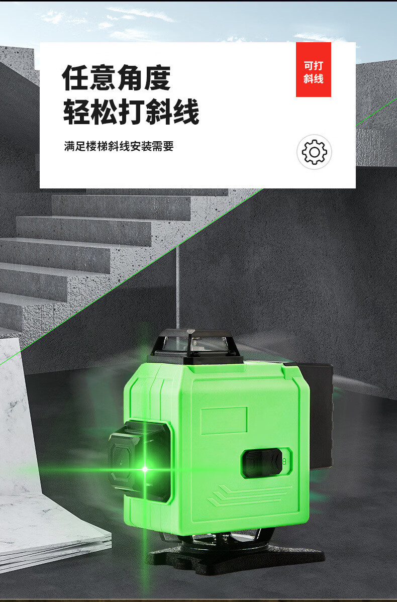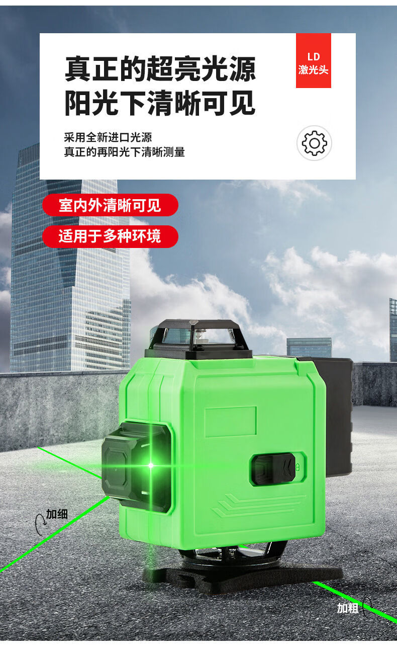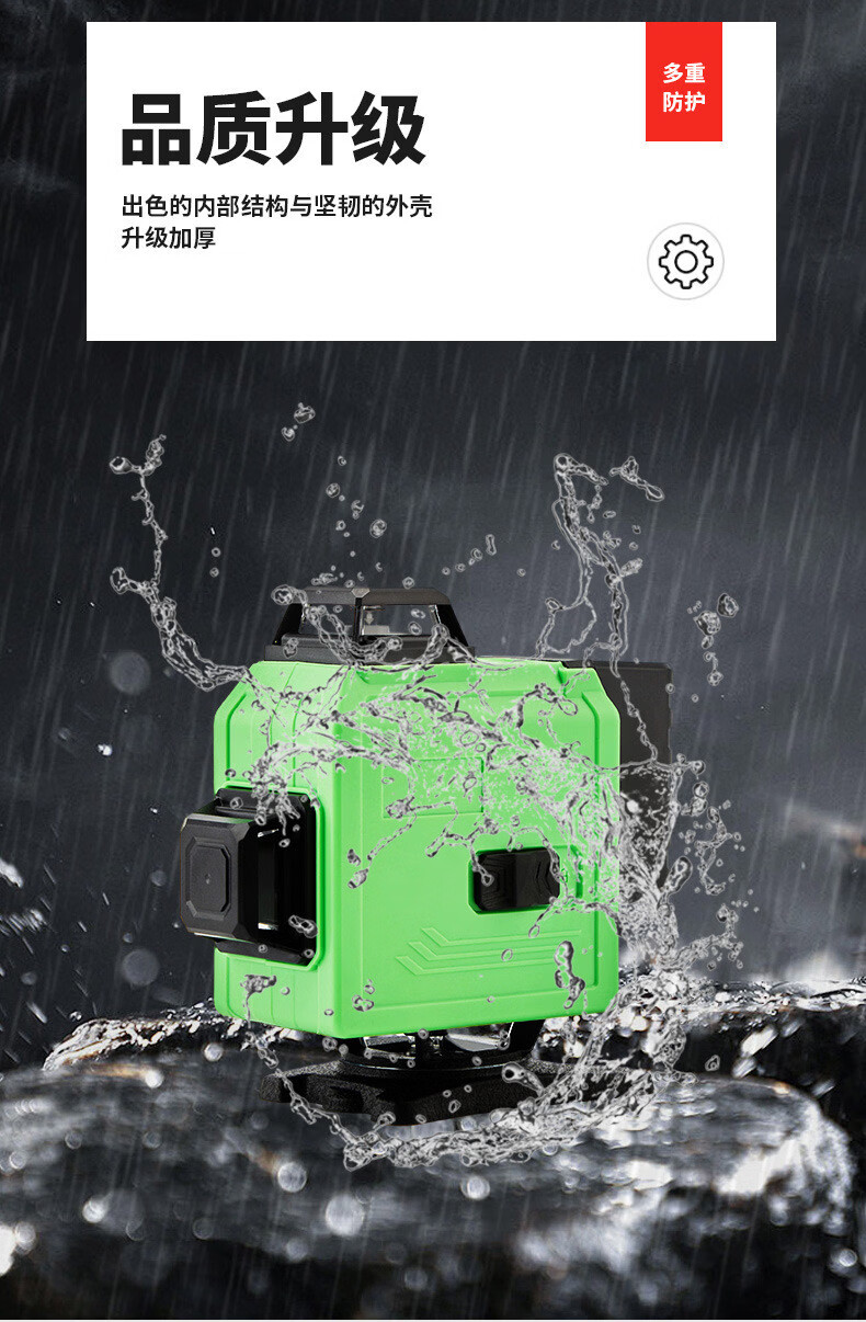 仁聚益绿光遥控贴地仪水平尺12/16线自动打线贴墙激光水平仪高精度精准 超亮高精度绿光遥控12线+大锂电*2+升降平台2