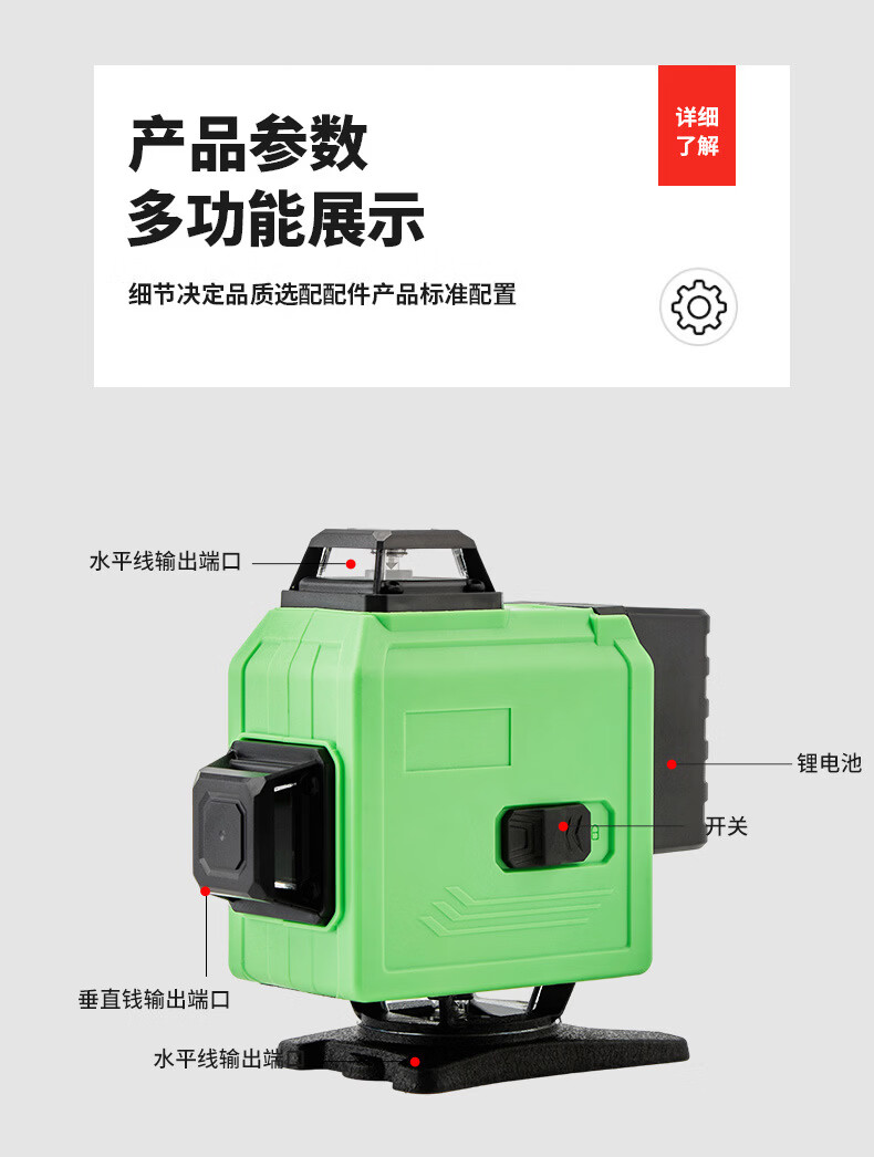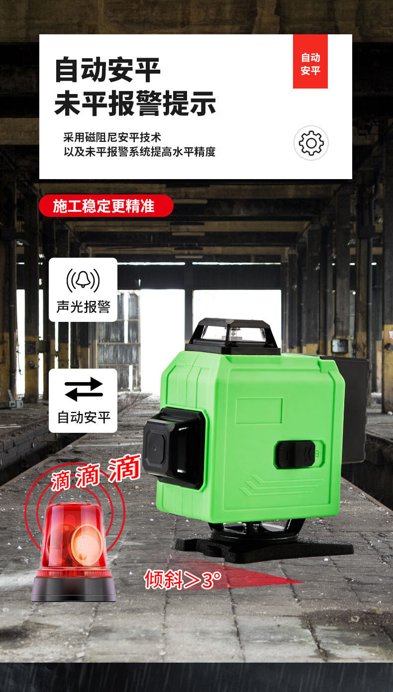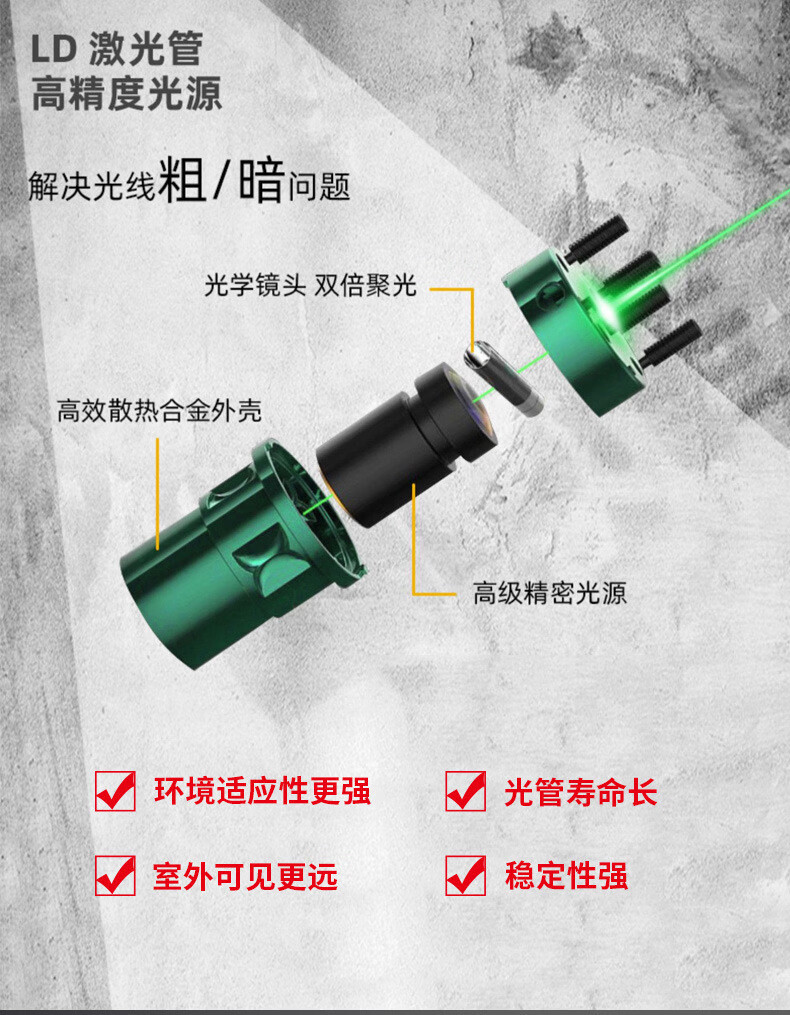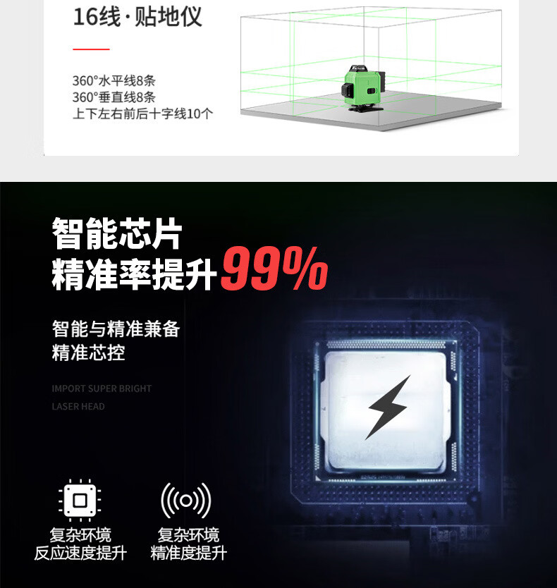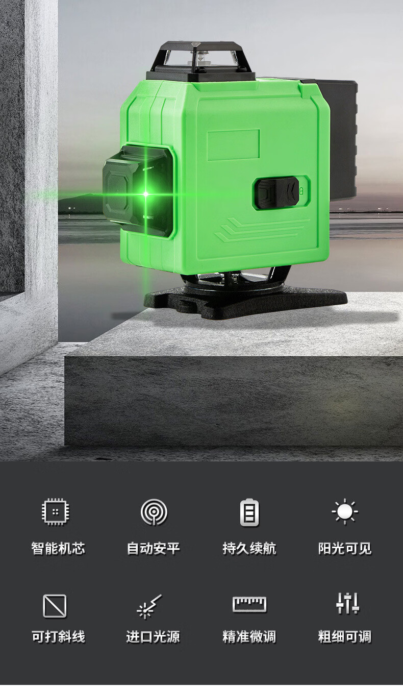 仁聚益绿光遥控贴地仪水平尺12/16线自动打线贴墙激光水平仪高精度精准 超亮高精度绿光遥控12线+大锂电*2+升降平台2