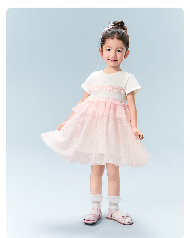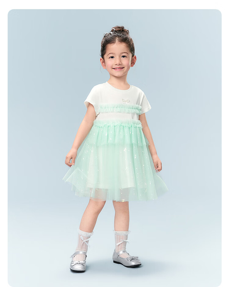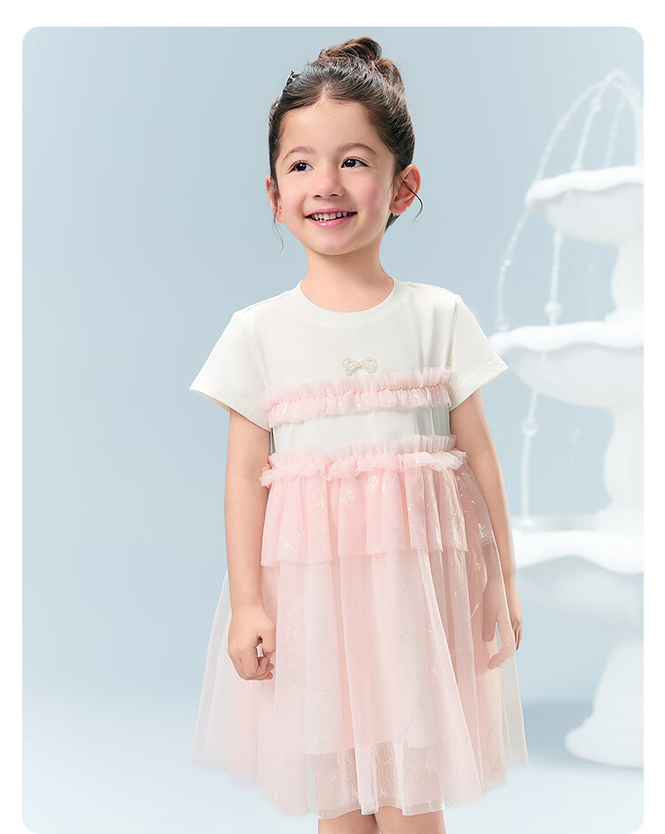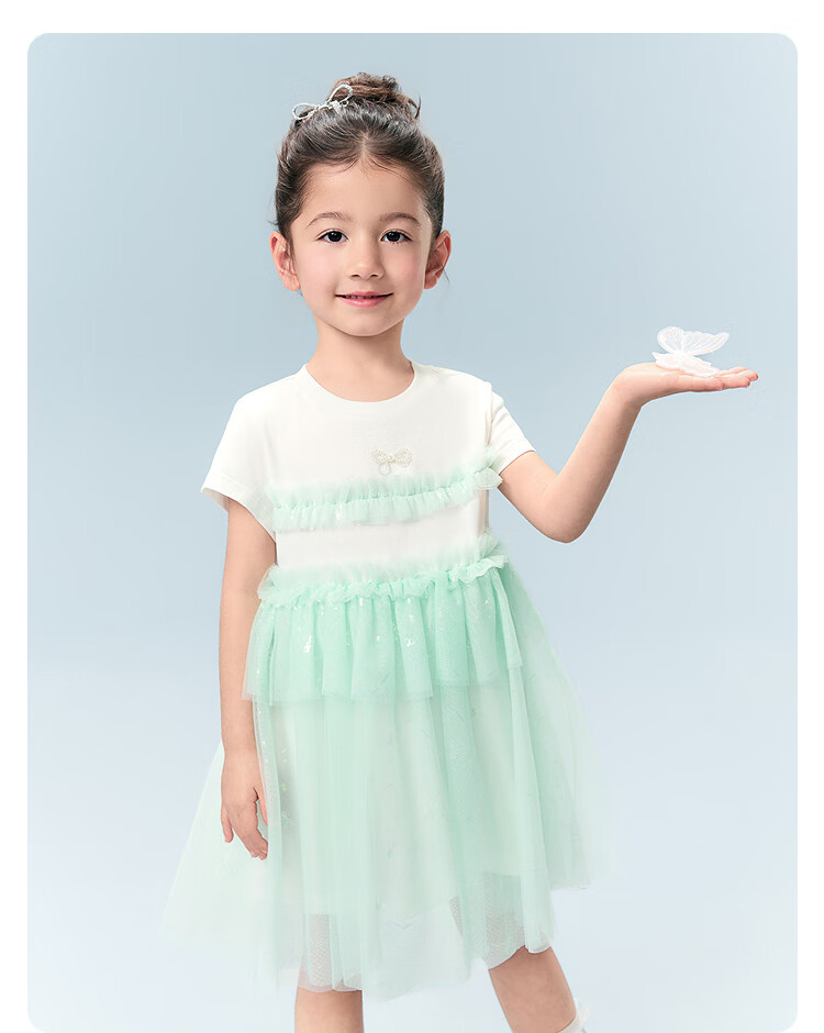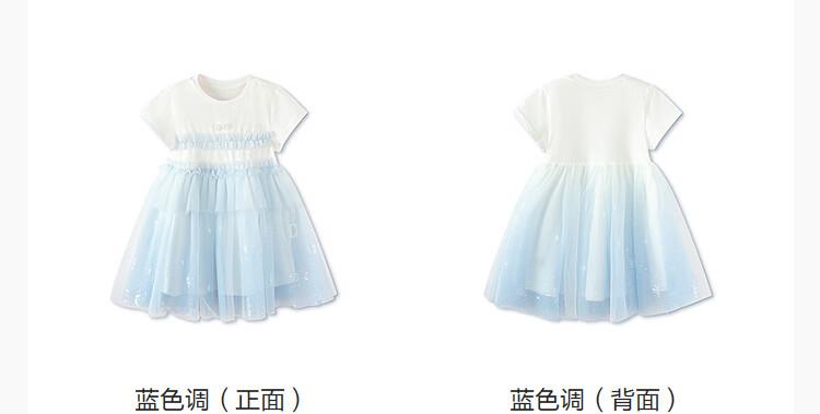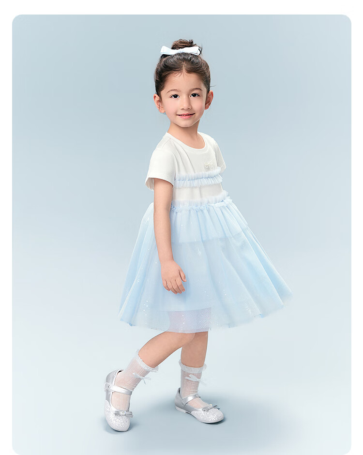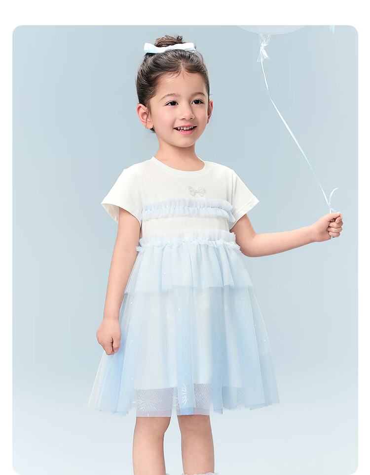 BALABALA Children's Clothes Girls Dress Children's Skirt 2026 New Summer Clothes Gradient Mesh Skirt Pearl Bow Blue Tone 00388 80