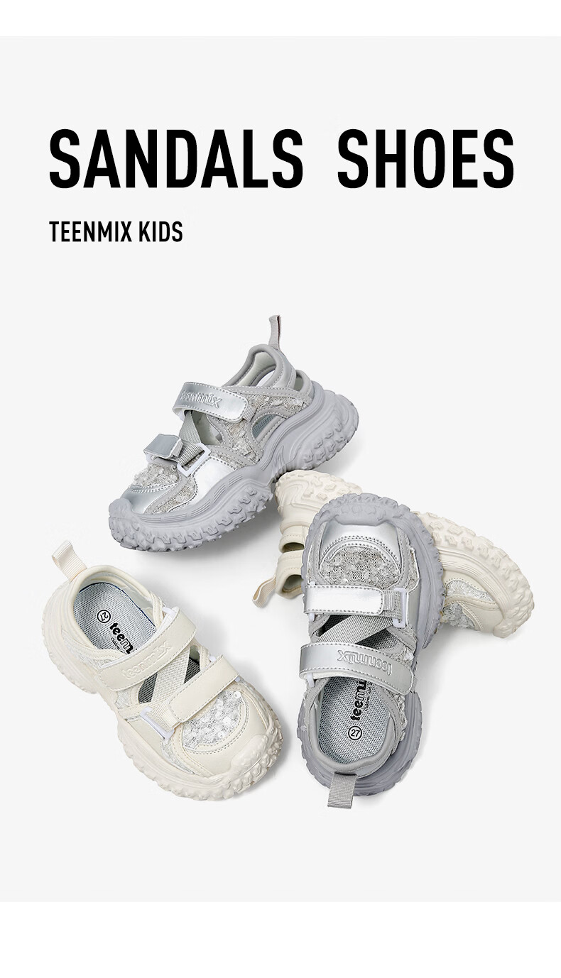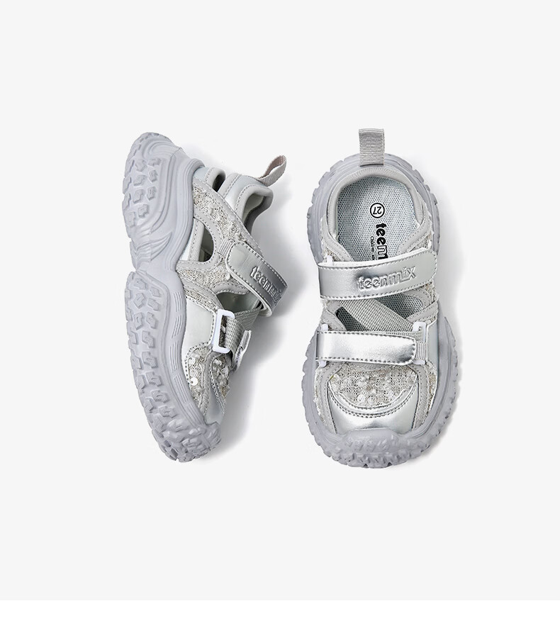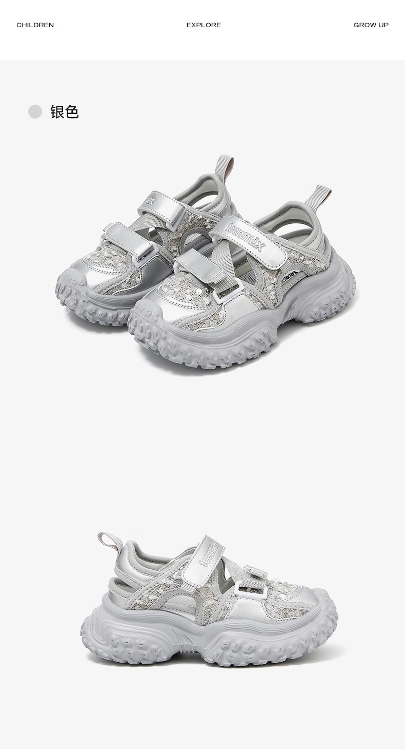 Tianmeiyi children's shoes 2026 summer new sports shoes girls sandals breathable soft bottom baby girl beach shoes silver 26