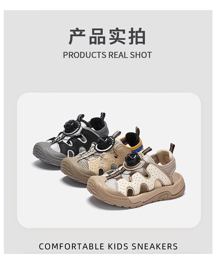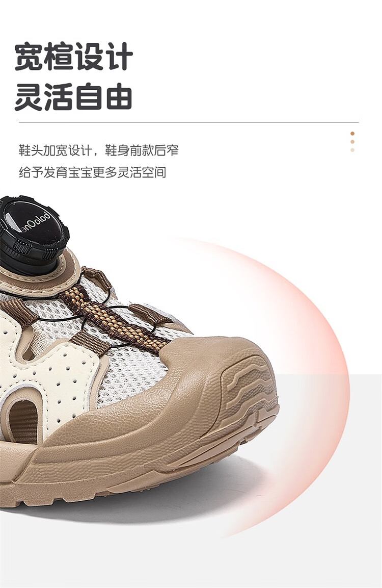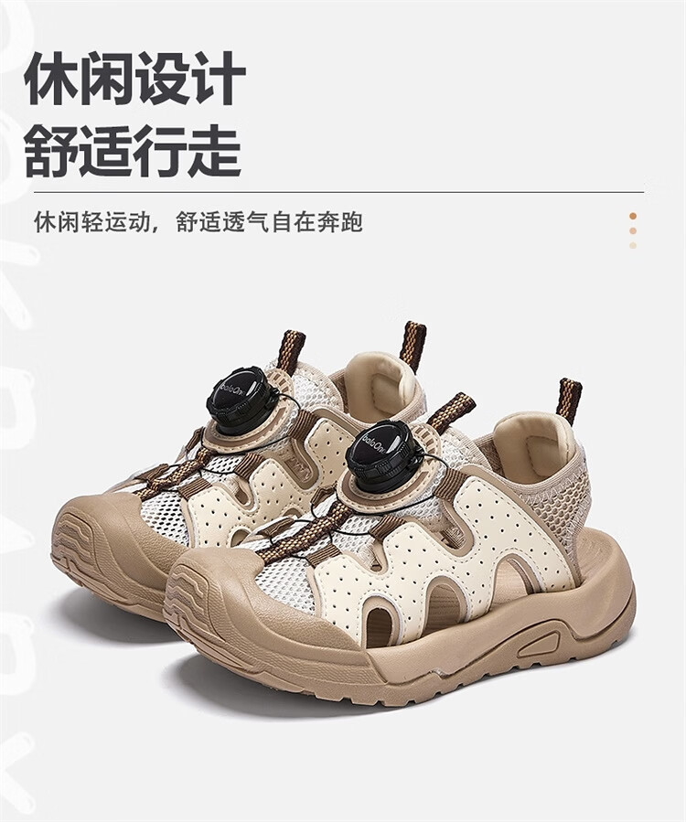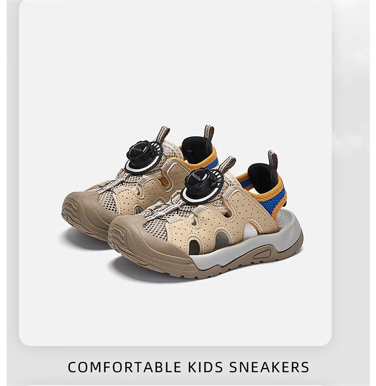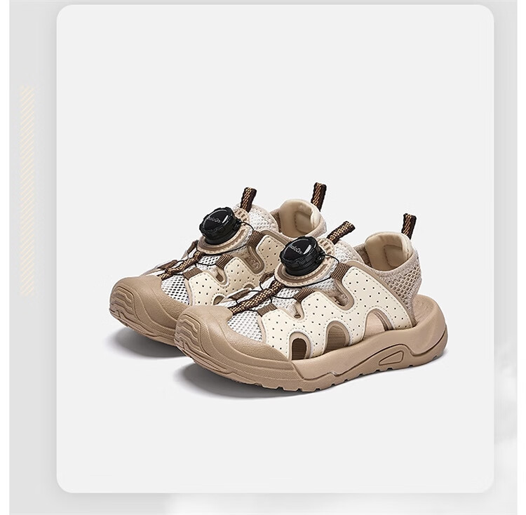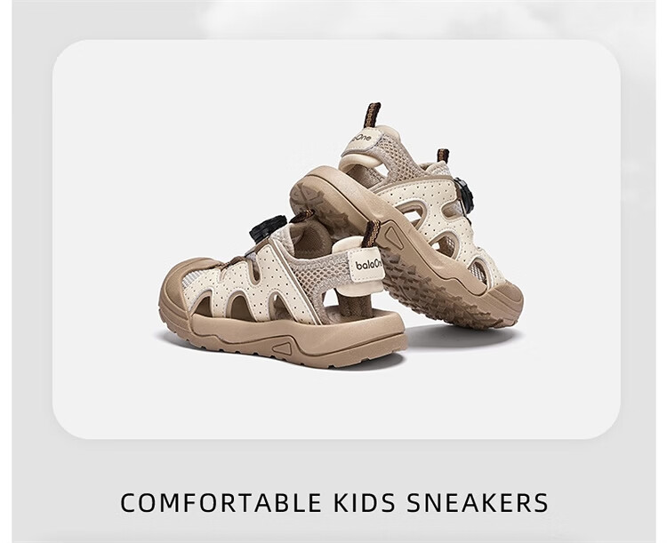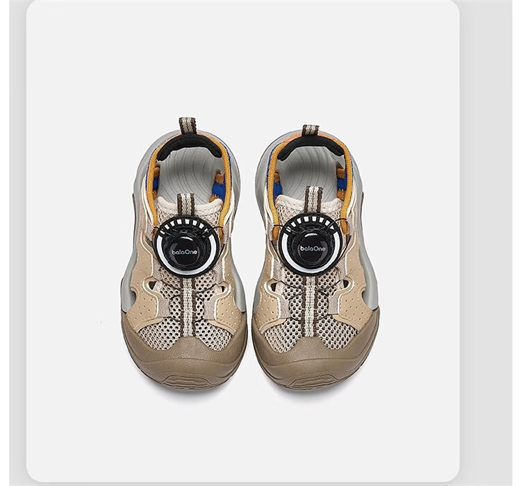 BALABALA Children's Shoes Children's Sandals Boys and Girls 2026 New Summer Hollow Breathable Mesh Knob Buckle Sports Shoes Beige 30201 26 (foot length 16/inner length 16.7)