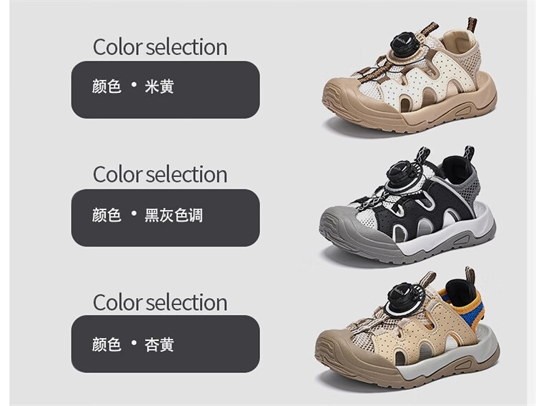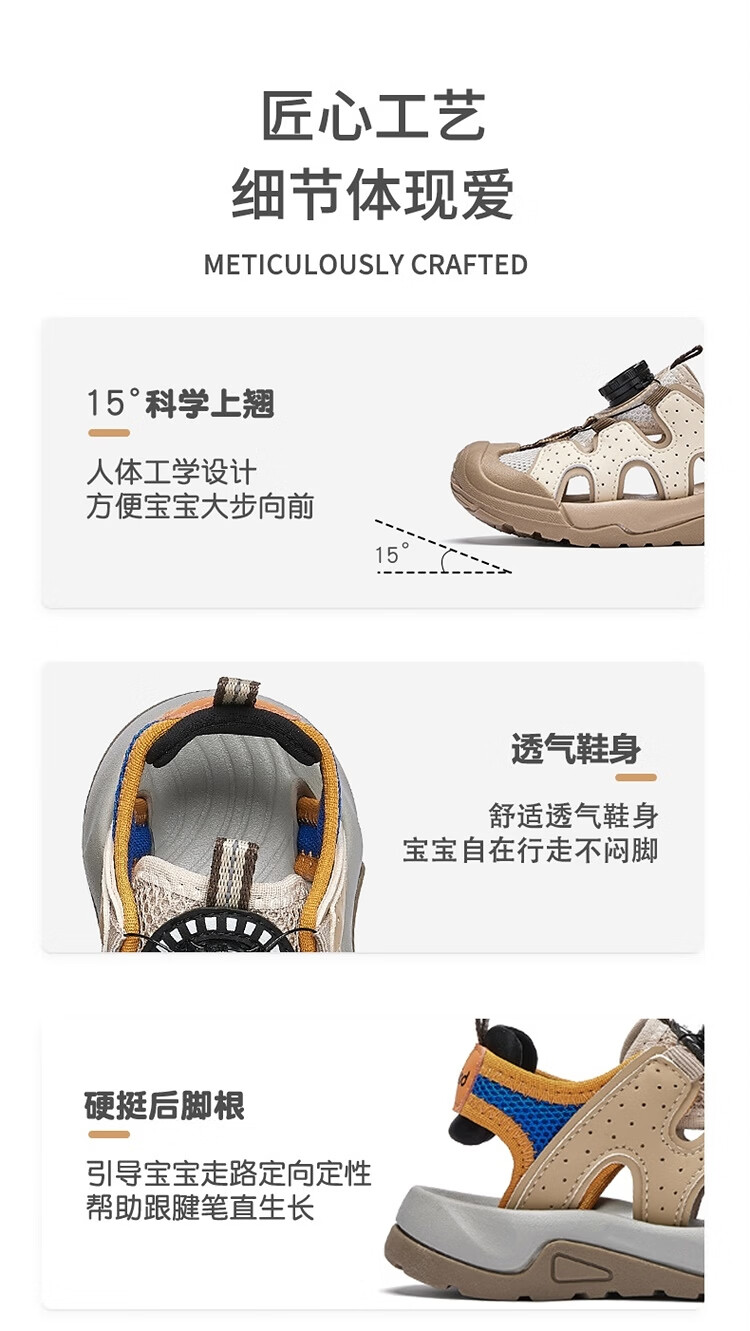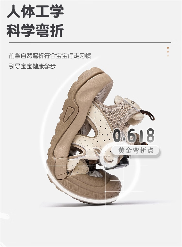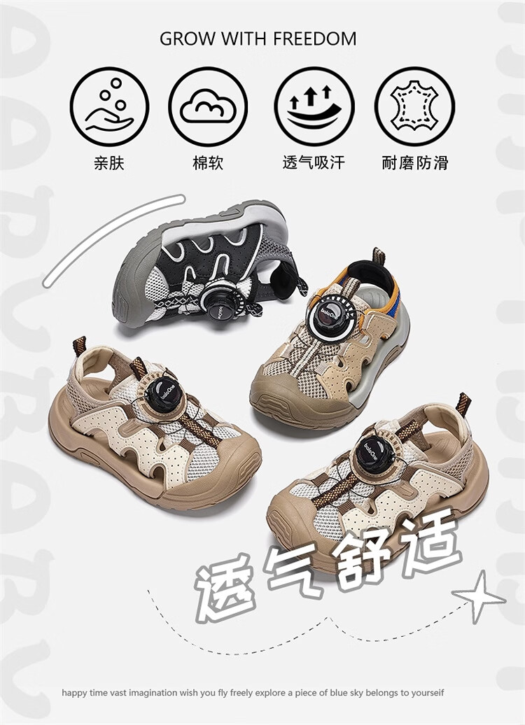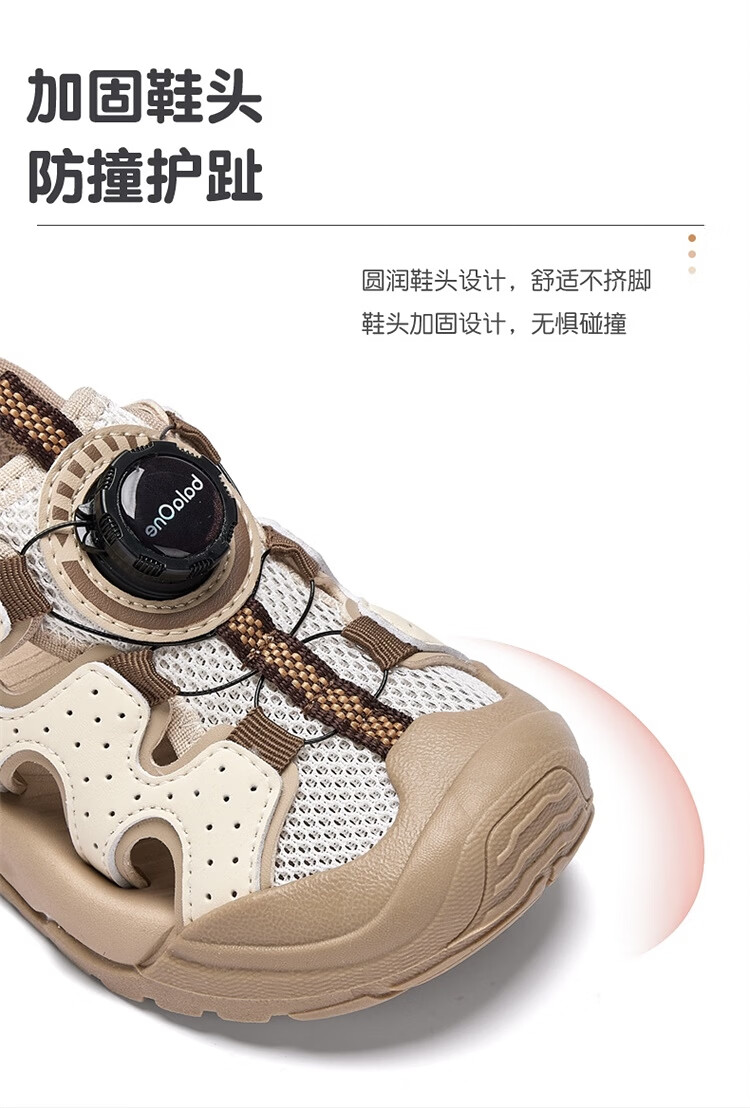 BALABALA Children's Shoes Children's Sandals Boys and Girls 2026 New Summer Hollow Breathable Mesh Knob Buckle Sports Shoes Beige 30201 26 (foot length 16/inner length 16.7)