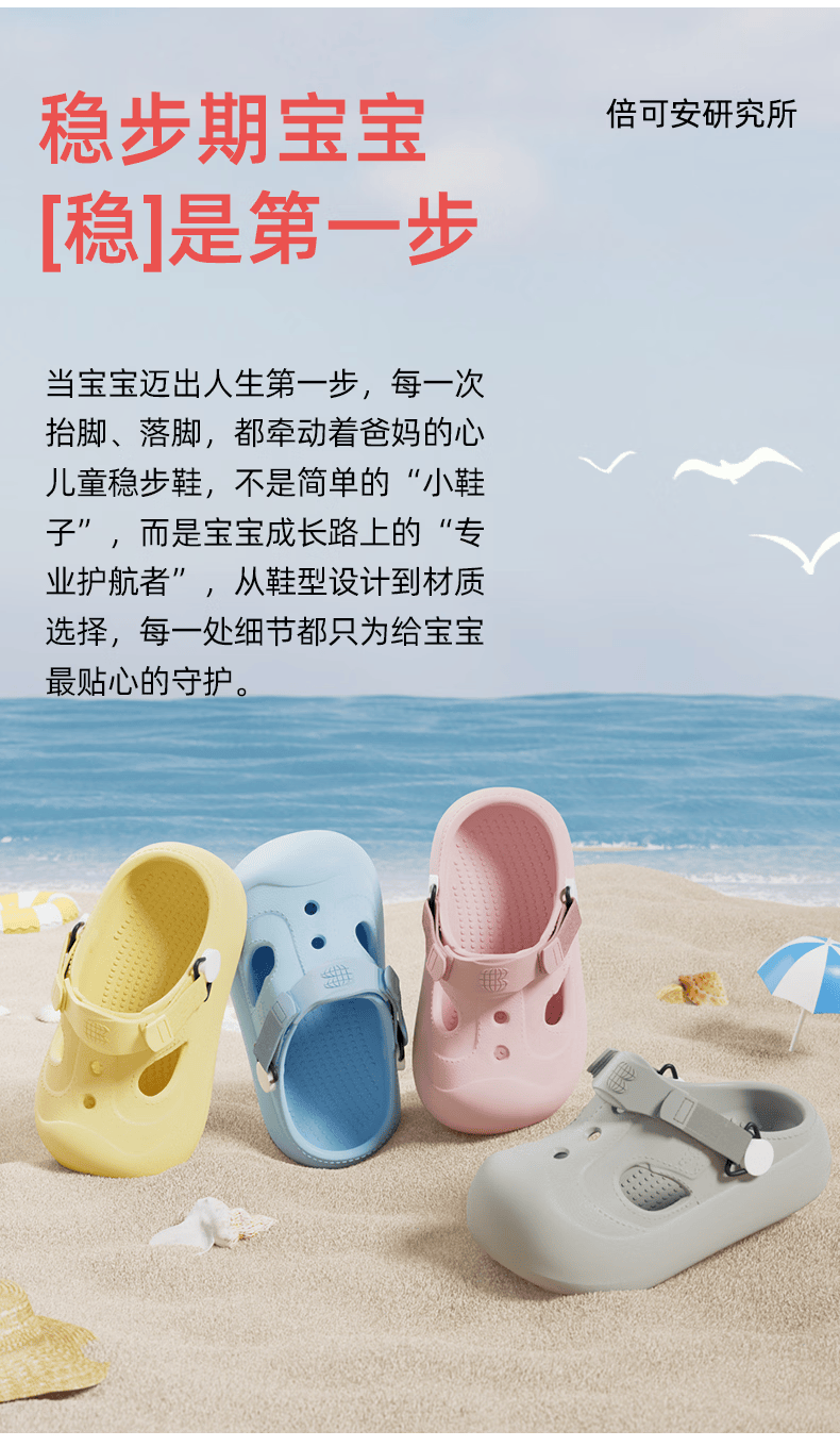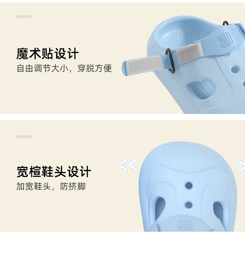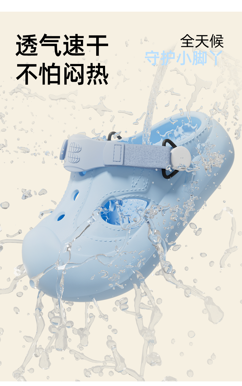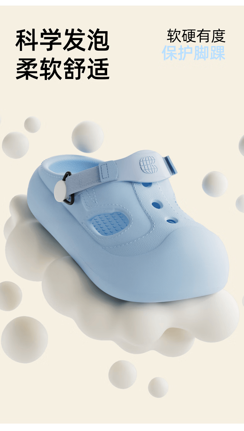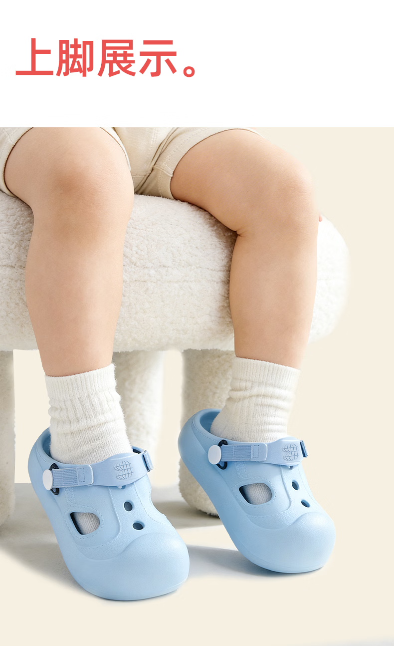 babycrayon稳步儿童洞洞鞋男女小童宝宝凉拖鞋夏外穿2026新款包头防撞拖鞋 蓝色 15 cm内长【150】适合脚长14.5cm