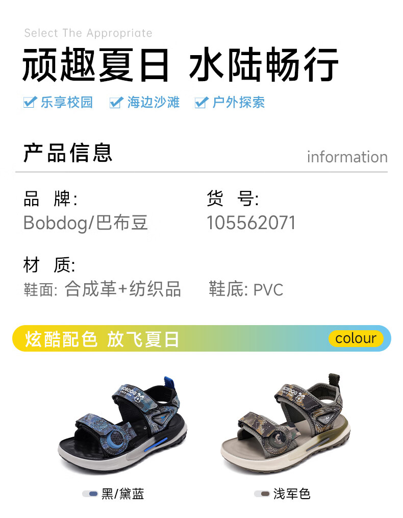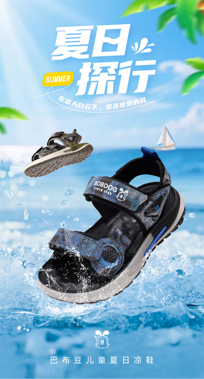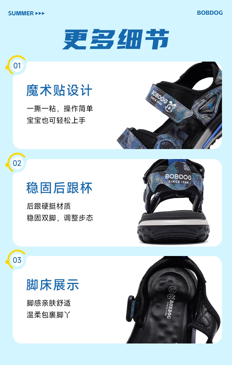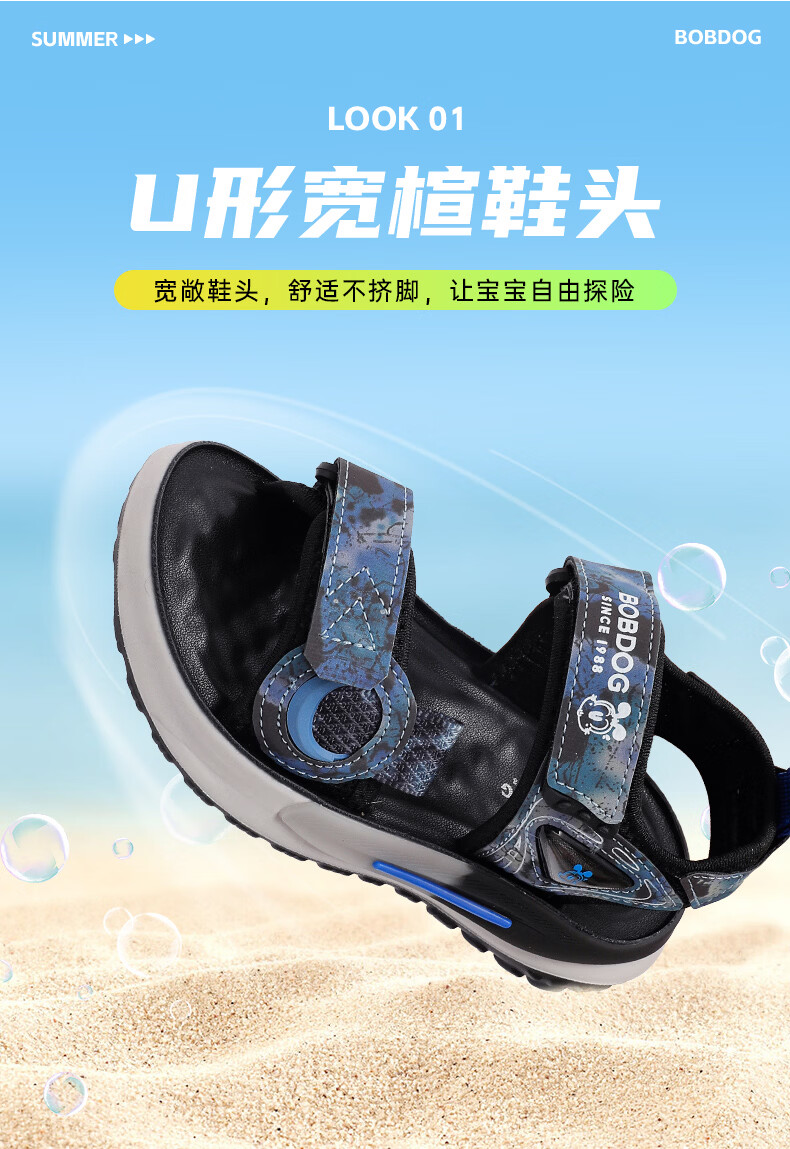 BOBDOG children's shoes 2026 summer new style boys open-toed children's sandals boys summer men's river shoes black/dark blue 26 suitable for feet 16.0cm long