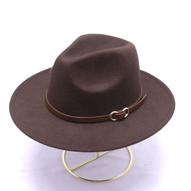 Hengyuanxiang buckle jazz hat European and American British style woolen hat outdoor felt hat retro sunshade hat for men and women light gray M56-58cm