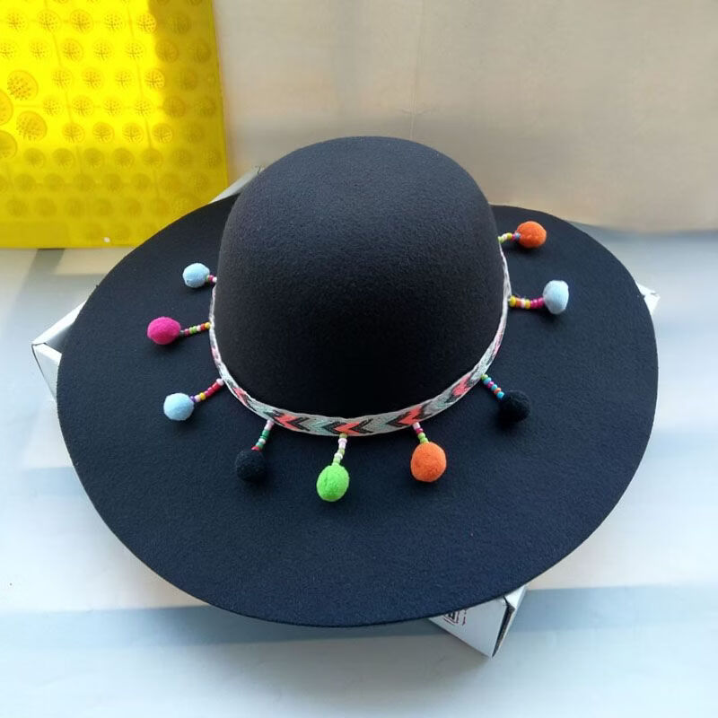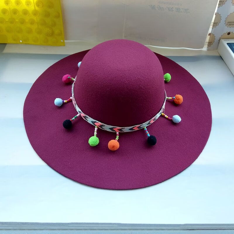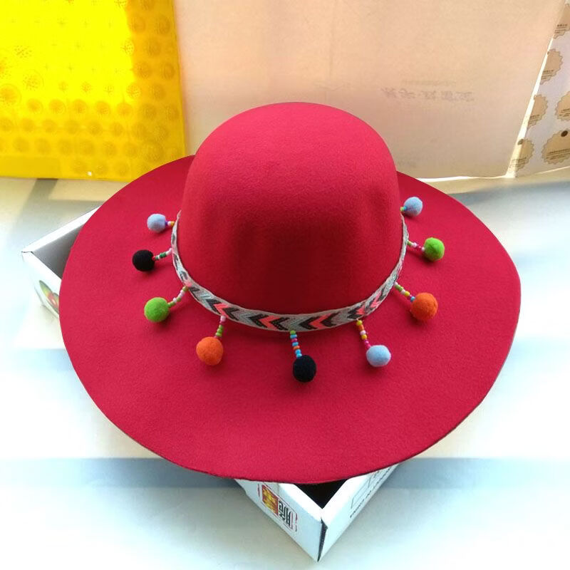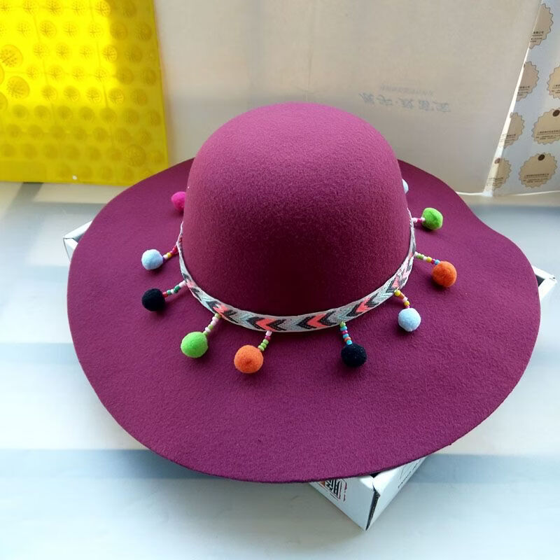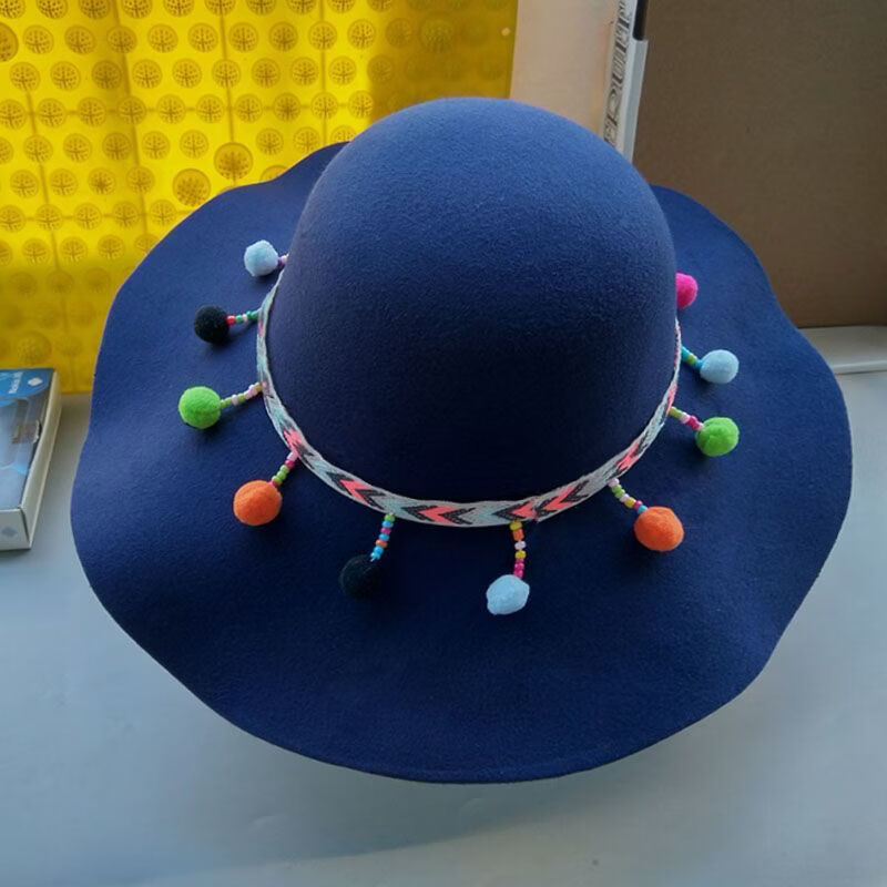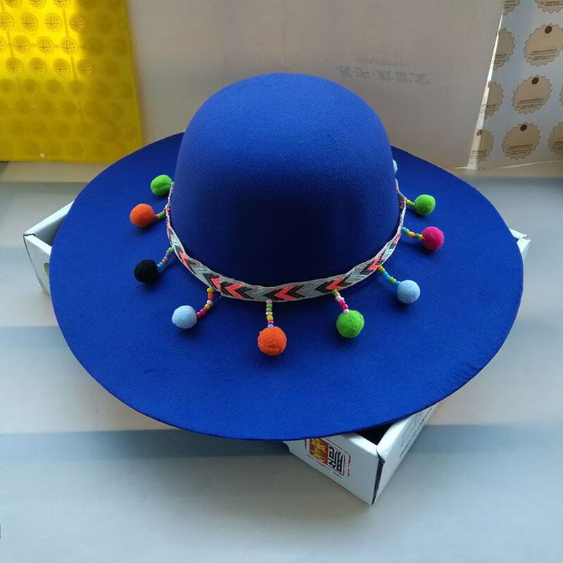 Hengyuanxiang woolen top hat for men and women, new European and American fashion flat top hat, British style dance temperament, casual jazz hat, woolen ethnic style ball sapphire blue, hat circumference 54-58CM