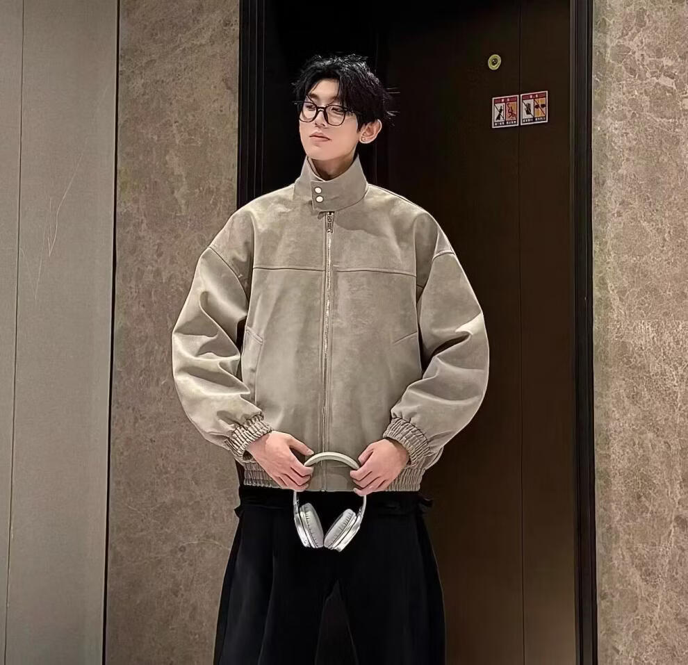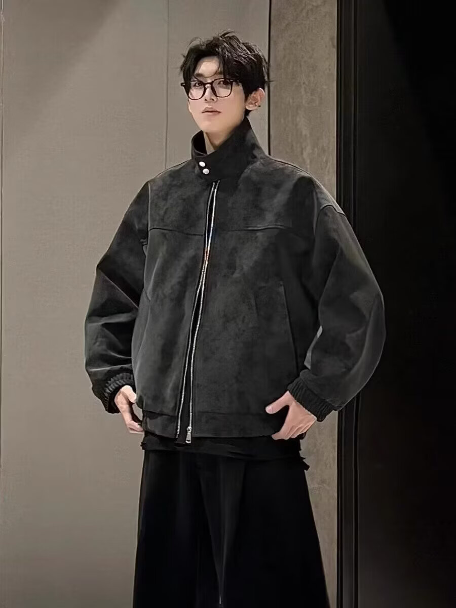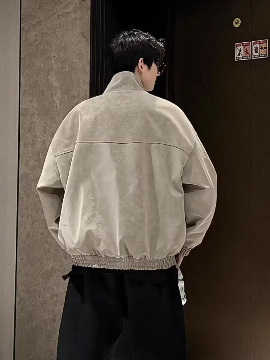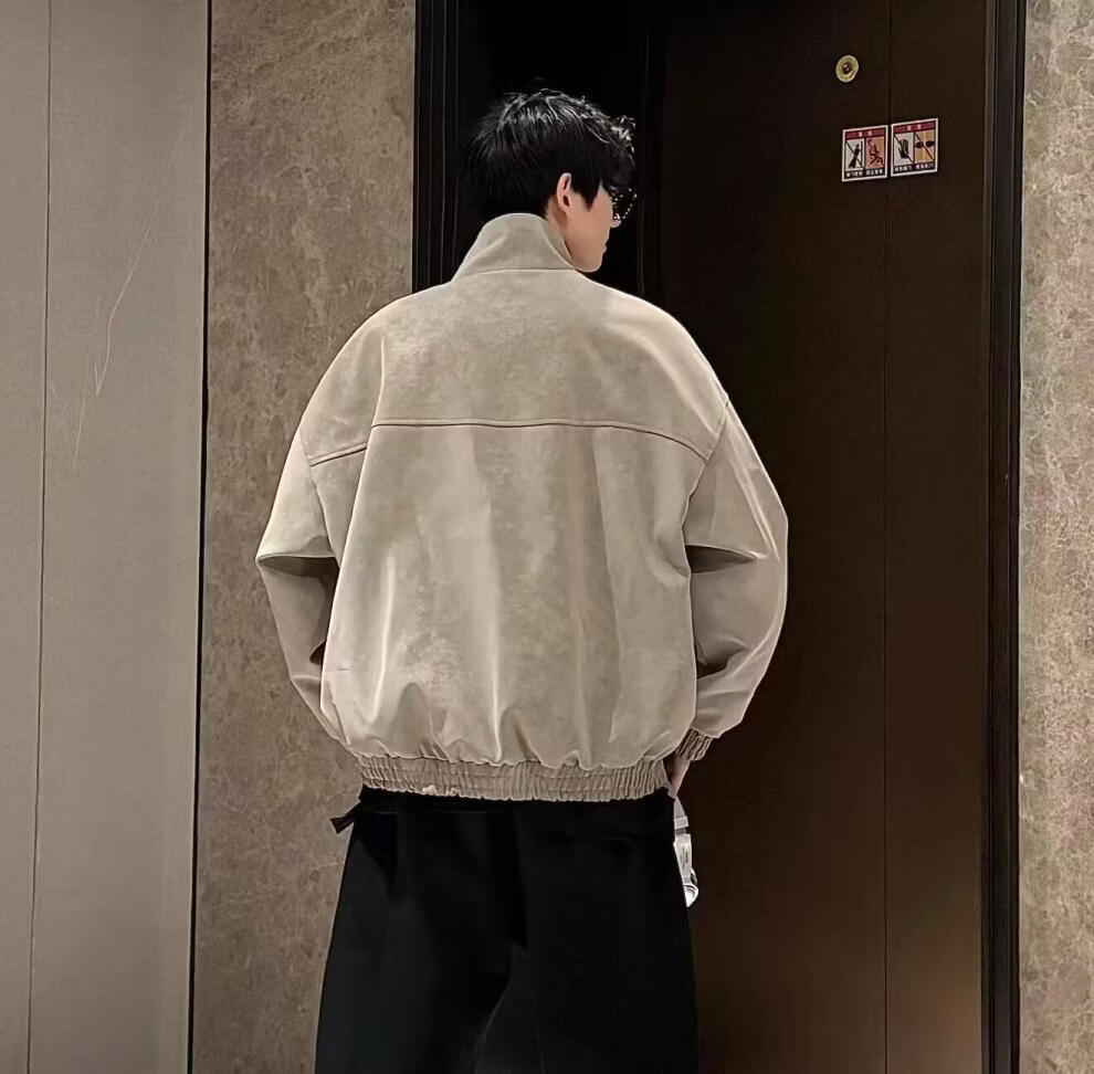 Shan Yun's new spring American retro PU leather jacket men's stand-up collar motorcycle jacket casual handsome leather jacket Japanese versatile light gray M