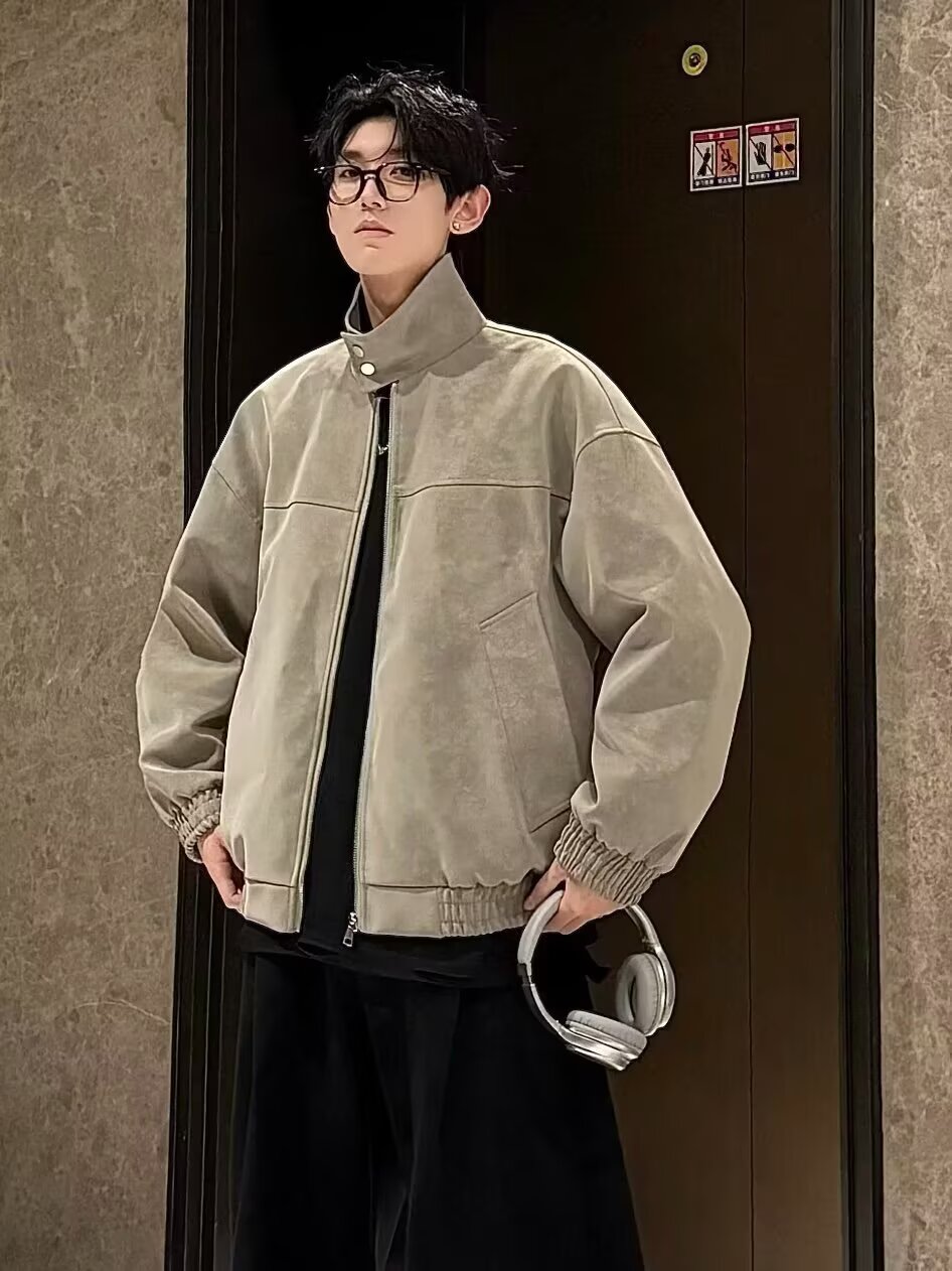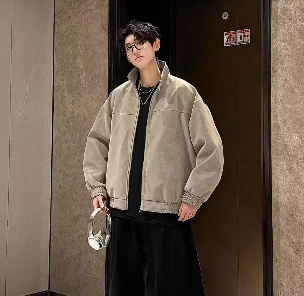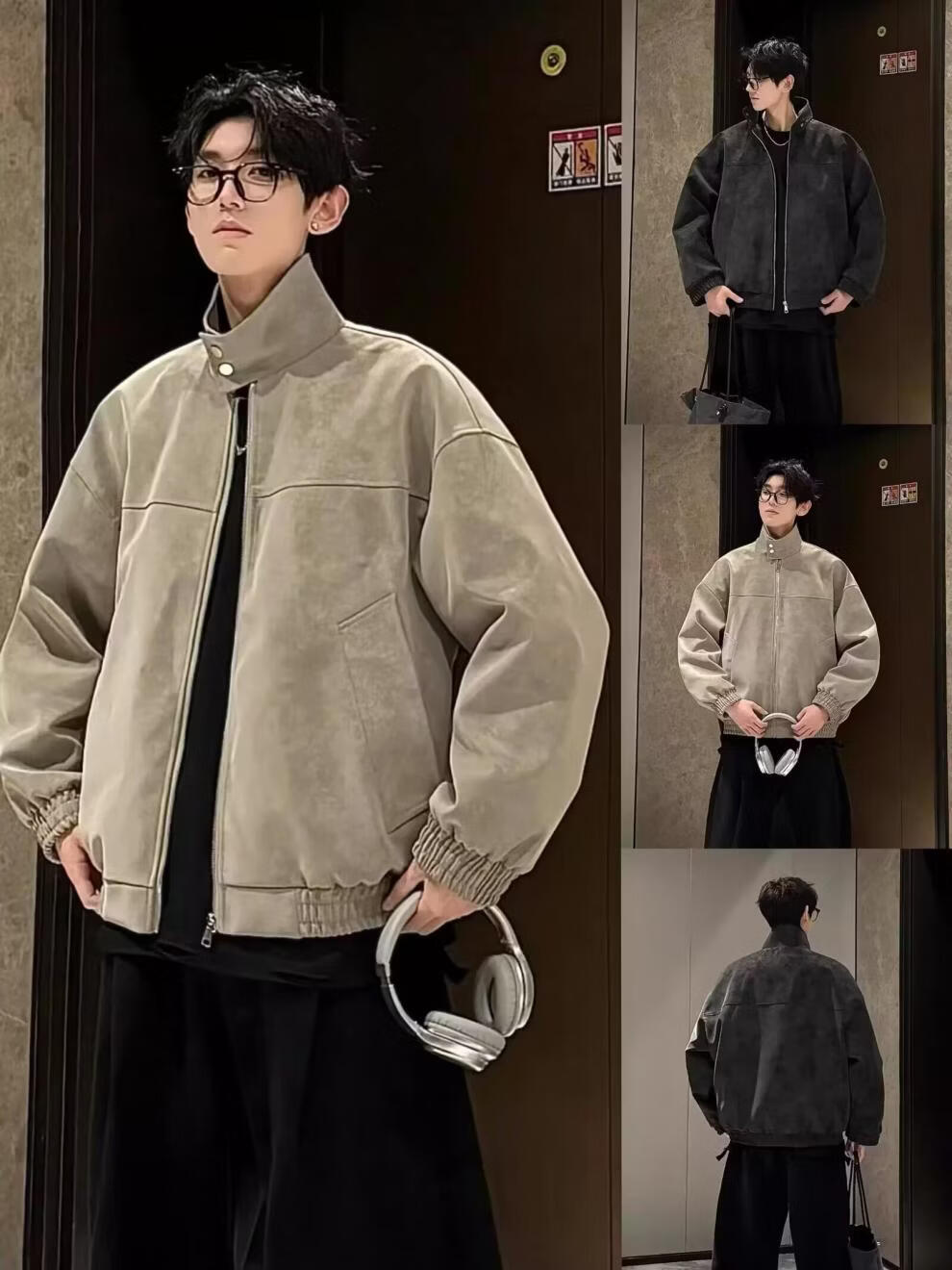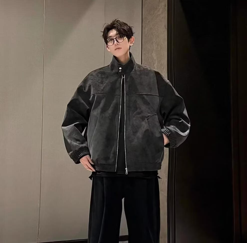 Shan Yun's new spring American retro PU leather jacket men's stand-up collar motorcycle jacket casual handsome leather jacket Japanese versatile light gray M