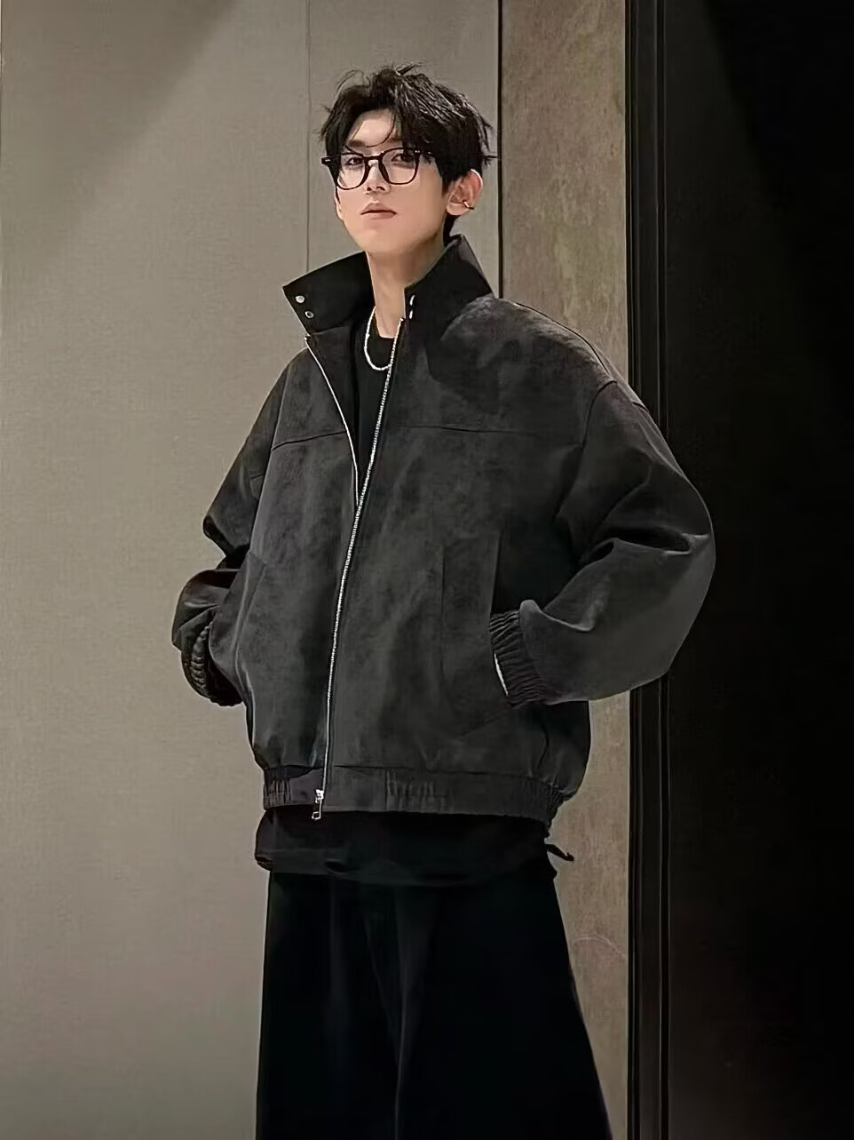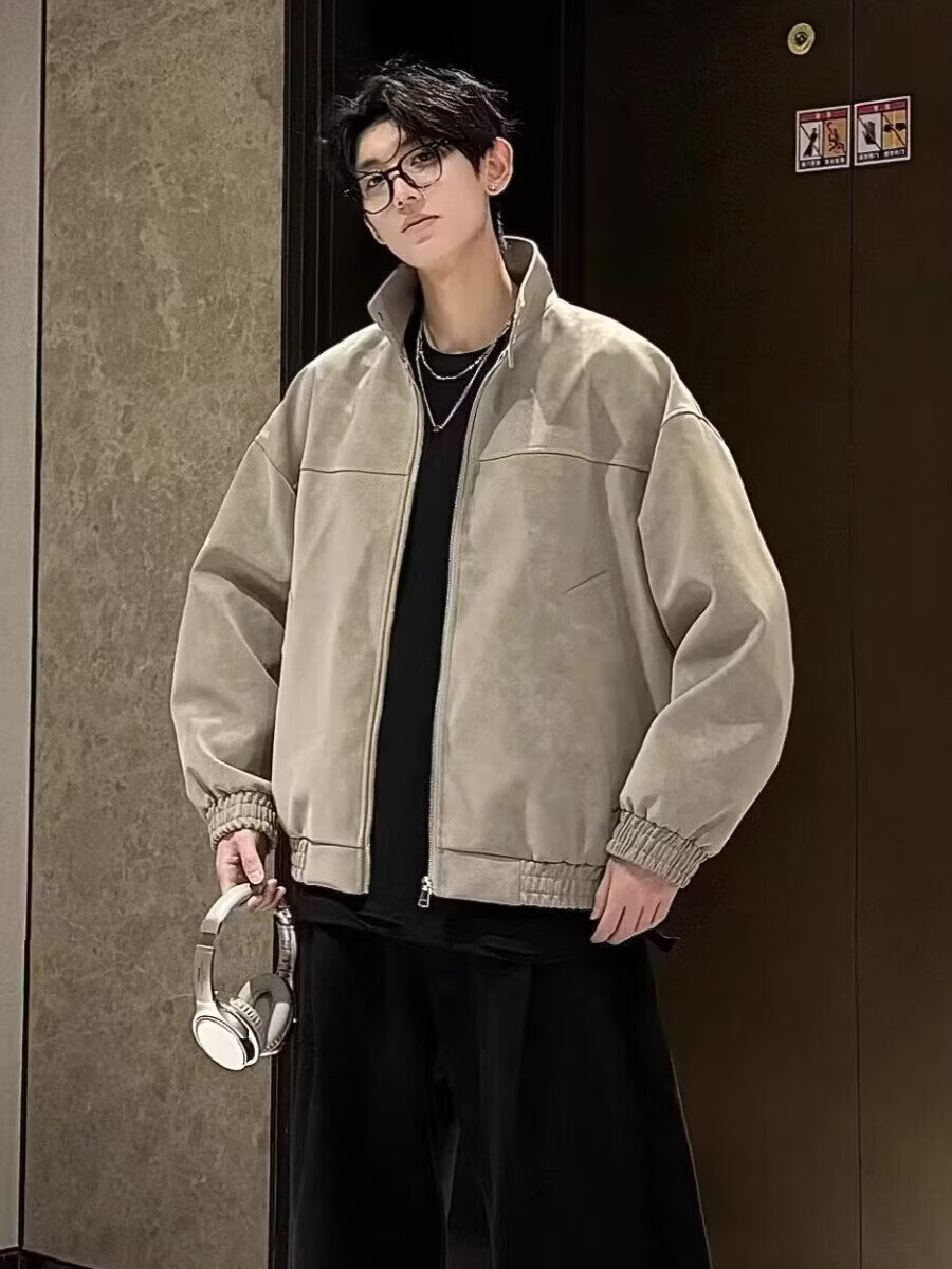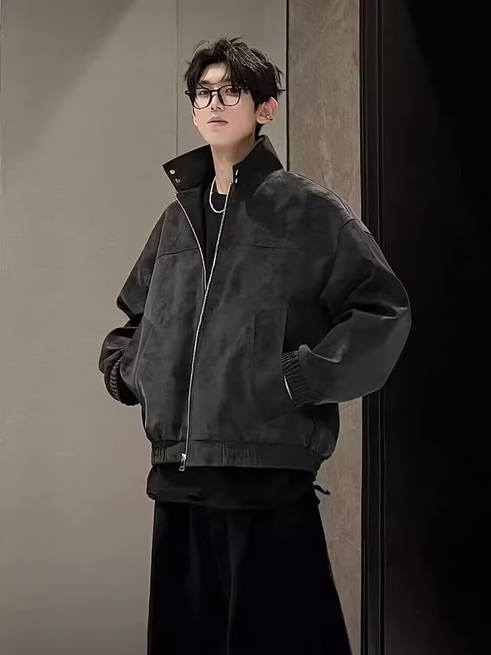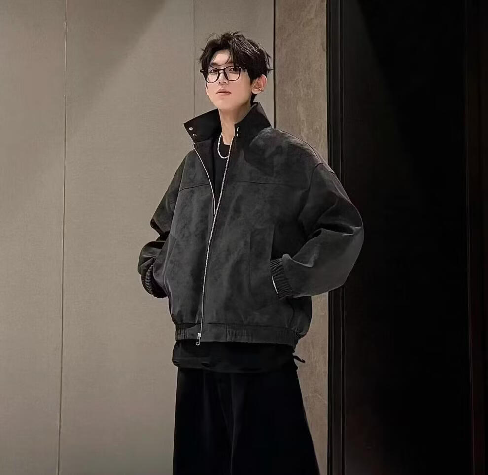 Shan Yun's new spring American retro PU leather jacket men's stand-up collar motorcycle jacket casual handsome leather jacket Japanese versatile light gray M