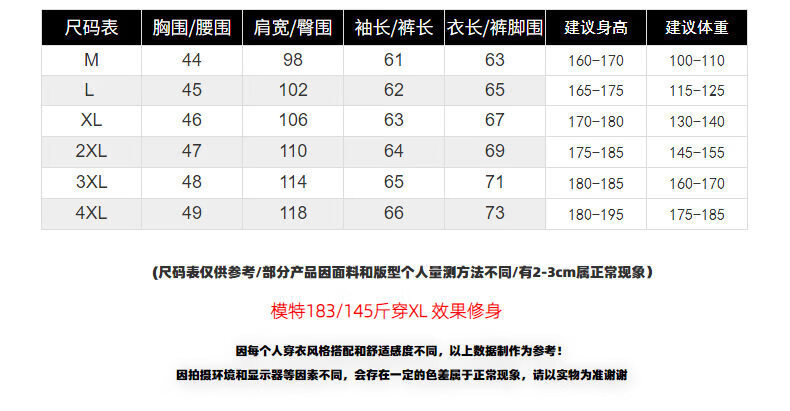 China (cm) 165 / 88-90 170 / 96-98 175 / 108-110 180 / 118-122 185 / 126-130