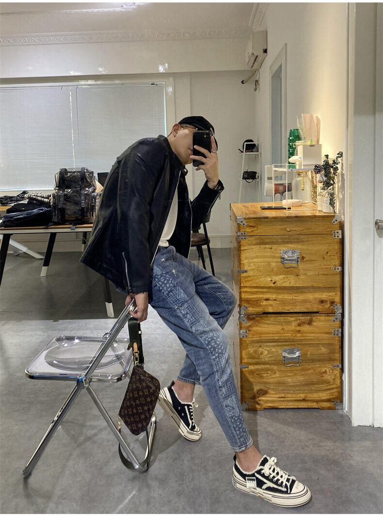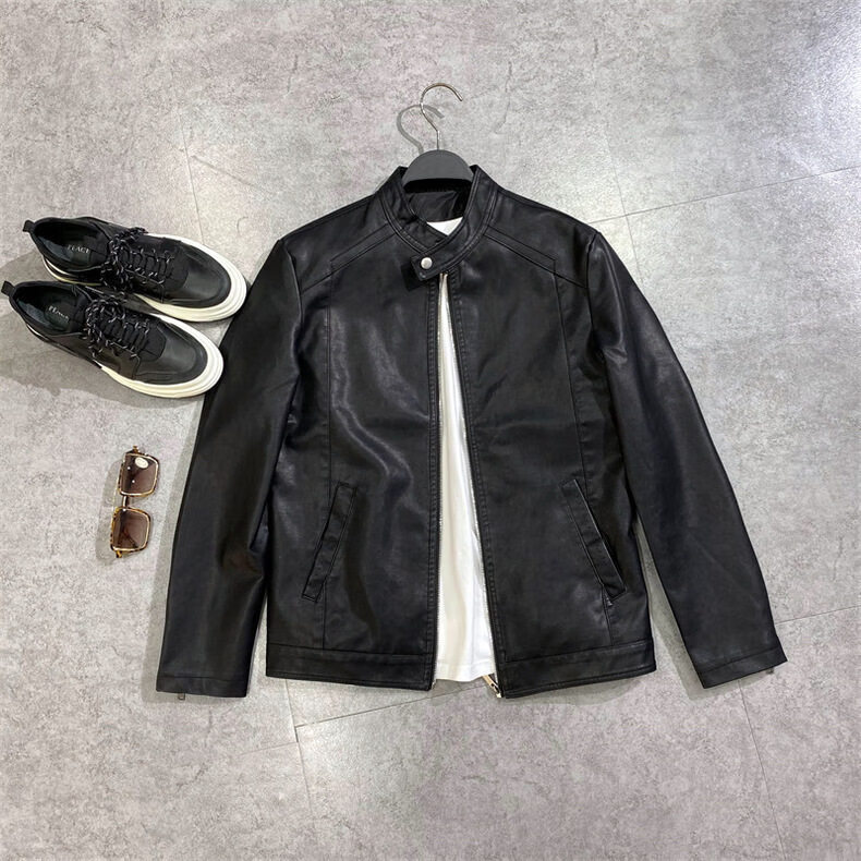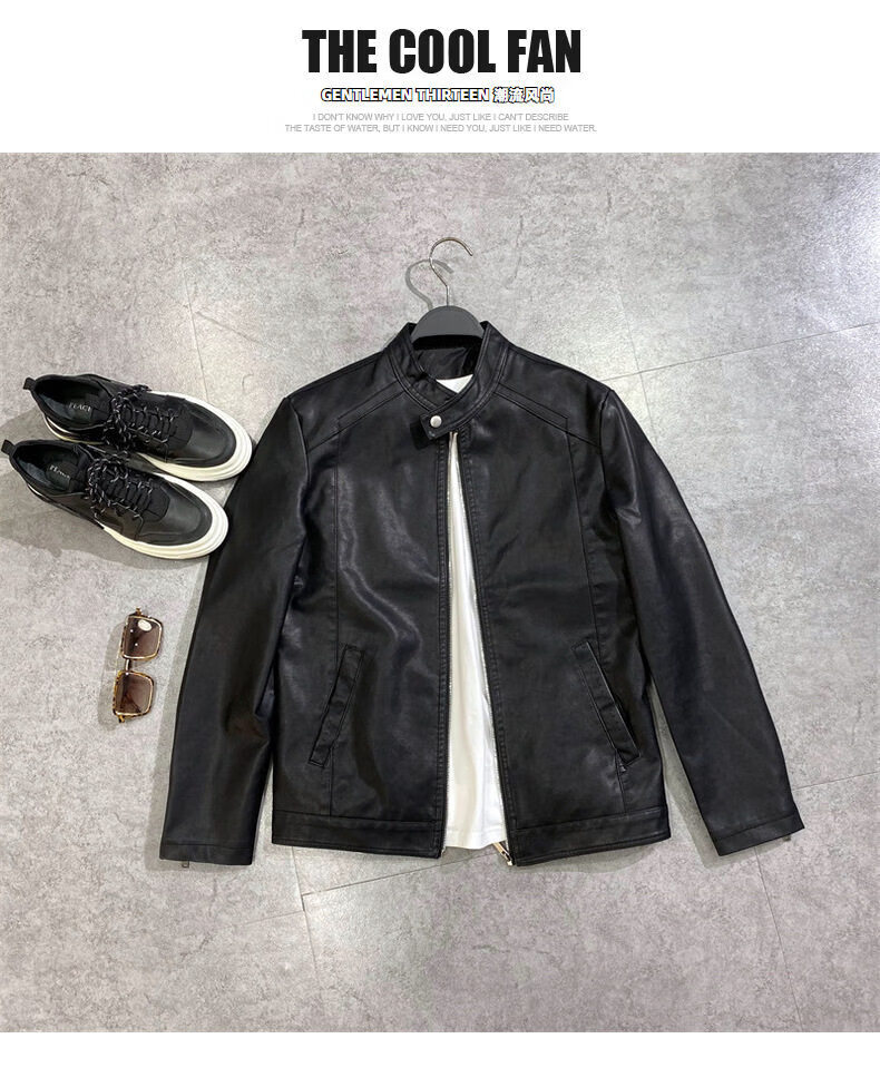 Xiaohongshu selects men's youth spring style leather jackets for men, trendy Korean style trendy motorcycle PU leather clothespins, black - stand-up collar motorcycle PU leather jackets GTPU603 M