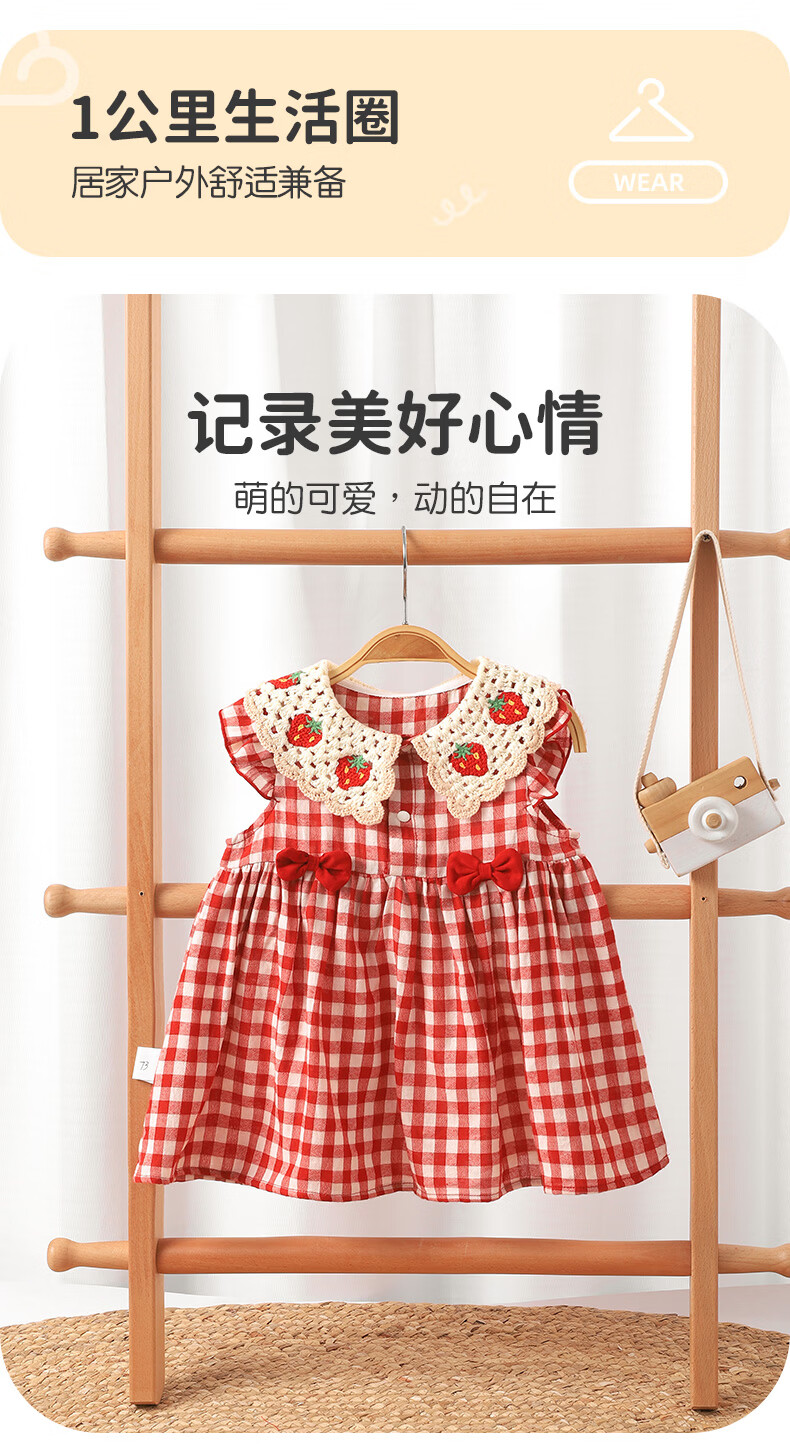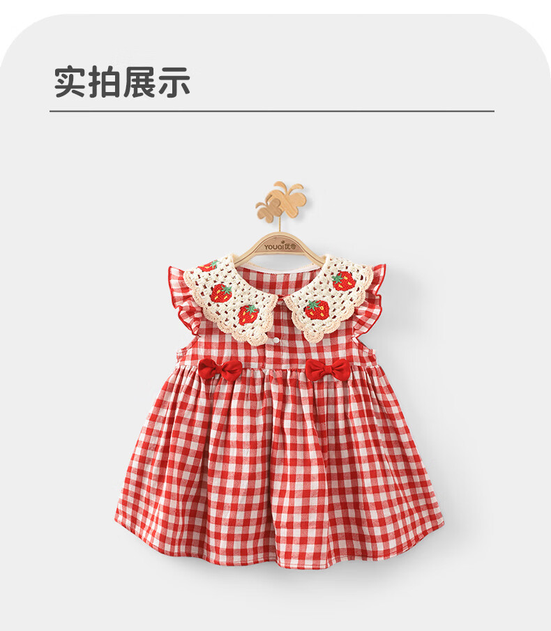Youqi baby summer dress 2026 new children's princess style vest red plaid baby summer dress skirt red 73
