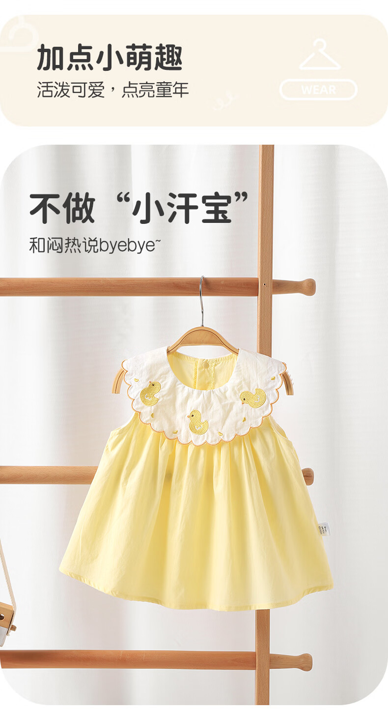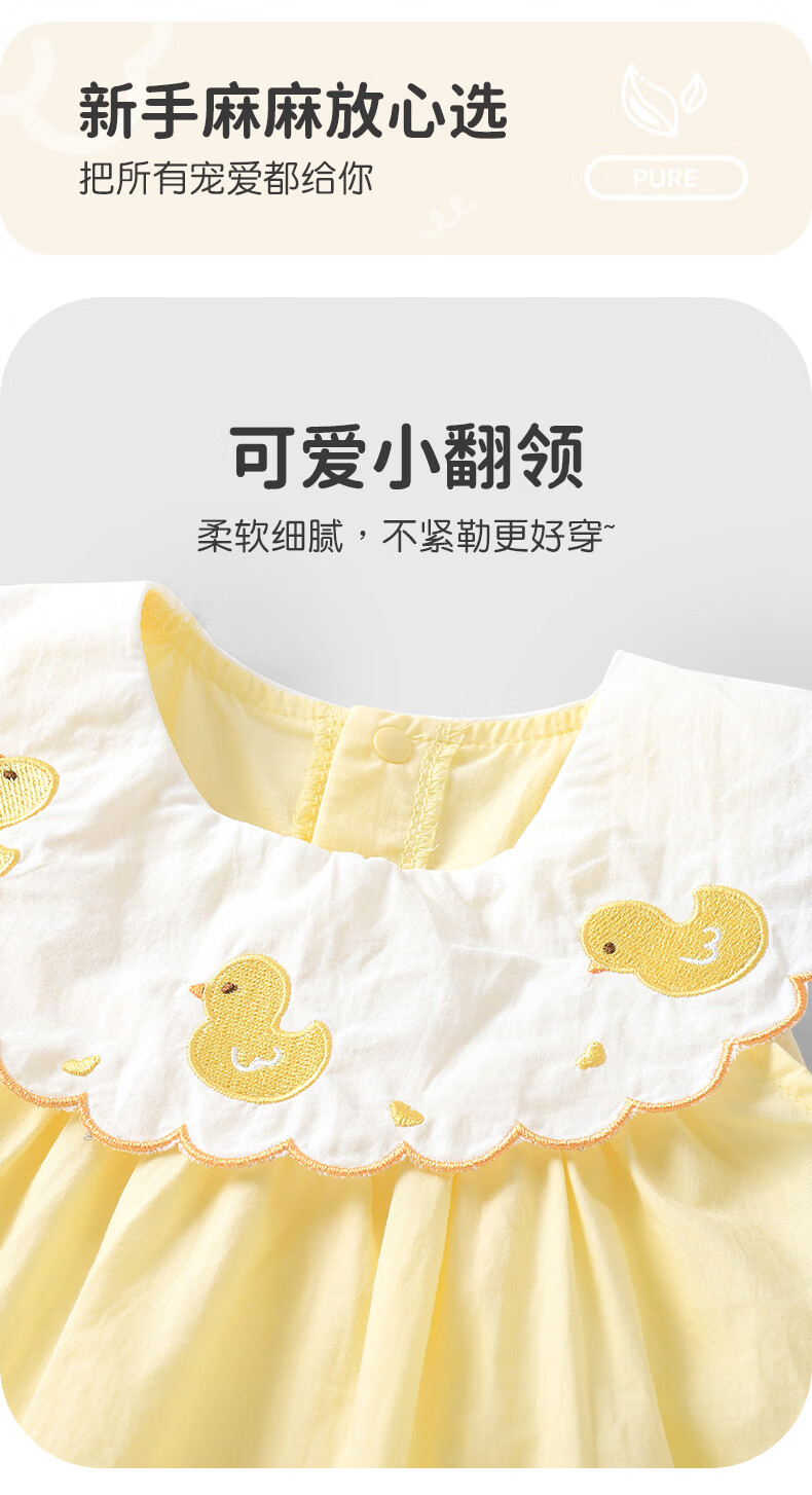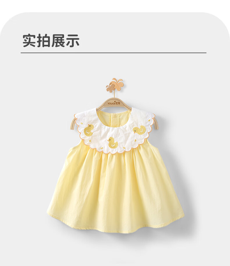 Youqi girls dress 2026 new summer thin section 100-day-old baby girl dress pure cotton beautiful princess dress yellow 73