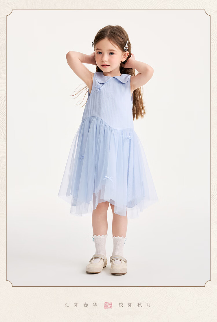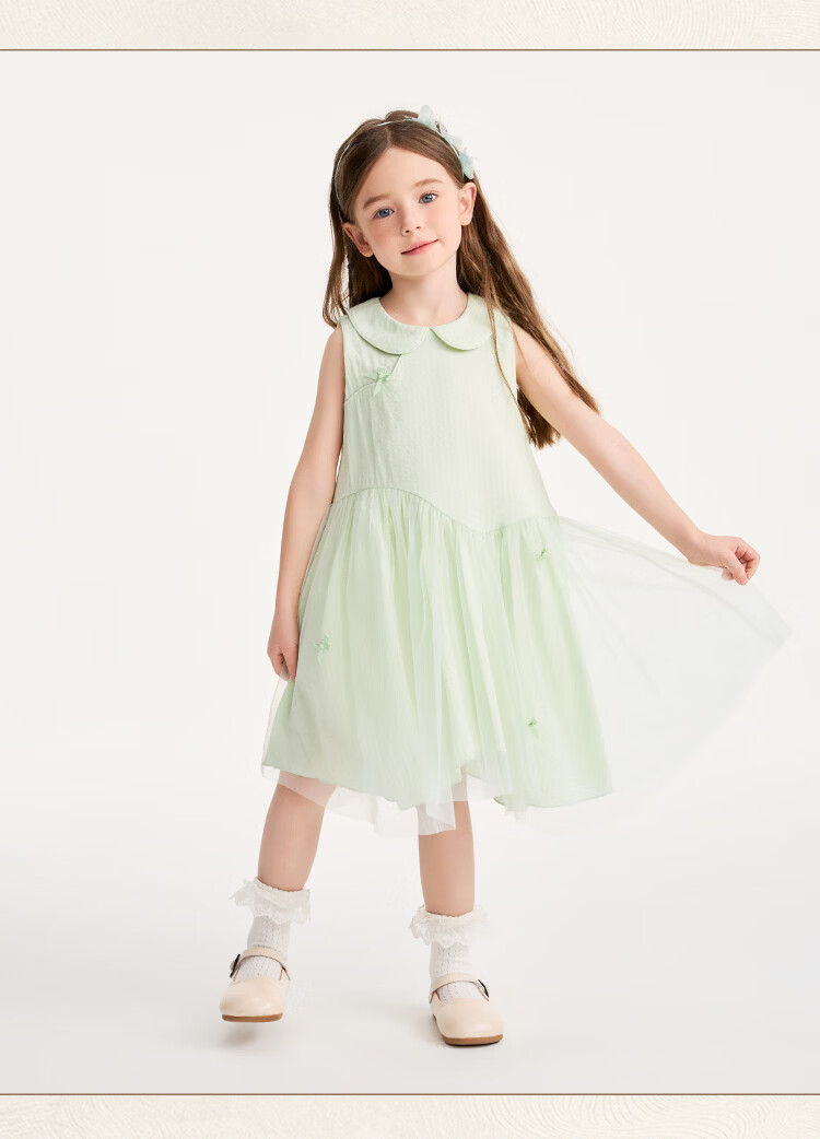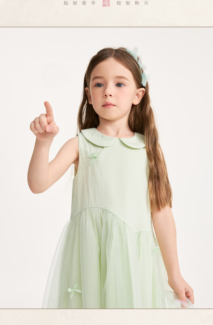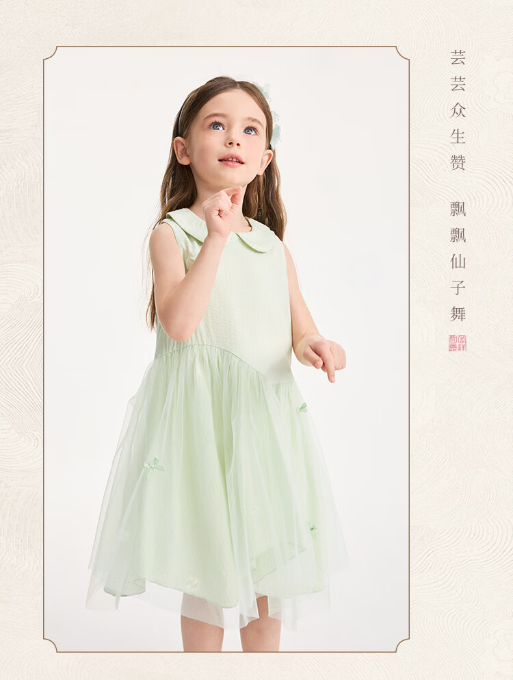 YEEHOO children's skirt girls summer dress new national style gauze skirt breathable skin-friendly cotton lining girl princess skirt new floating ripples - green 90