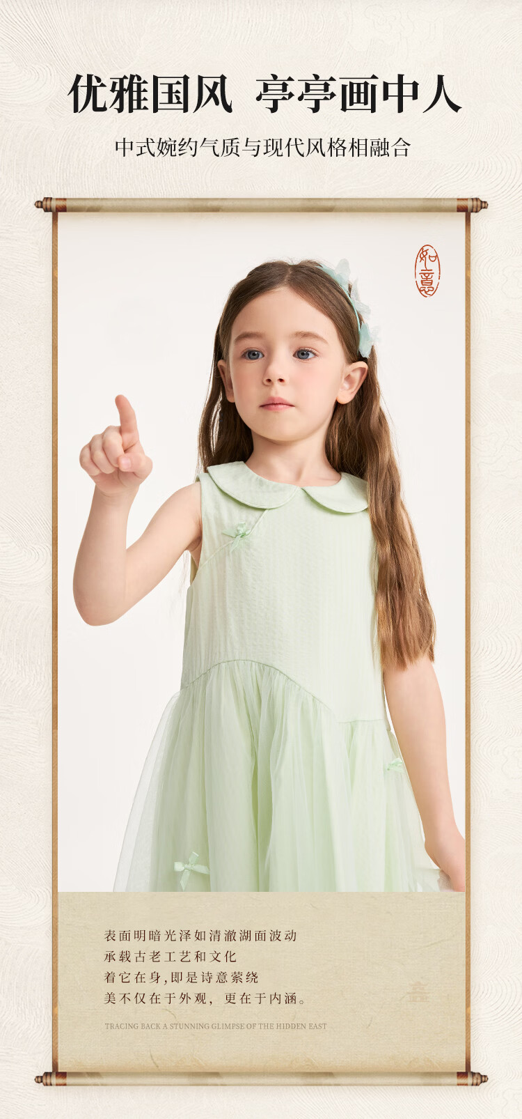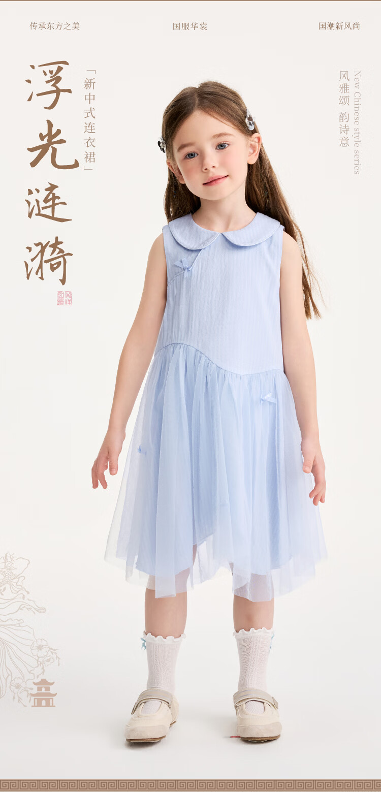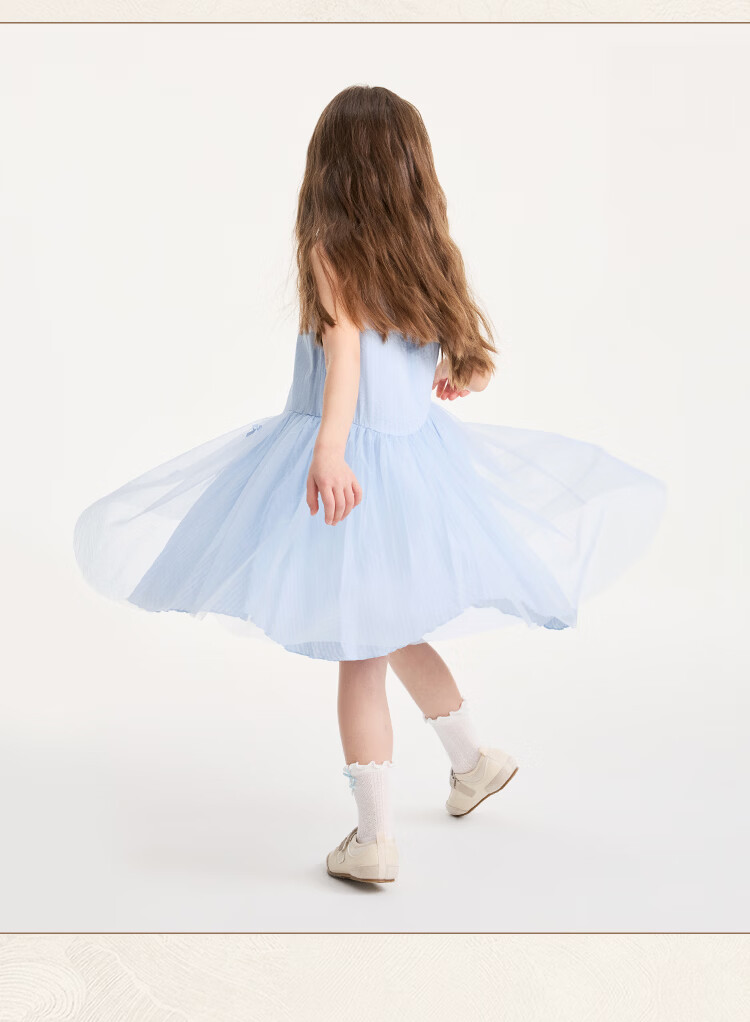 YEEHOO children's skirt girls summer dress new national style gauze skirt breathable skin-friendly cotton lining girl princess skirt new floating ripples - green 90