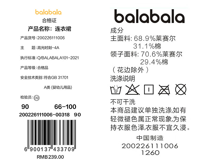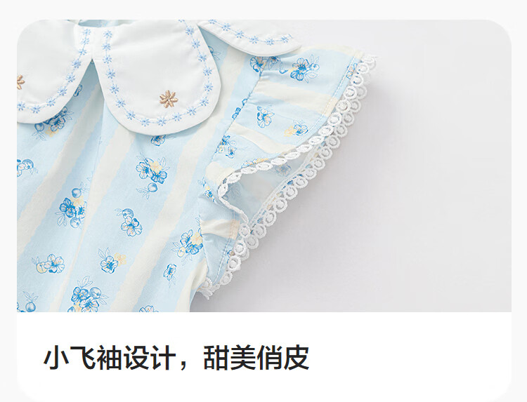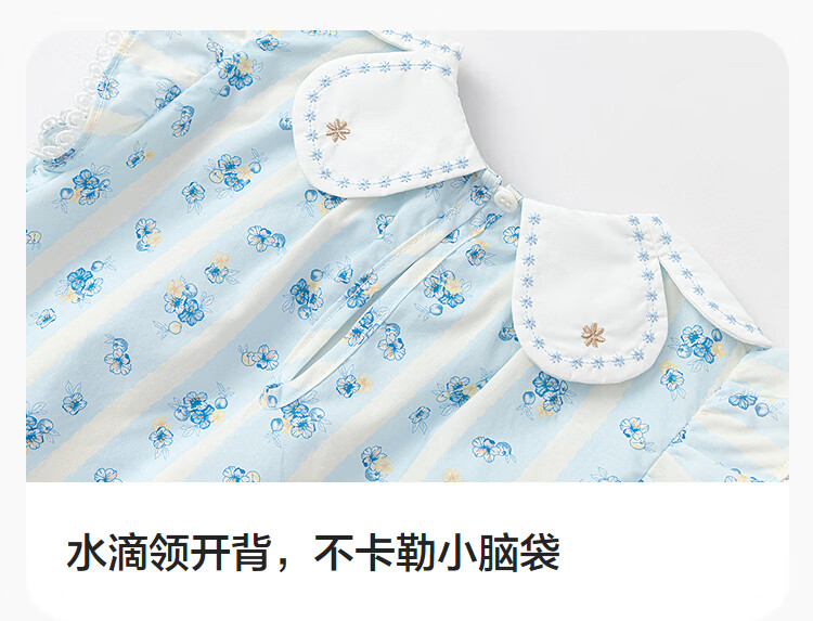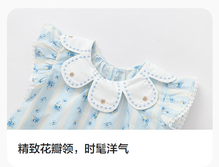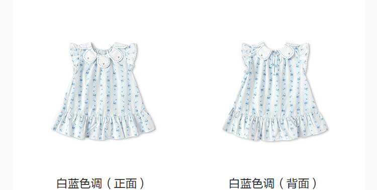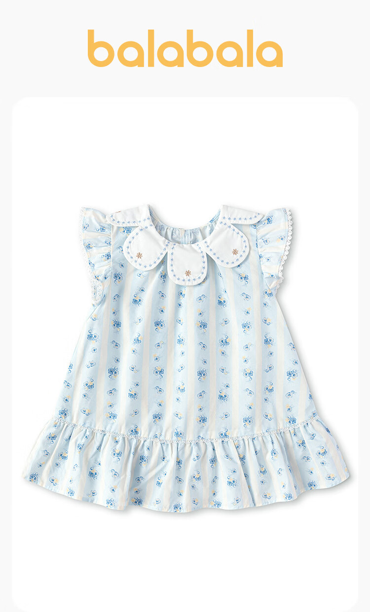 Balabala shopping mall same style Balabala baby dress baby princess dress 2026 new summer dress sweet and fashionable white and blue tone 00318 66