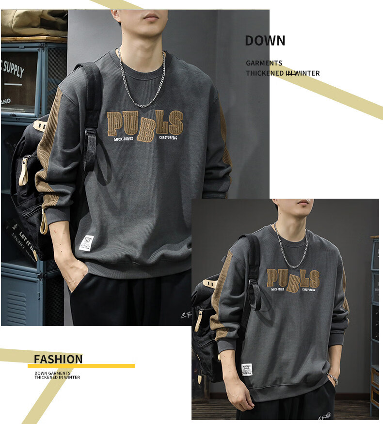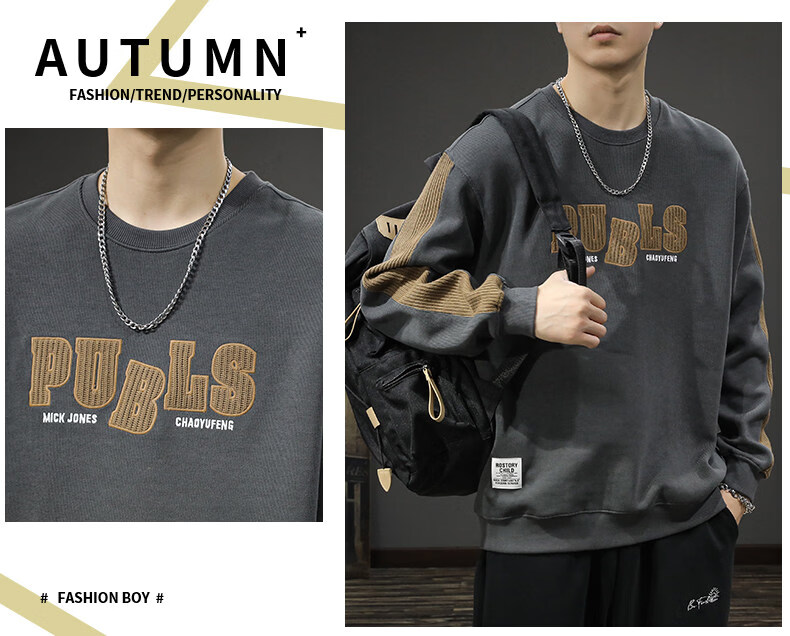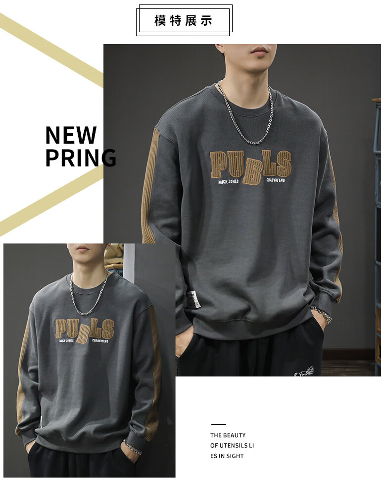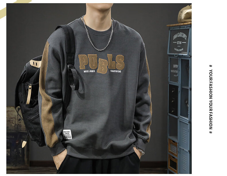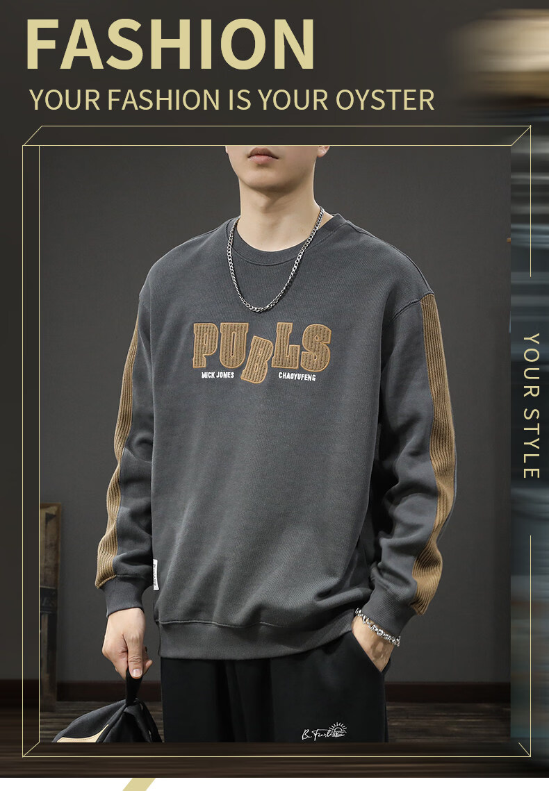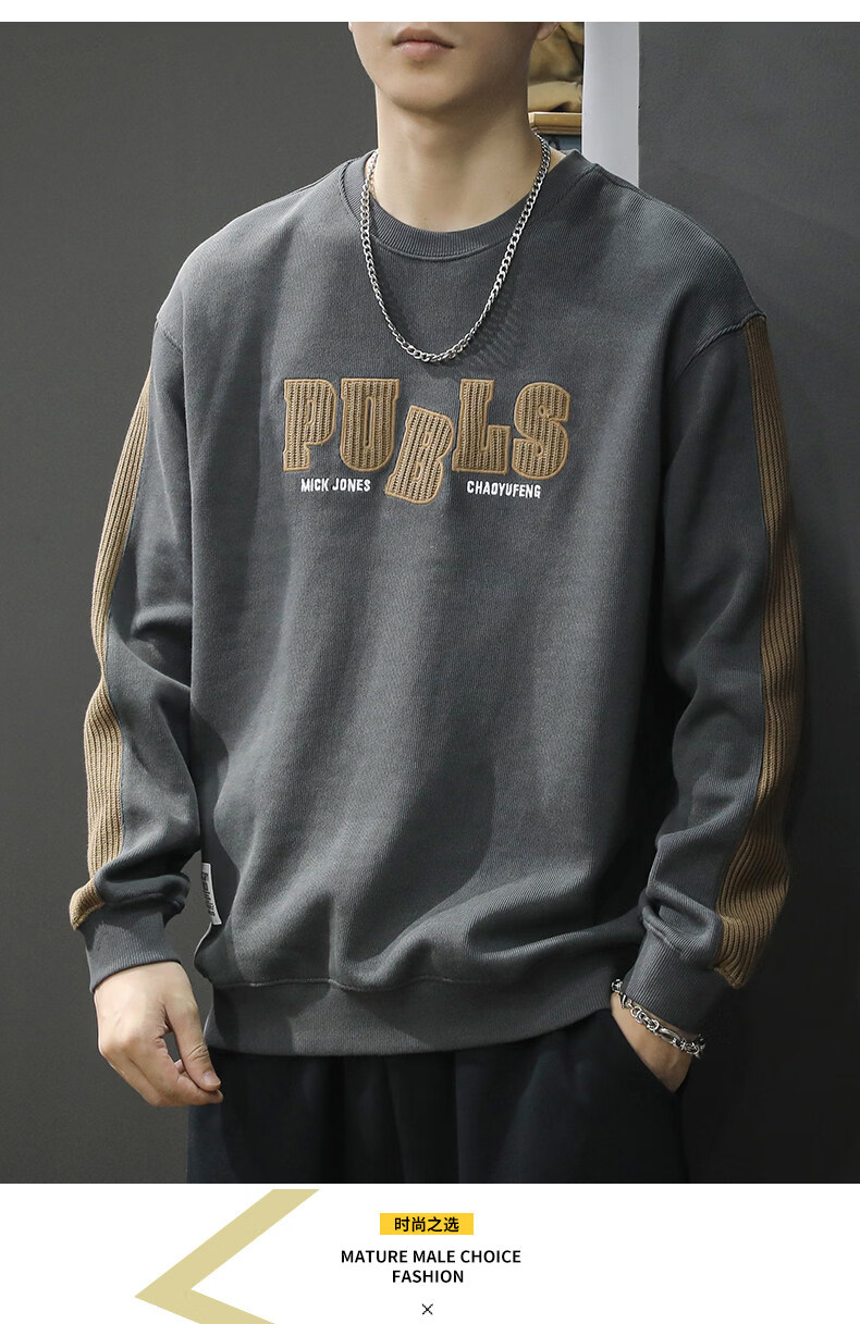 Playboy (PLAYBOY) sweatshirt men's spring new fashion bottoming high-end round neck trendy brand simple long-sleeved tops handsome casual jacket light brown L (about 120-135Jin Jin equals 0.5kg can be worn)