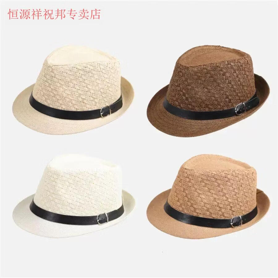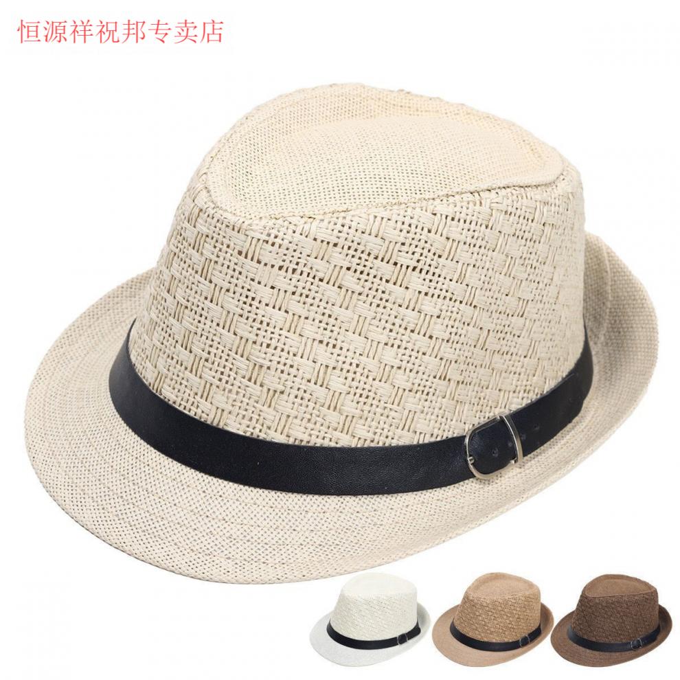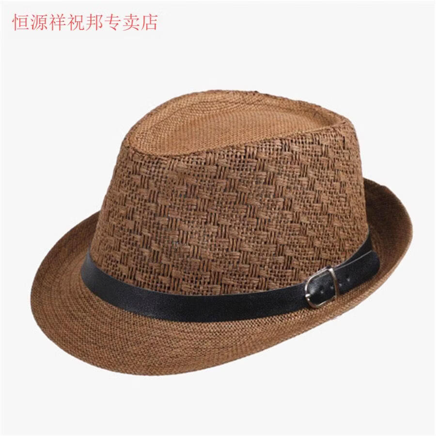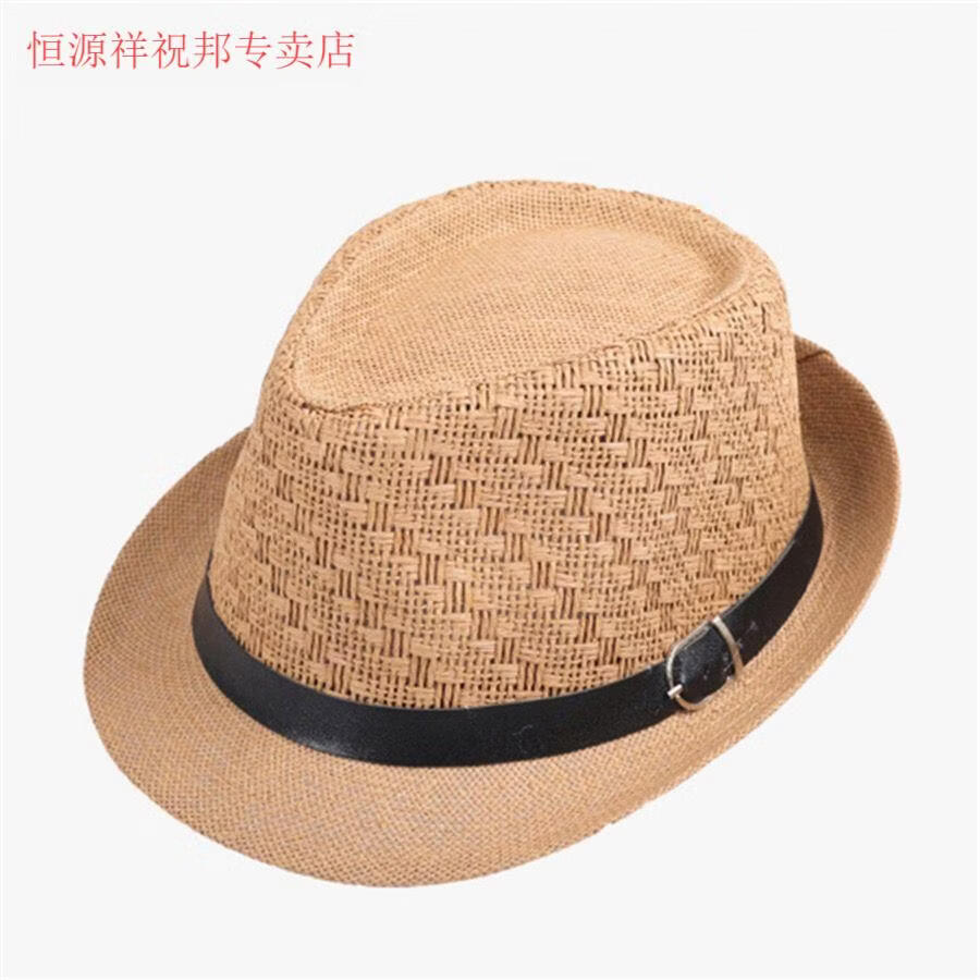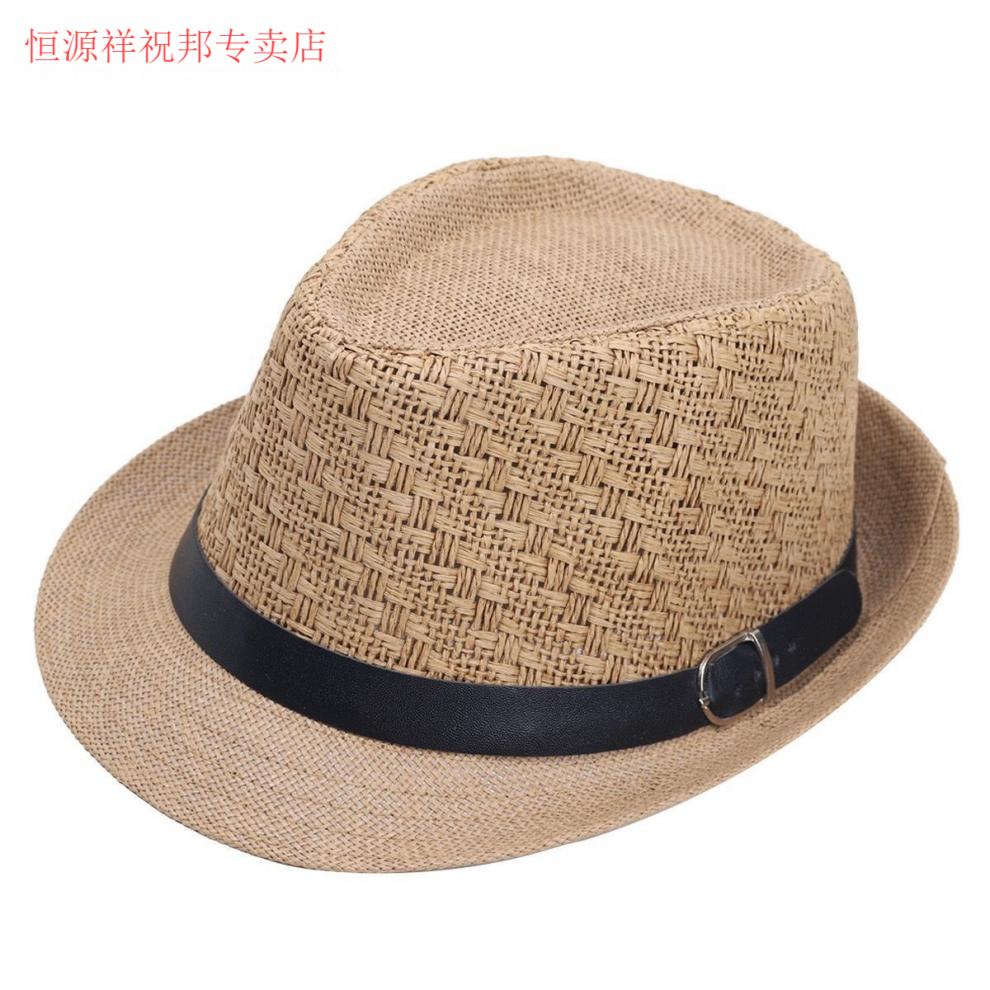 Hengyuanxiang Sombrero para hombre Sombrero para el sol Verano Nuevo Protector solar al aire libre Jazz Sombrero de moda informal Sombrero de paja de lino Caqui para hombre Adulto Talla única Adecuado para circunferencia de la cabeza 55-58 cm