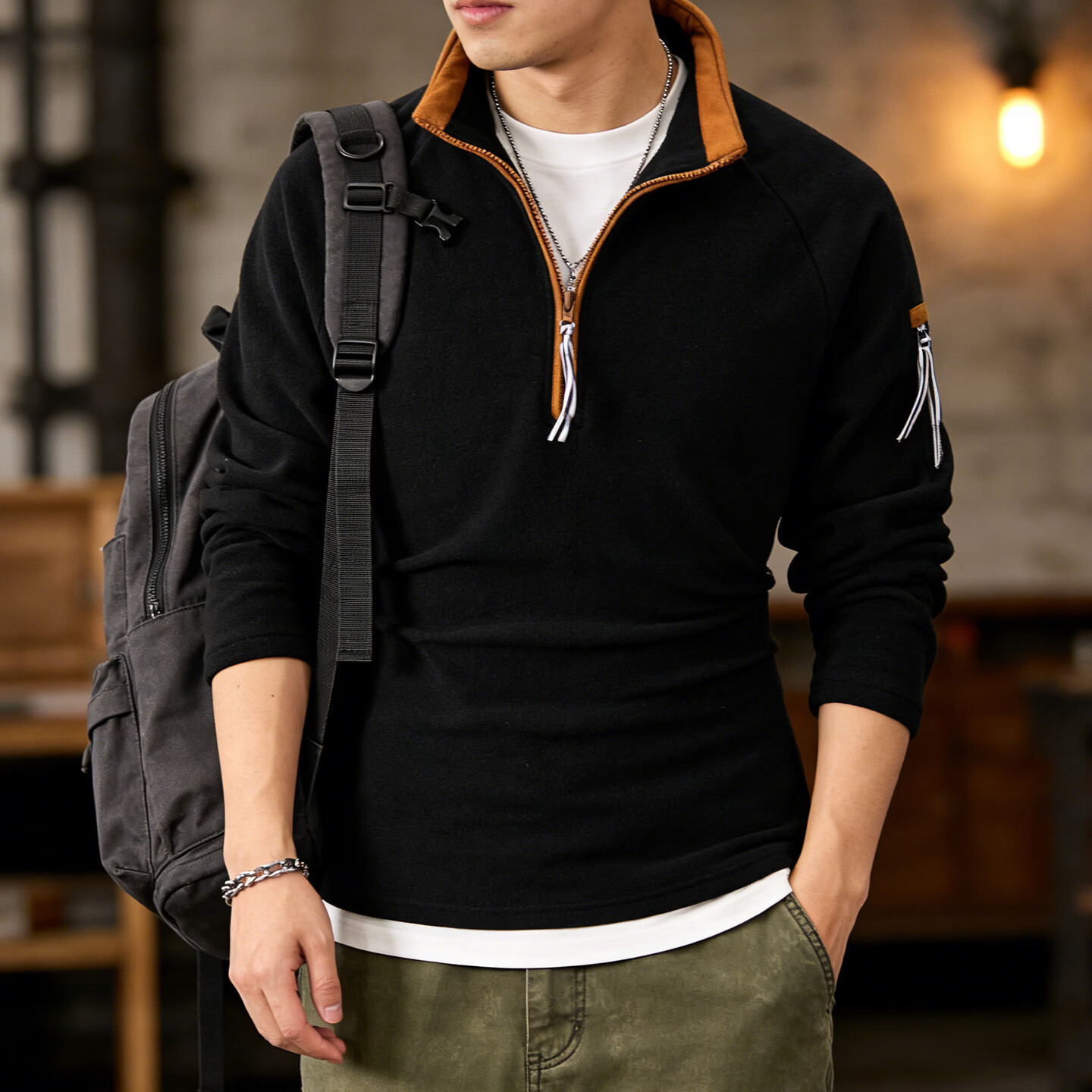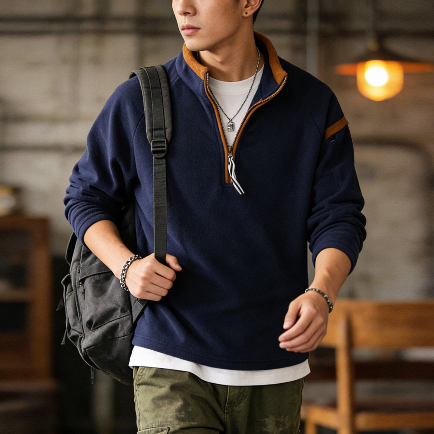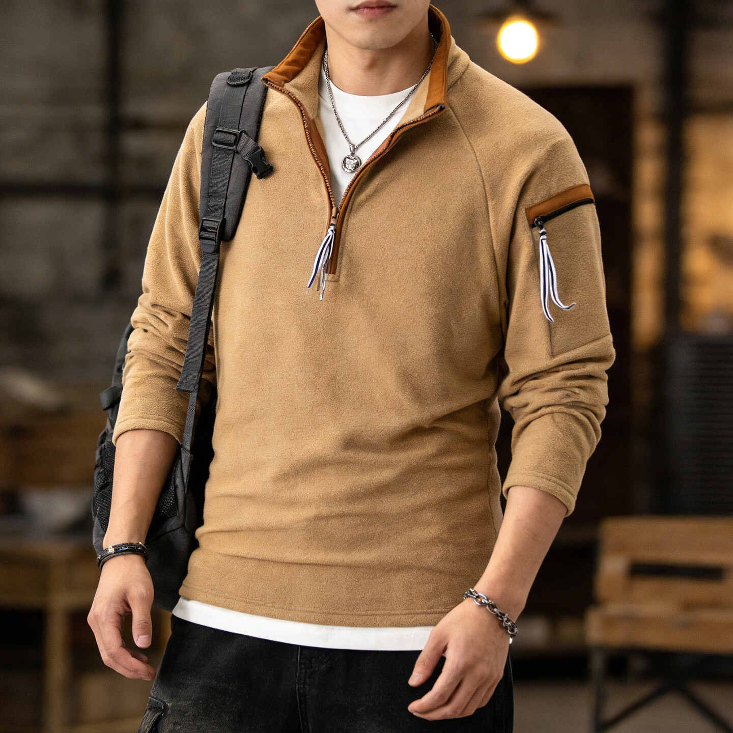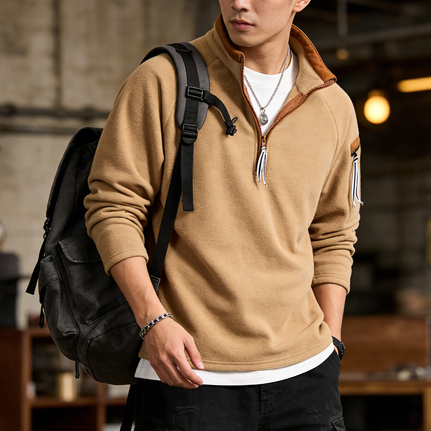 花花公子半拉链立领卫衣男2026春季新款宽松大码潮流加绒保暖外套 卡其色 S 110-140斤