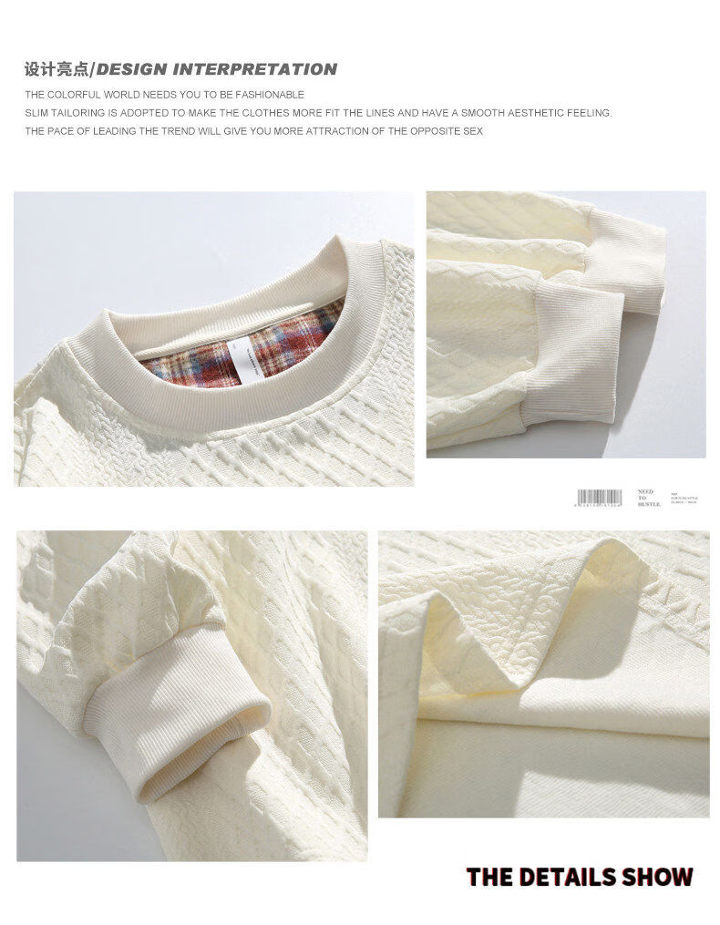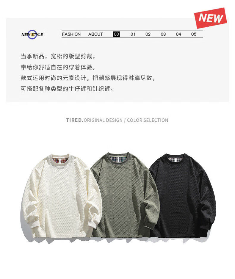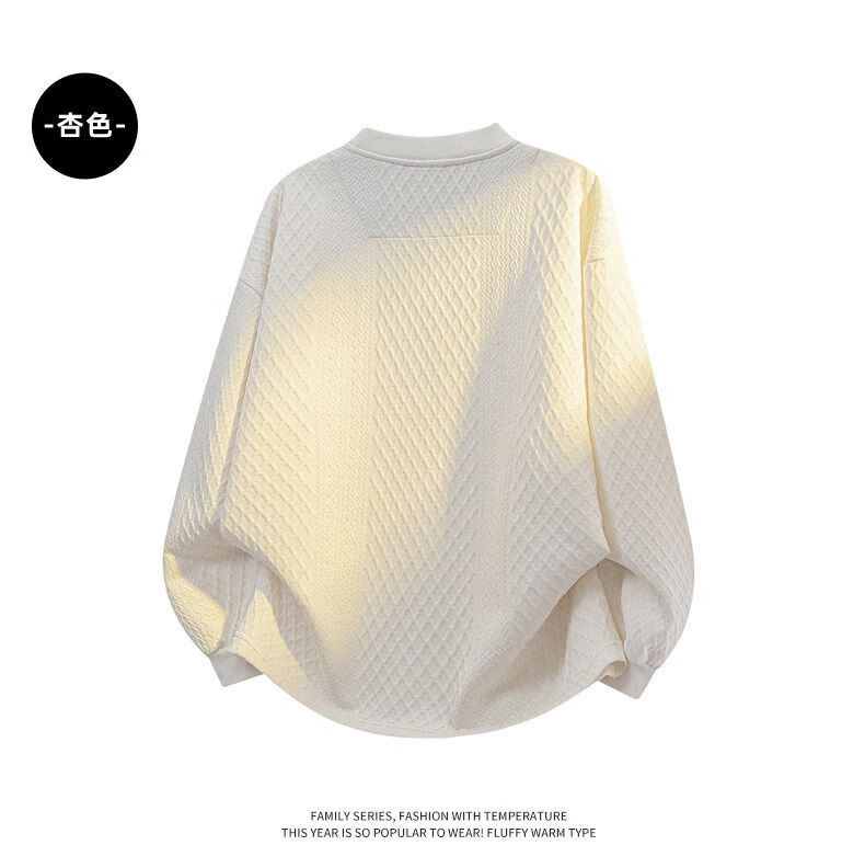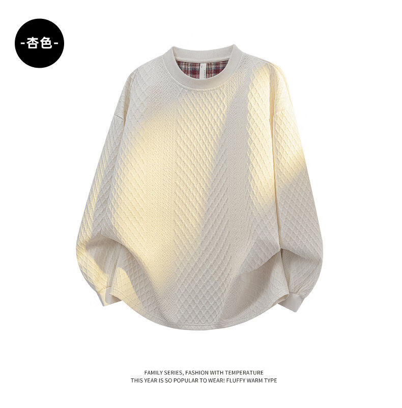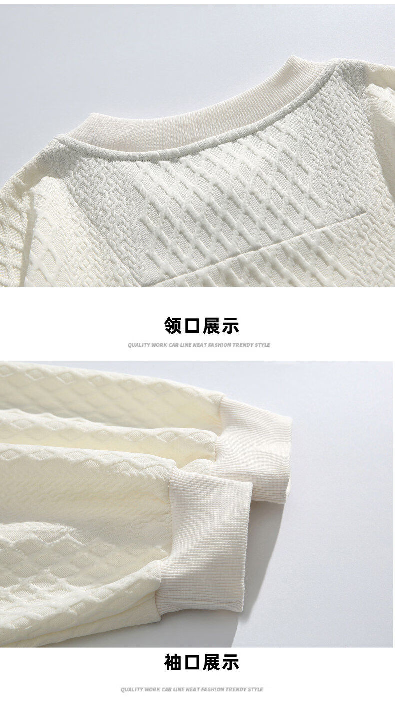 花花公子(PLAYBOY)2026新款美式穿搭圆领卫衣提花设计感休闲套头春季男士内搭 杏色 M 建议100-120斤