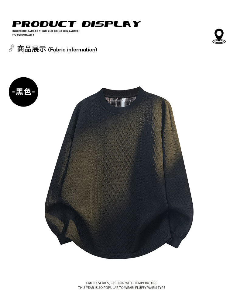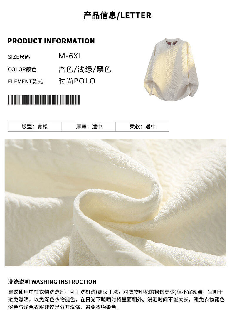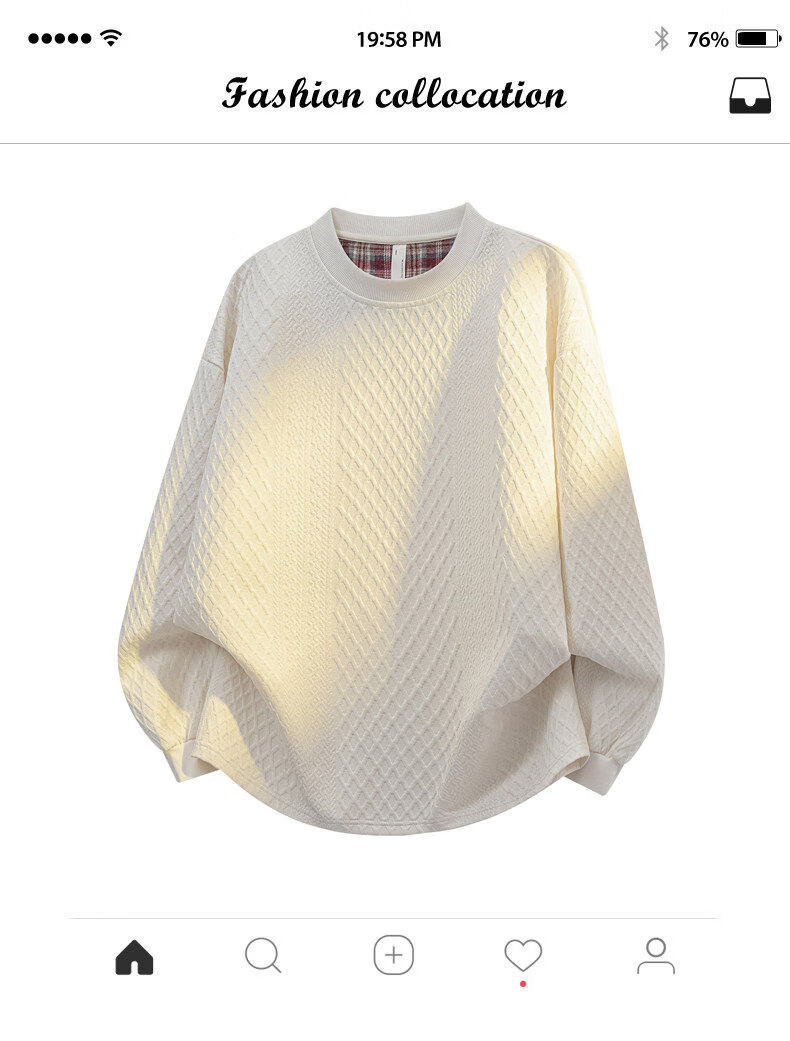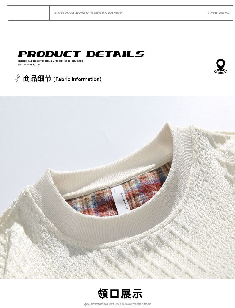 花花公子(PLAYBOY)2026新款美式穿搭圆领卫衣提花设计感休闲套头春季男士内搭 杏色 M 建议100-120斤