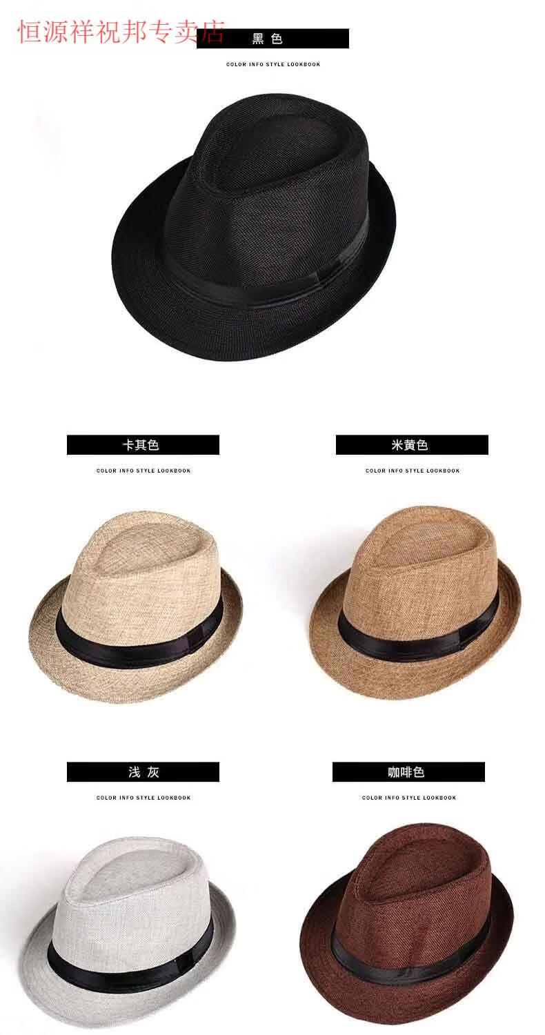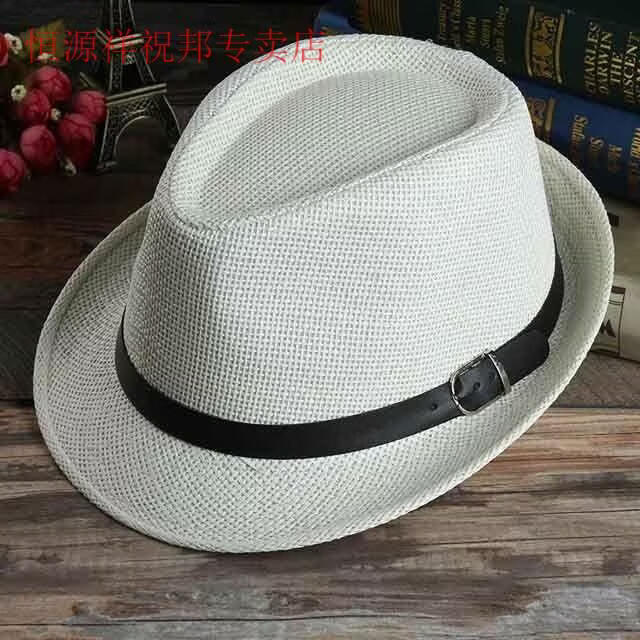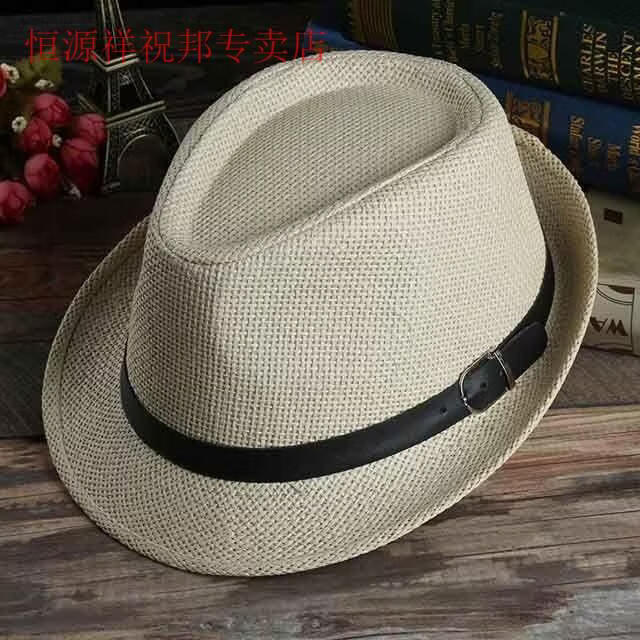 恒源祥春夏男士防晒帽爵士礼帽休闲礼帽沙滩帽防晒草帽遮阳帽男男士草帽 皮带-米色 大人款