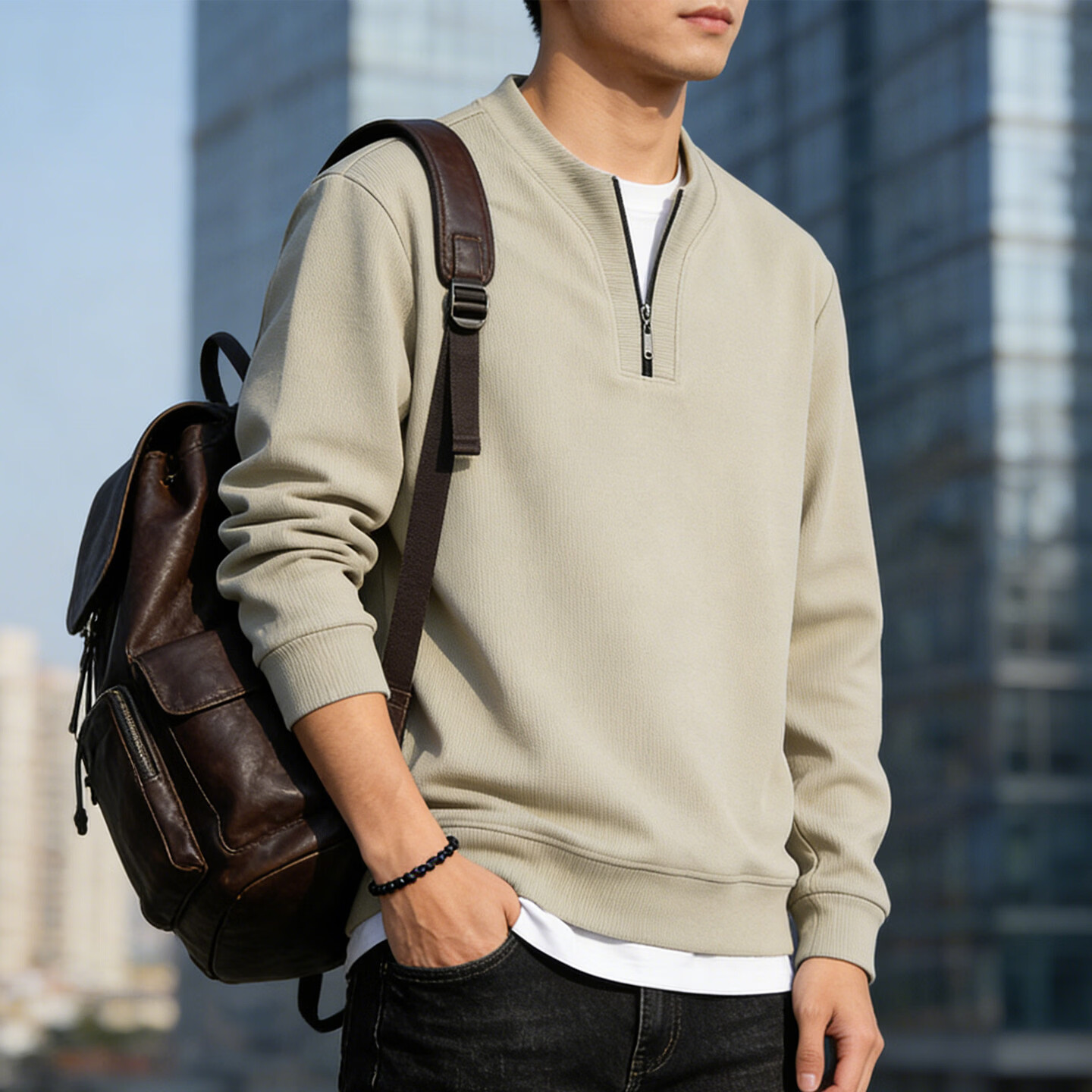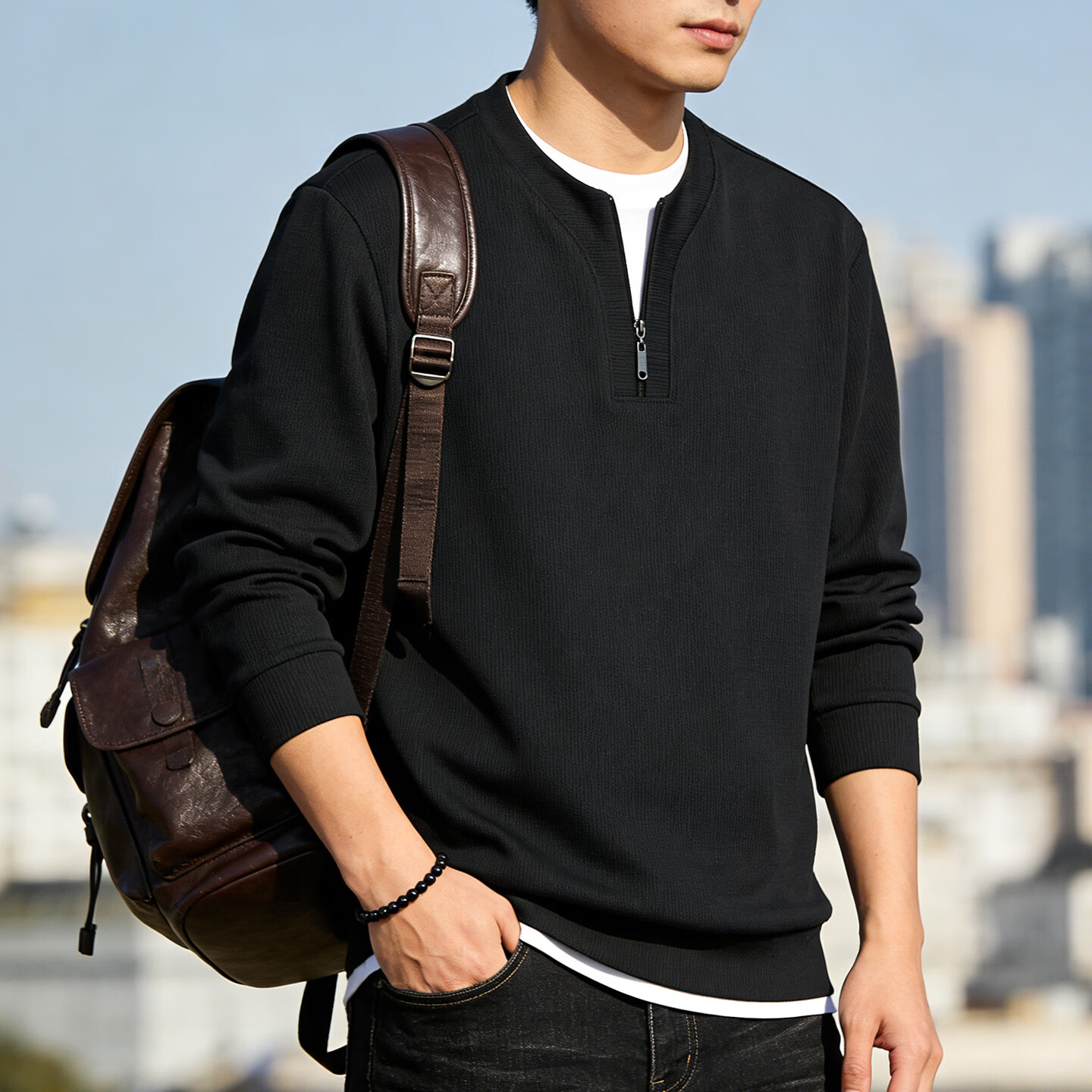 JEEP SPIRIT half-zip sweatshirt men's stand-up collar loose long-sleeved T-shirt men's top trendy velvet warm bottoming shirt Mituo M 90-115 Jin Jin is equal to 0.5 kg