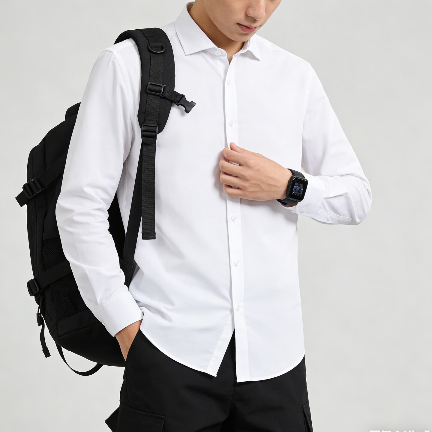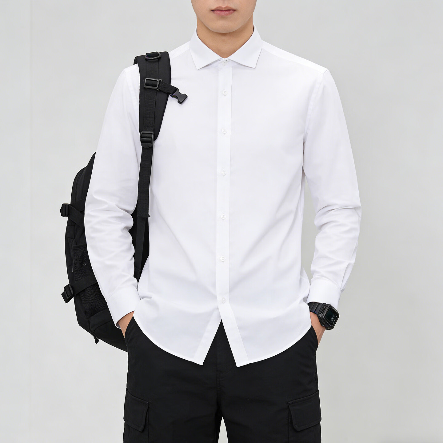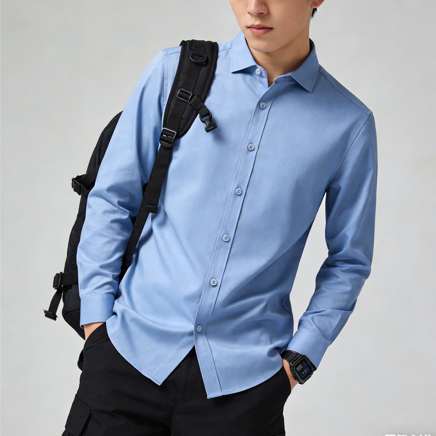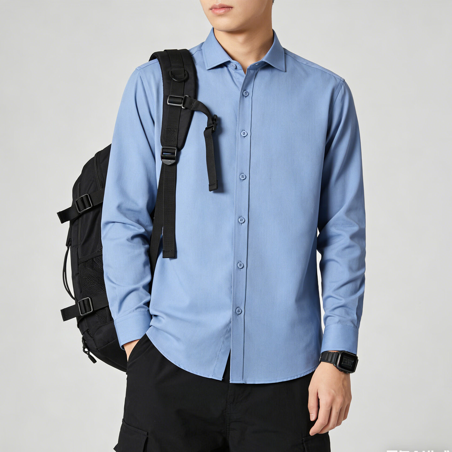 Playboy (PLAYBOY) camisa de manga larga para hombre, color sólido, sin planchar, informal, de negocios, sin planchar, ropa de trabajo, ropa de trabajo para hombre, azul M 90-115