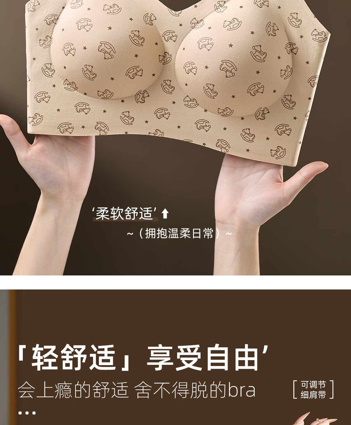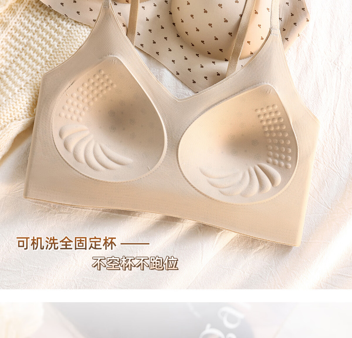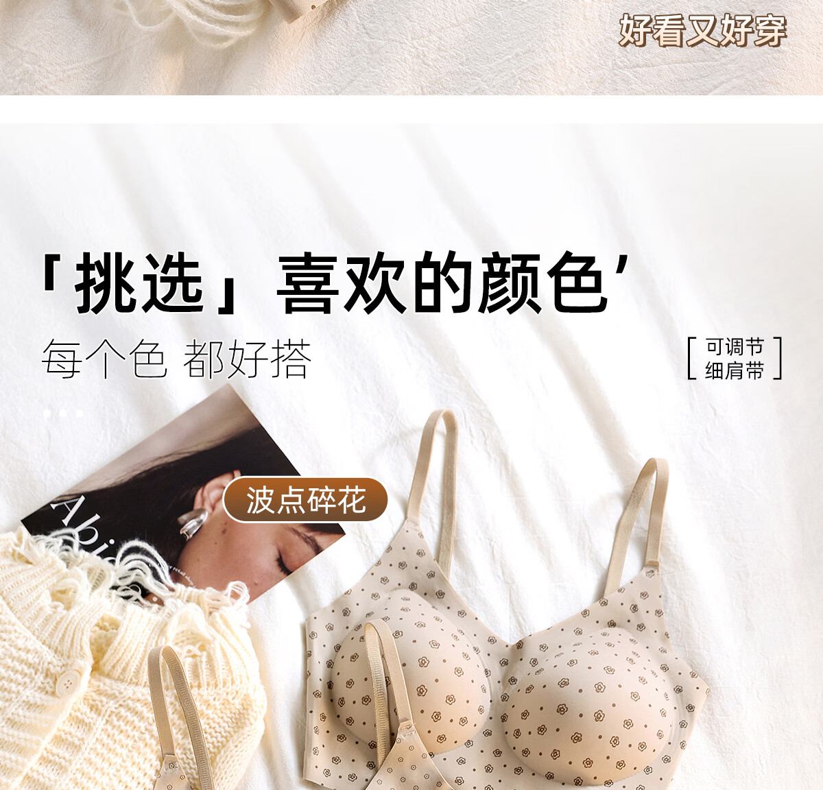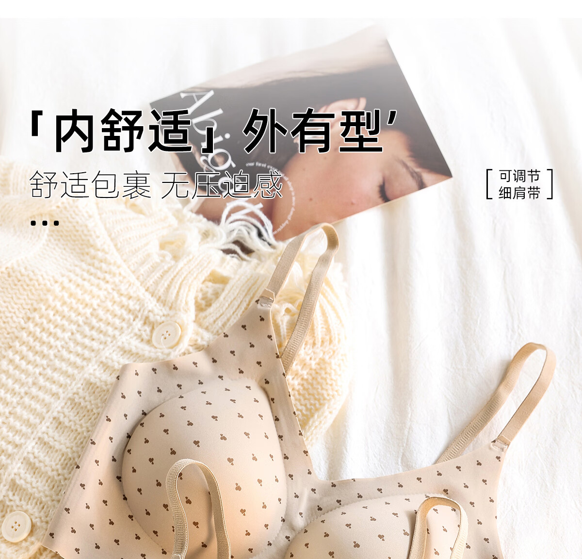 Tingmei liquid foundation spaghetti strap underwear women's invisible seamless fixed cup no rims beautiful back fashionable printed bra 2 pieces polka dot floral + milk apricot floral M 80-100Jin Jin equals 0.5 kg