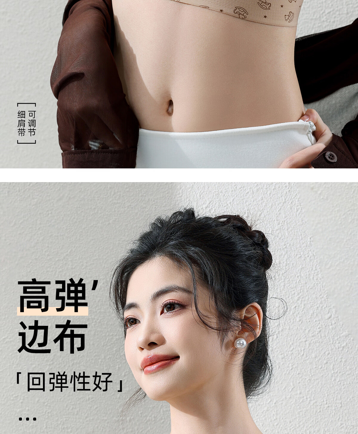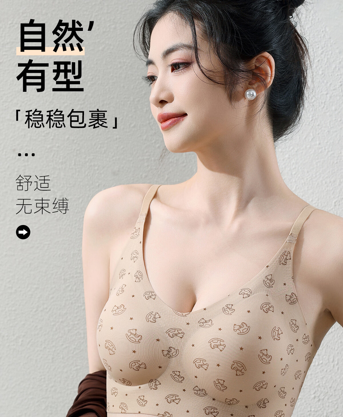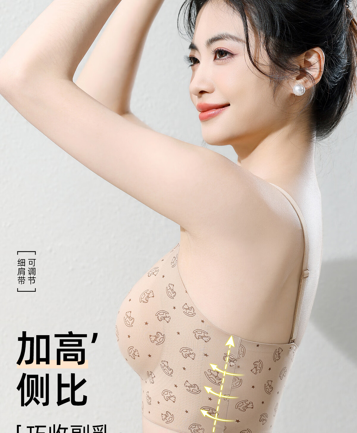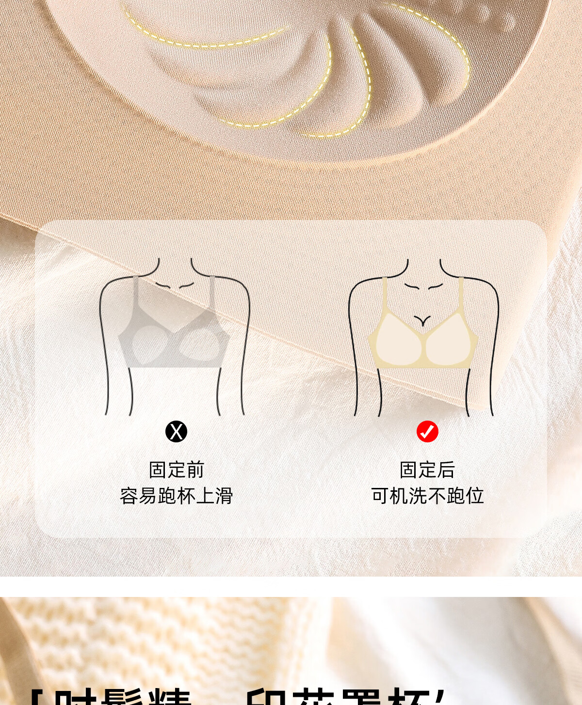 Tingmei liquid foundation spaghetti strap underwear women's invisible seamless fixed cup no rims beautiful back fashionable printed bra 2 pieces polka dot floral + milk apricot floral M 80-100Jin Jin equals 0.5 kg