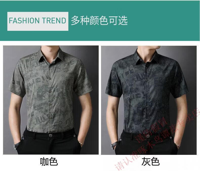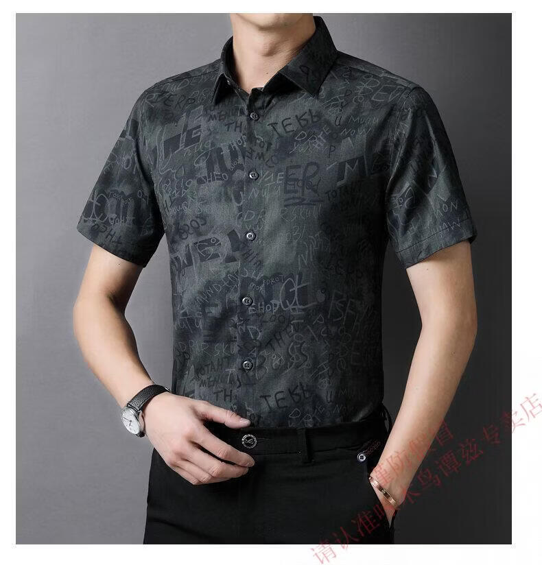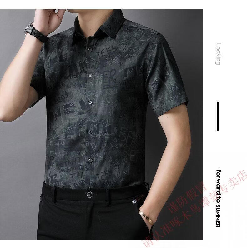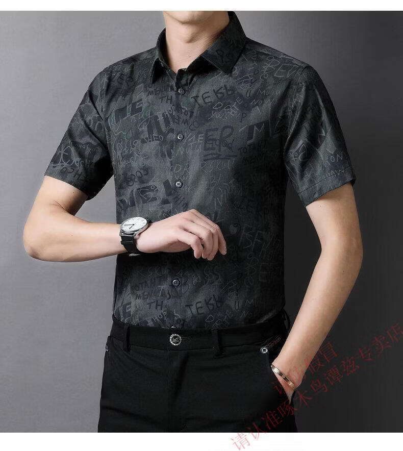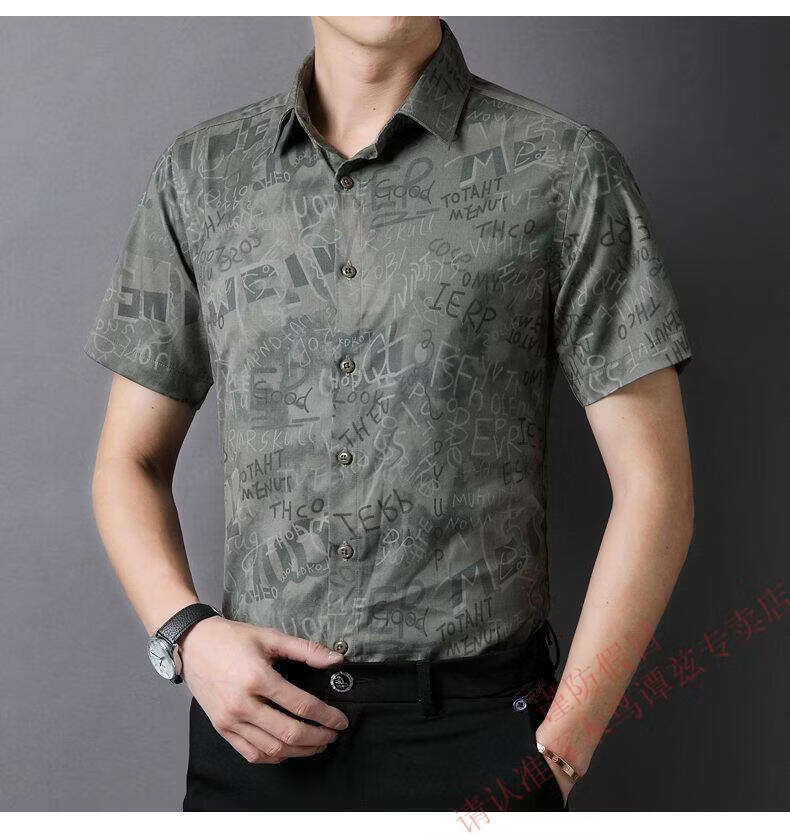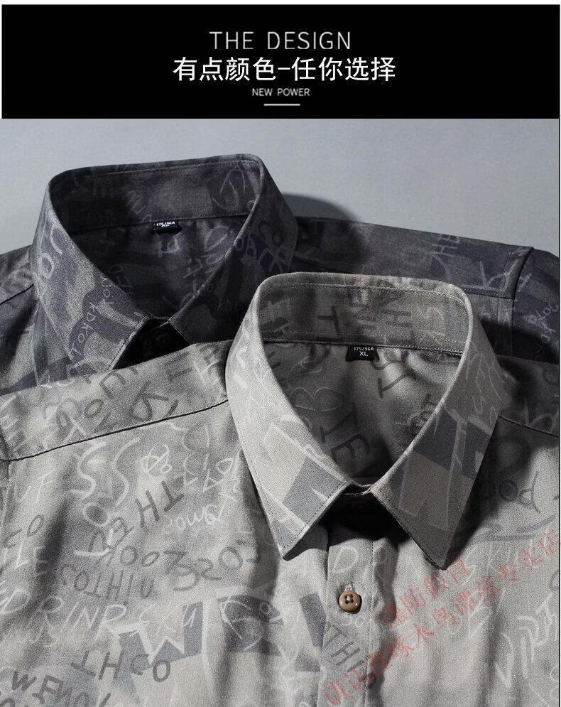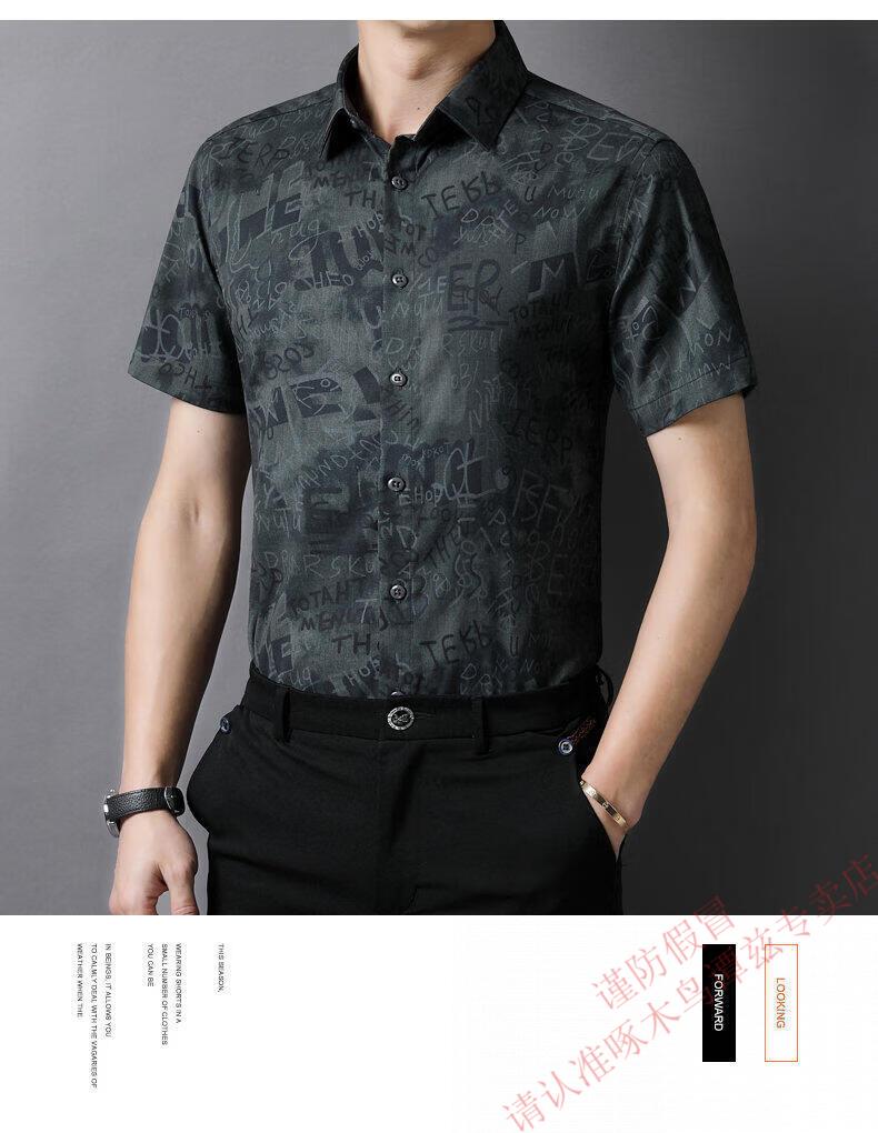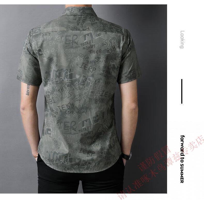 Woodpecker (TUCANO) Trendy Shirt Men's Summer Thin Lapel Gradient Letter Graffiti Decoration Breathable Skin Friendly Daily Versatile Top Brown L