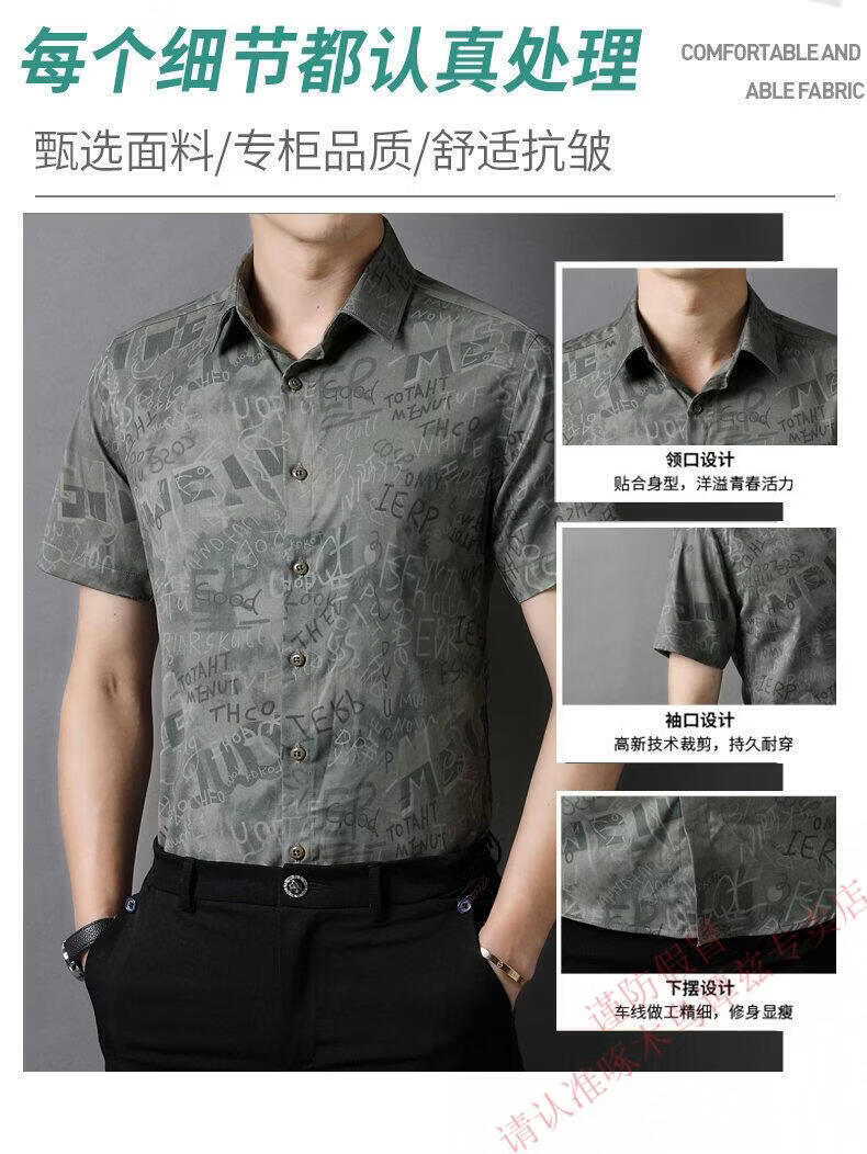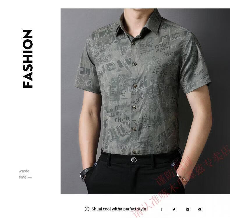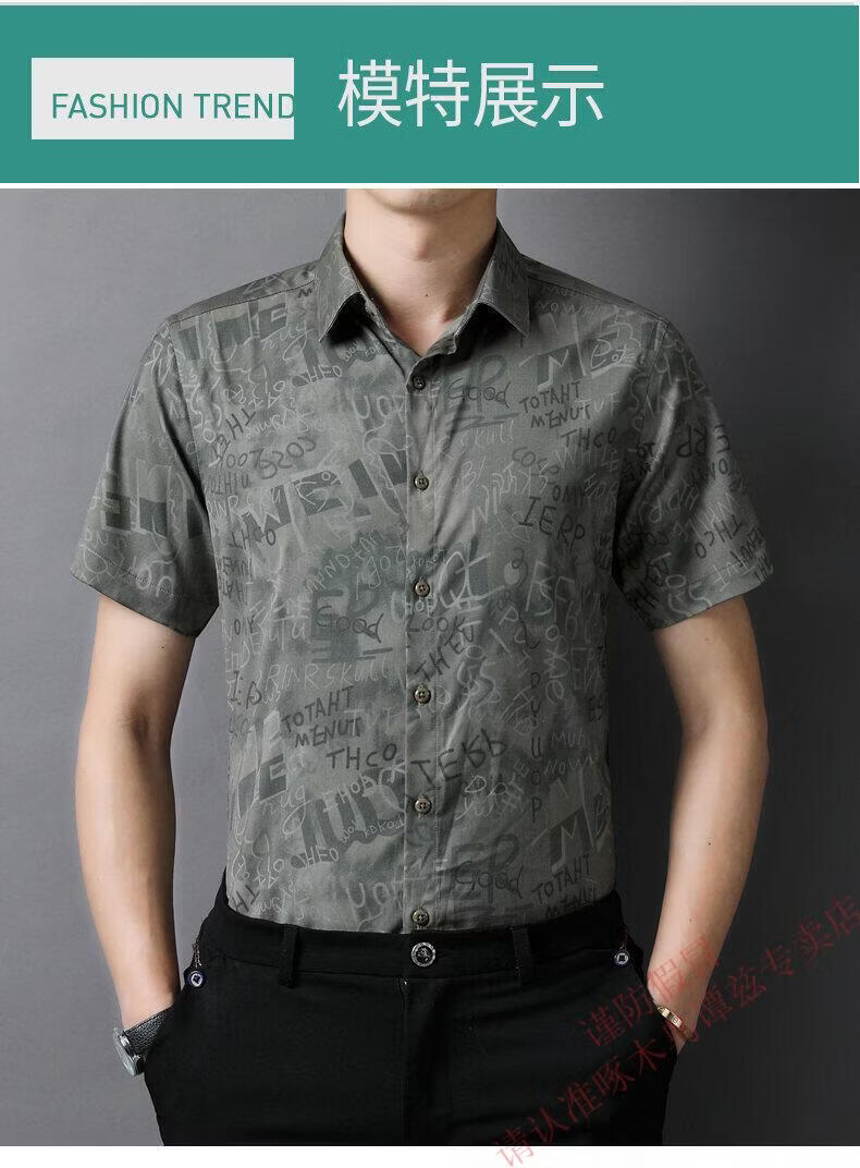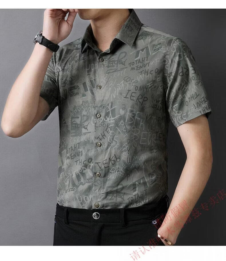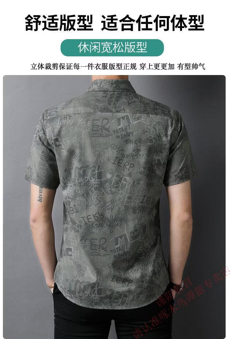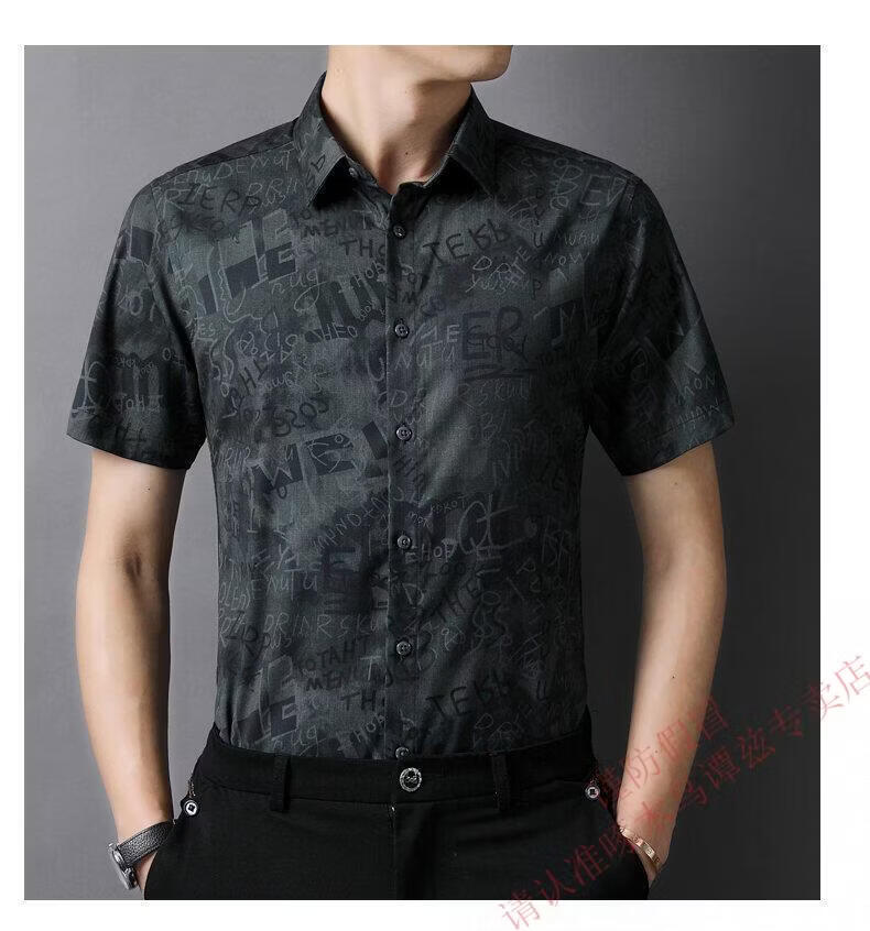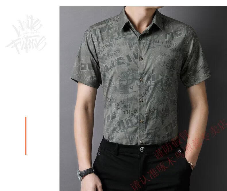 Woodpecker (TUCANO) Trendy Shirt Men's Summer Thin Lapel Gradient Letter Graffiti Decoration Breathable Skin Friendly Daily Versatile Top Brown L