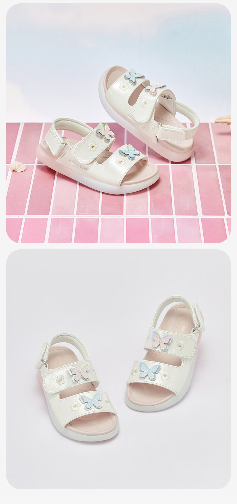 DAVE&BELLA 2026 Sommer, neuer Stil, für Babys, Mädchen, lässiger Stil, Sandalen, Mädchen, süße Kleinkinderschuhe, atmungsaktive Outdoor-Kinderschuhe für Kinder, Perlglanzfarbe, fertig, Lager 22 (Schuhinnenlänge 14,5 cm)