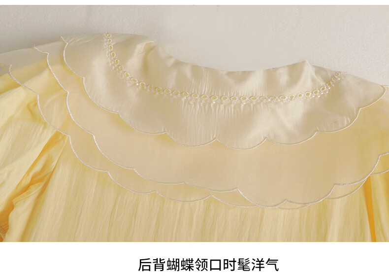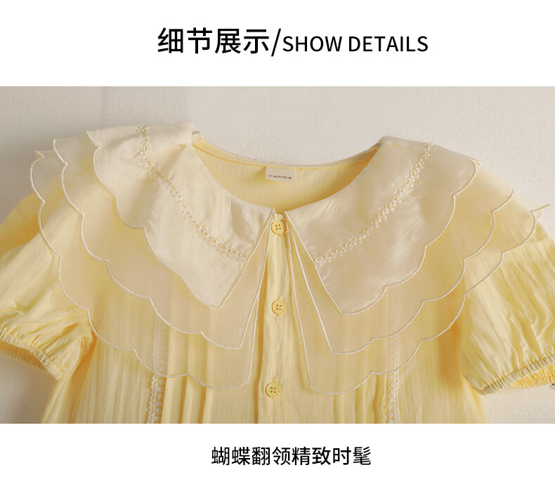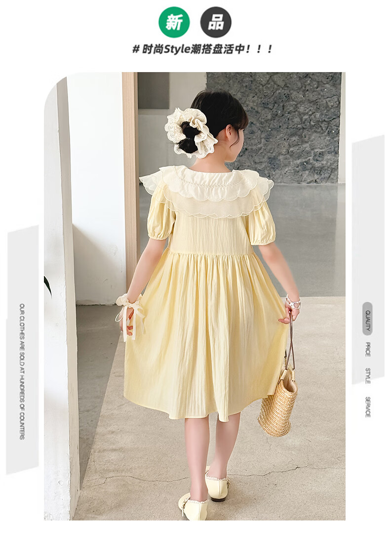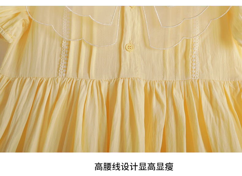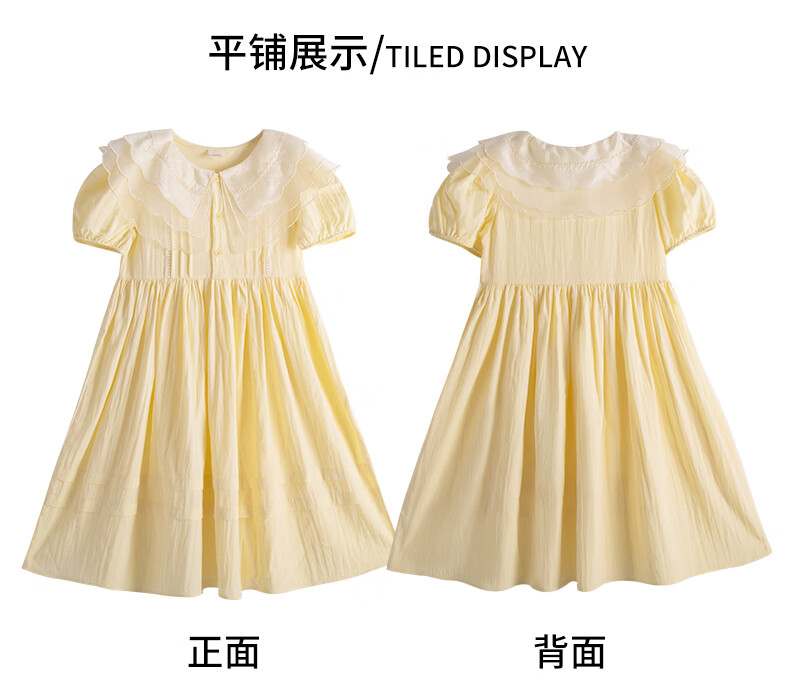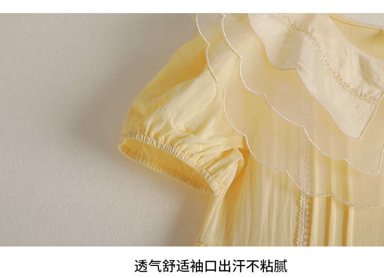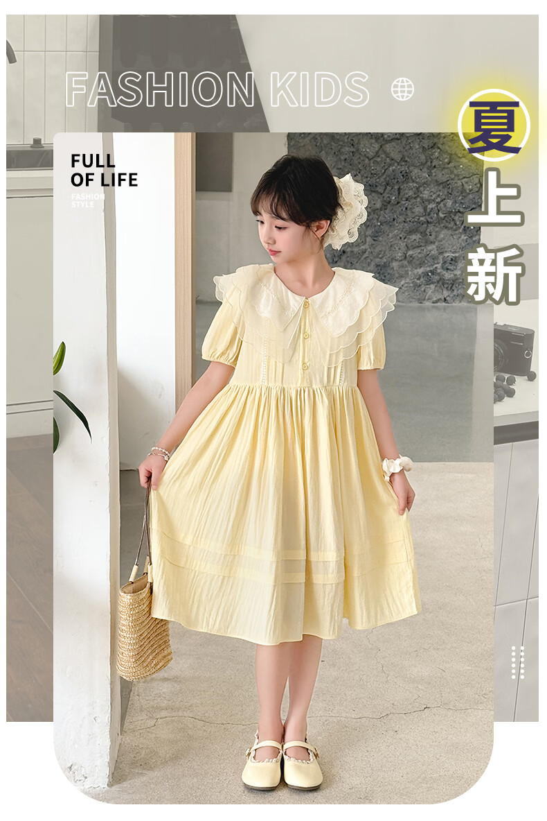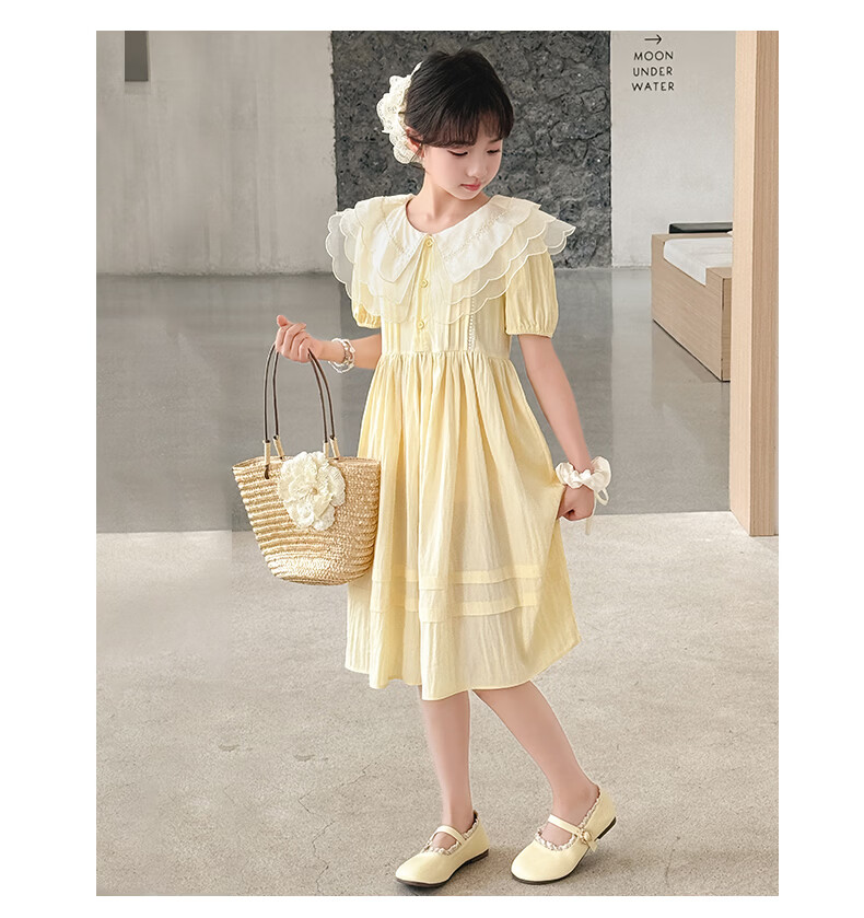 Kaimi Bear Girls' Dress 2026 New Children's Summer Dress for Girls and Large Children Western Style Summer Girls Short-Sleeved Princess Dress Light Yellow Size 120 Recommended Height About 115cm