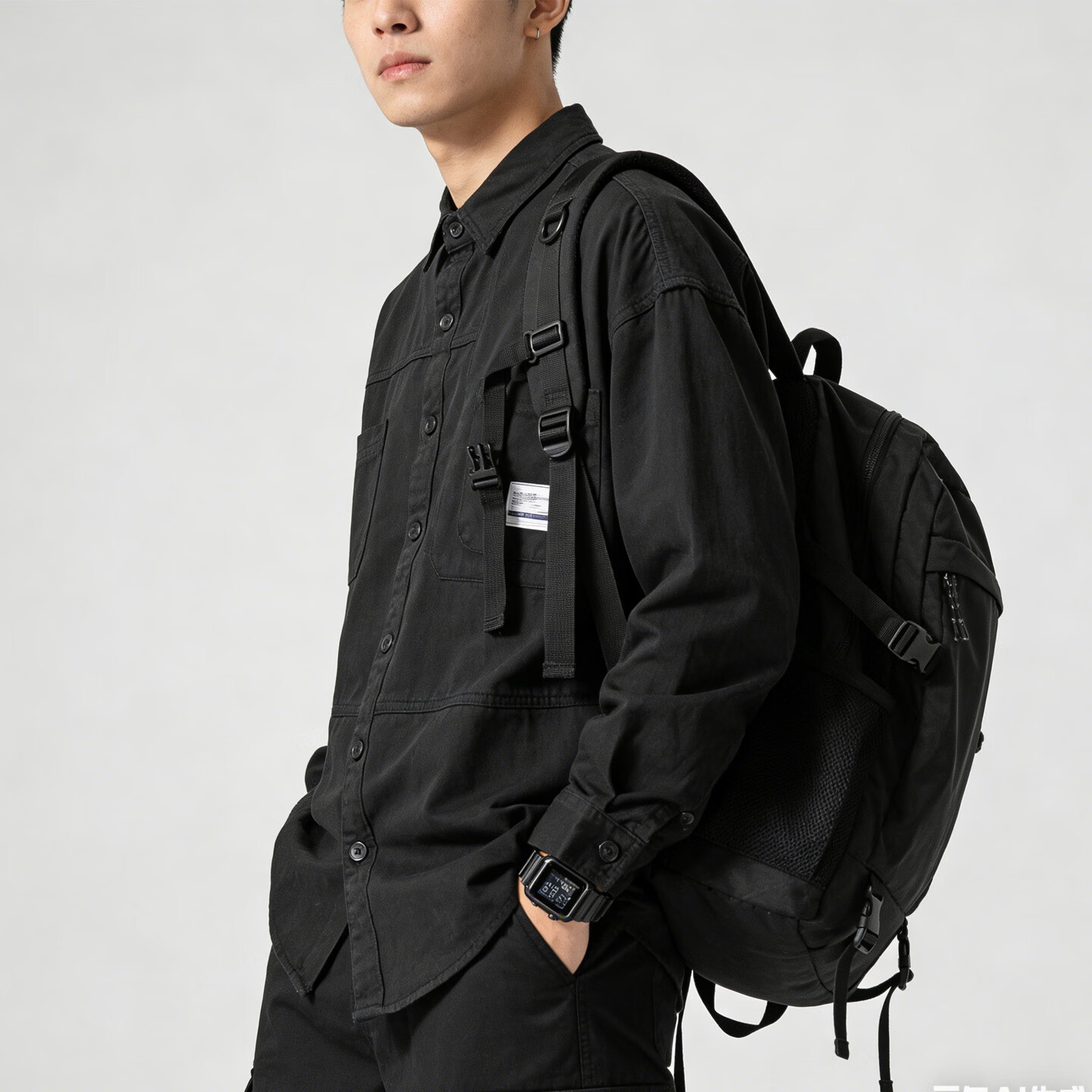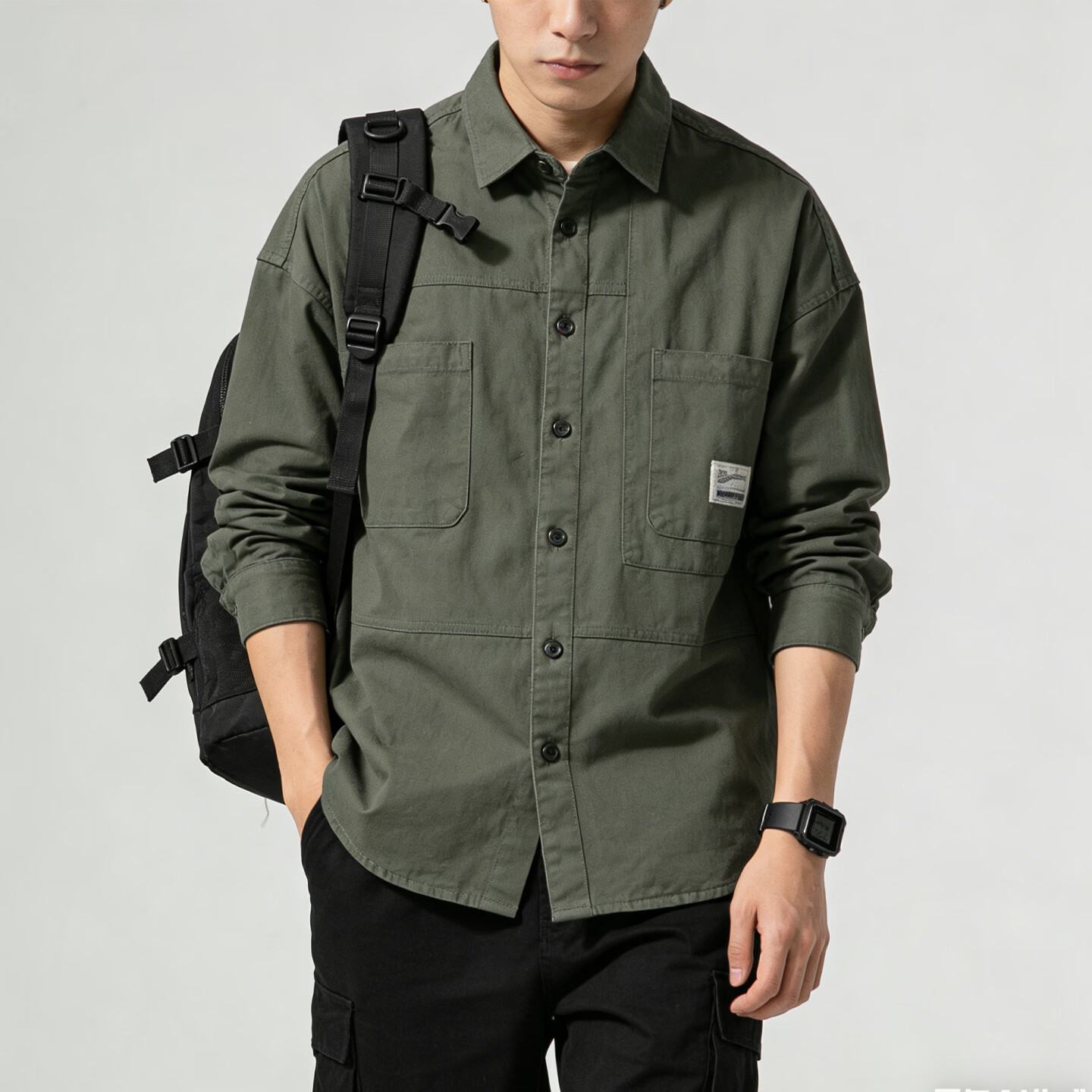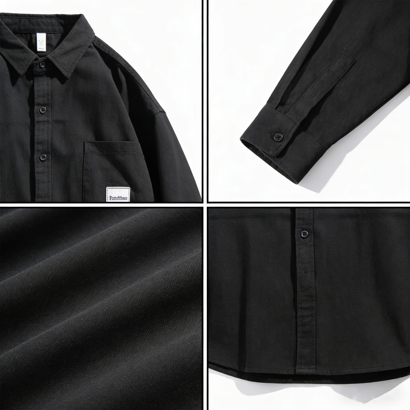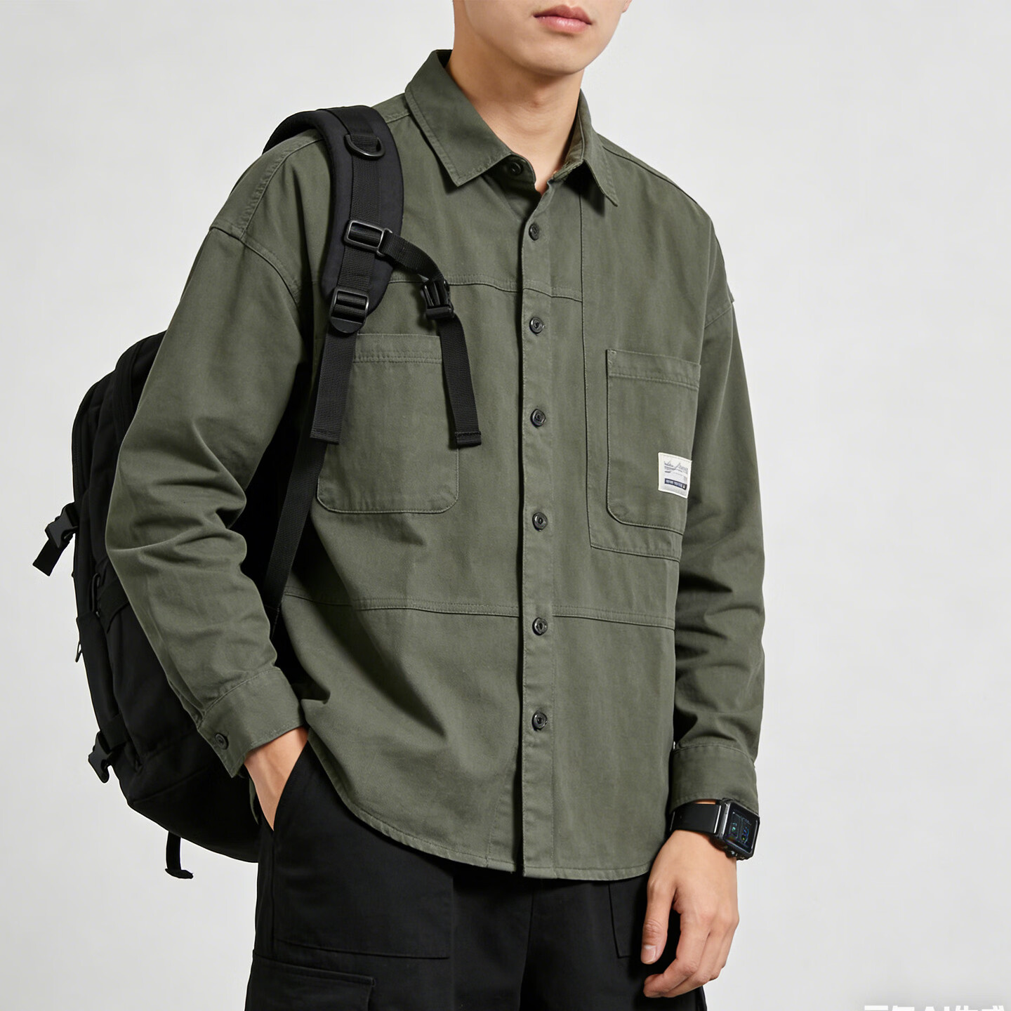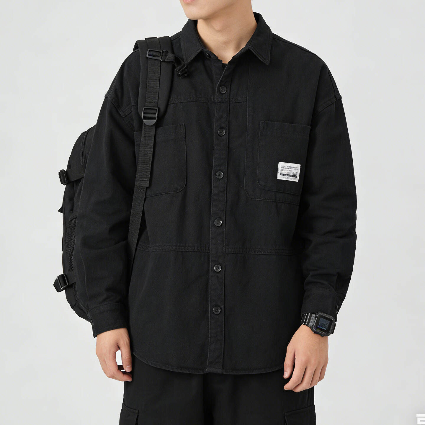 JEEP SPIRIT work shirt style jacket men's 2026 spring loose casual long-sleeved shirt men's tops black M 90-110Jin Jin equals 0.5 kg